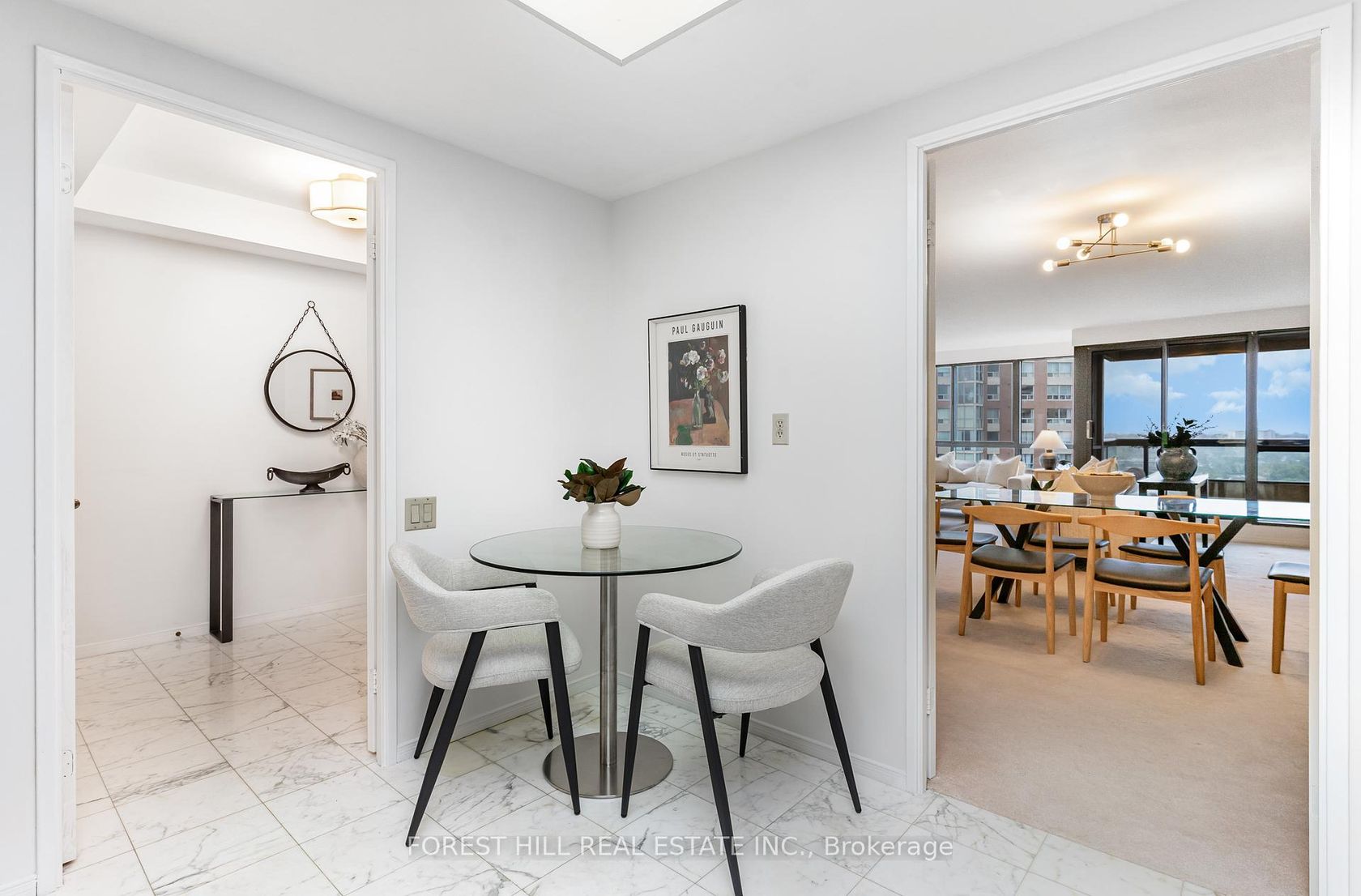 Located on the 20th floor of a quiet, well-managed building, this beautiful 2-bedroom, 2-bathroom condo offers panoramic views of the surrounding area. The spacious eat-in kitchen is perfect for casual dining, while the open concept living area allows for easy entertaining.This sought-after building offers resort-like amenities, including 24/7 gatehouse security, an indoor pool, gym, tennis and squash courts, sauna, and party room - everything you need to live in comfort and style. All utilities, including cable TV, & WIFI are included in the maintenance fee. One parking space and an ensuite-locker. Enjoy the tranquility of lush gardens and ravine trails right outside your door, or take a short stroll to the nearby Aga Khan Museum. Commuters will appreciate the quick access to the DVP and the TTC at your doorstep, with the future Eglinton LRT just a short walk away. You'll also find a plaza across the road with a Tim Hortons and grocery store, a quick drive to Superstore, and the Shops at Don Mills, which offers excellent dining, shopping, and grocery options. Dishwasher in 'as is condition'. Don't miss out on this rare chance to experience exceptional living in one of Toronto's most coveted condominium communities.