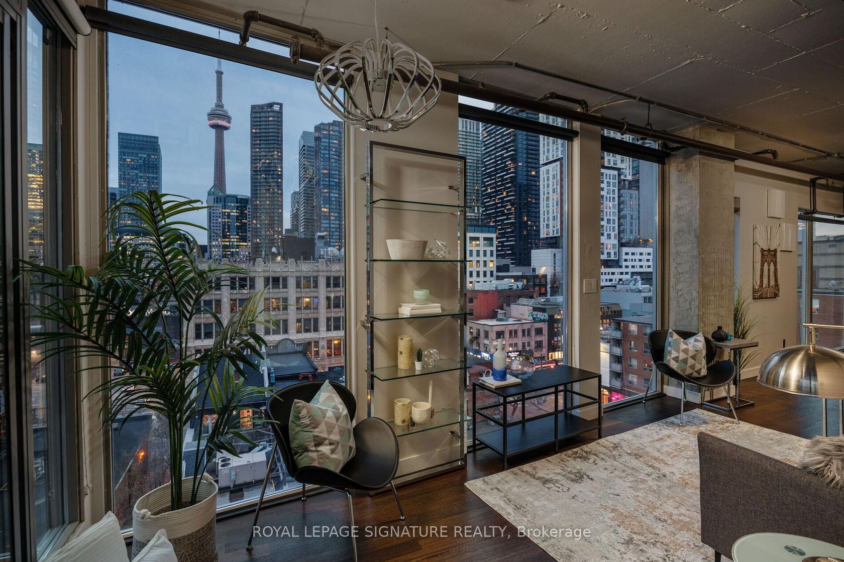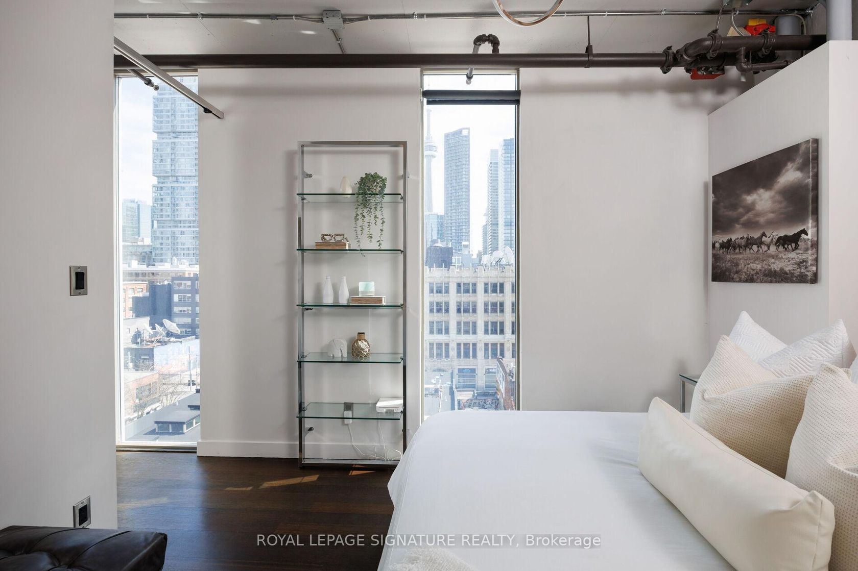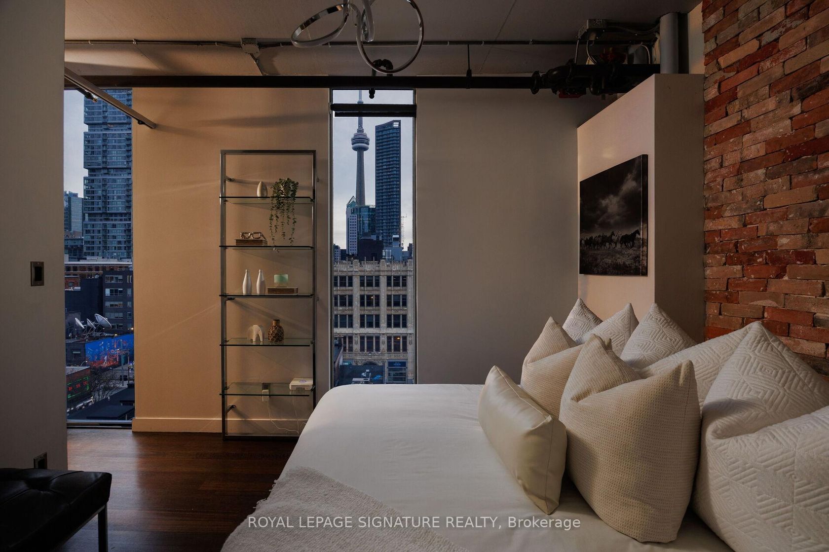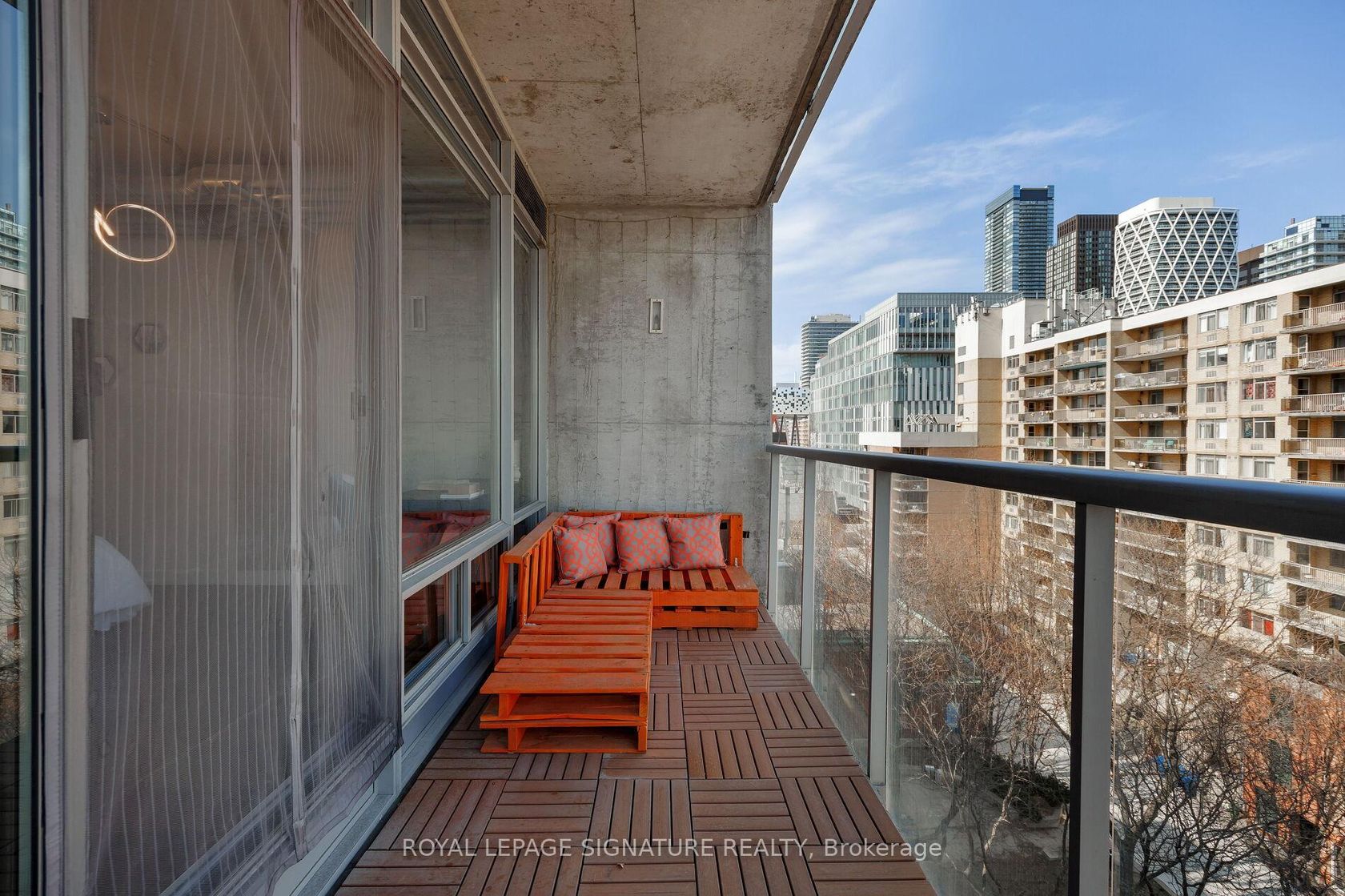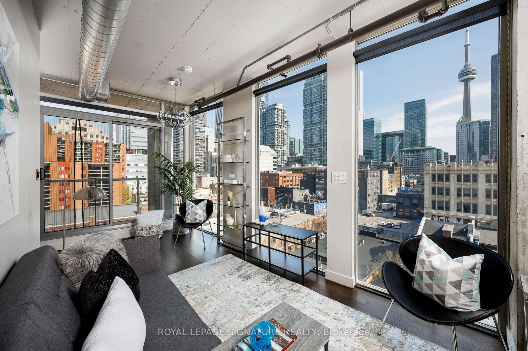 Elevate your everyday in this jaw-dropping 2-bedroom, 2-bathroom designer loft at One Six Nine Lofts where luxury meets art in the heart of downtown Toronto. With 1,047 square feet of impeccably curated space, this rare offering delivers the ultimate in modern urban living. Massive full-length windows frame stunning, unobstructed views of the CN Tower and city skyline, flooding the home with natural light. Step inside and be captivated by industrial-chic elements: exposed con…crete ceilings, rich hardwood floors, and sleek imported Italian cabinetry. Brand-new tiles, modern cabinetry, upgraded fixtures, and upscale designer lighting elevate the space with a fresh, modern edge. The open-concept layout, soaring 10-foot ceilings, and chef-inspired kitchen make entertaining effortless and unforgettable. Plus, a fully refurbished HVAC system (completed in 2023) ensures year-round comfort and efficiency. The expansive primary suite offers a true urban retreat, complete with a spa-like ensuite, custom-designed closets, and a stunning mural by internationally acclaimed artist Alex Turco. The spacious 2nd bedroom easily fits a king size bed, while the large balcony provides practical outdoor space. All these features creates a bold, sophisticated backdrop that makes this loft truly one-of-a-kind. Innovation meets convenience with a cutting-edge parking stacker system exclusive to residents. Set within a boutique building of just 45 unique suites, this address places you steps from Toronto's cultural pulse TIFF Bell Lightbox, premier dining, boutique shopping, and vibrant nightlife are all at your doorstep.This is more than a loft its a statement. Secure your place among Toronto's finest.