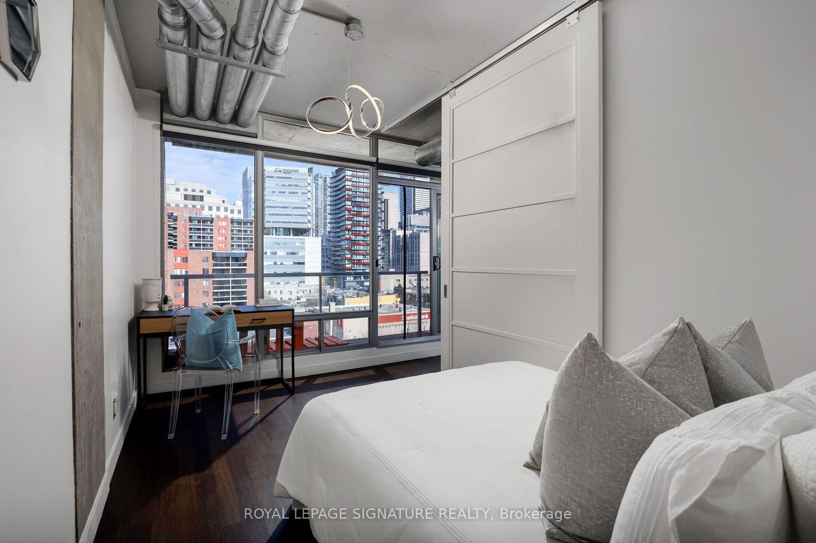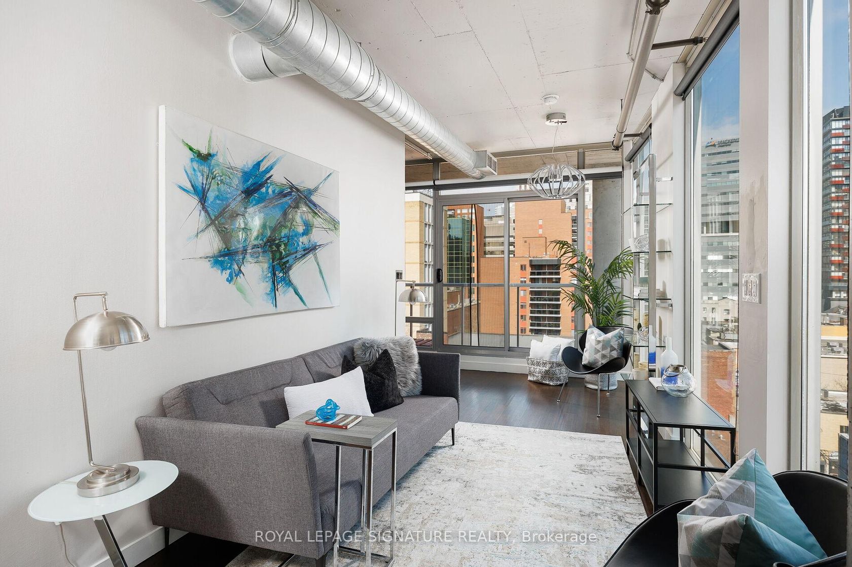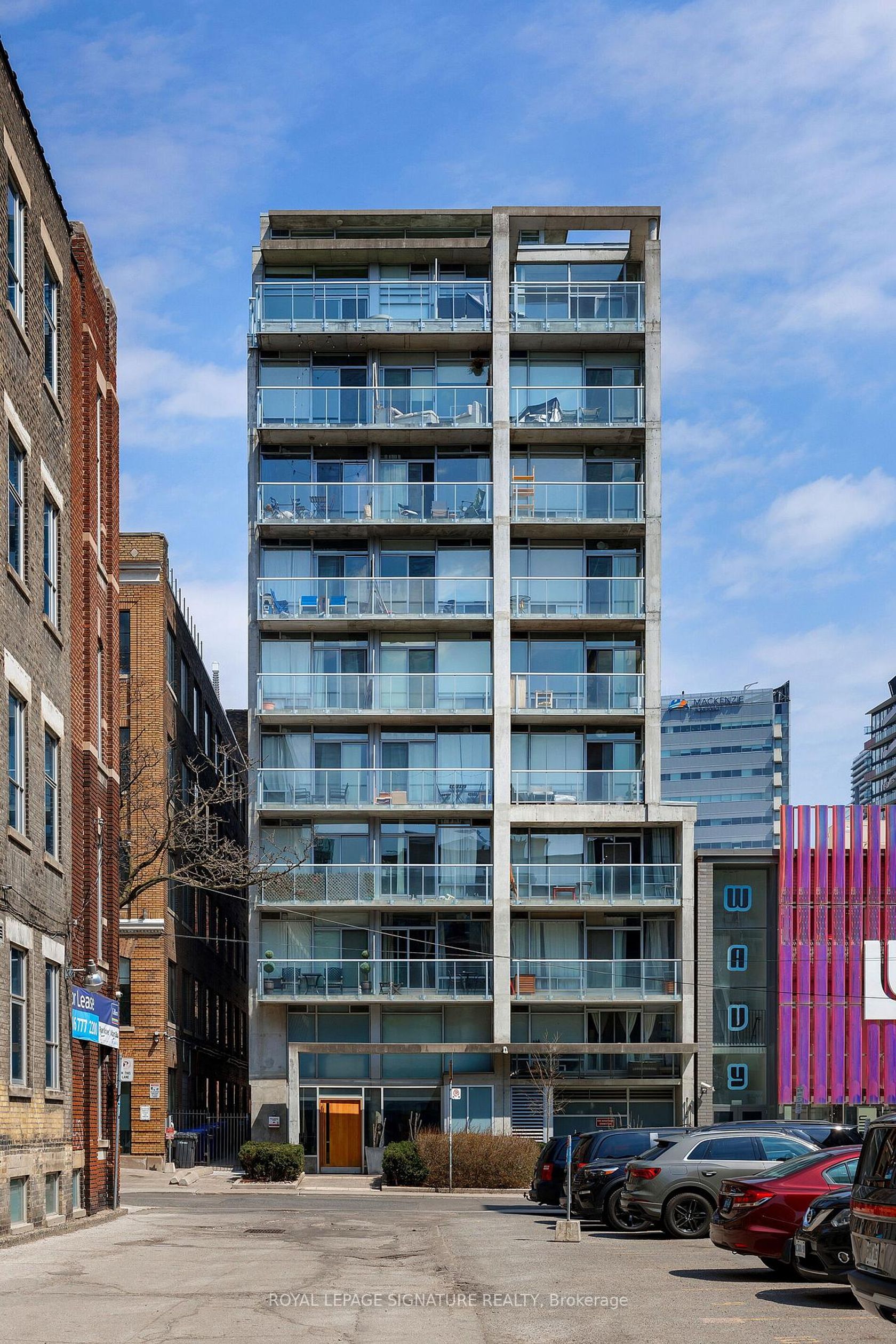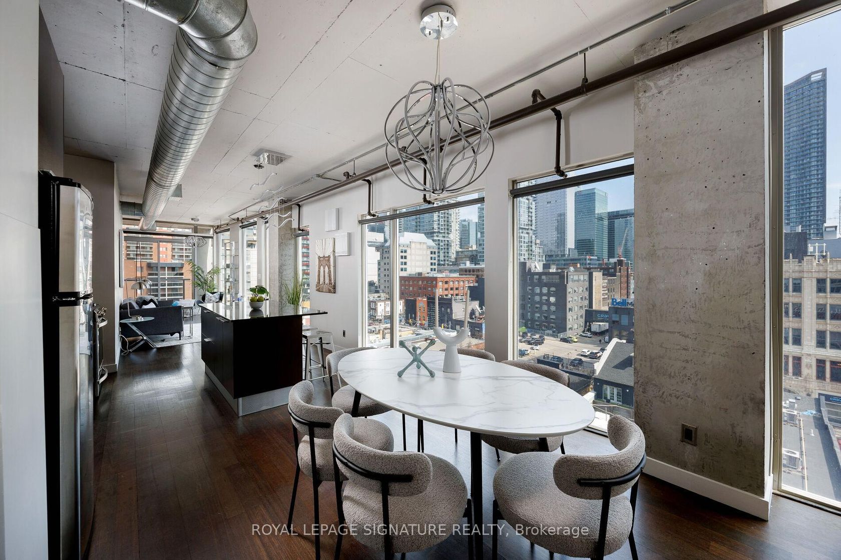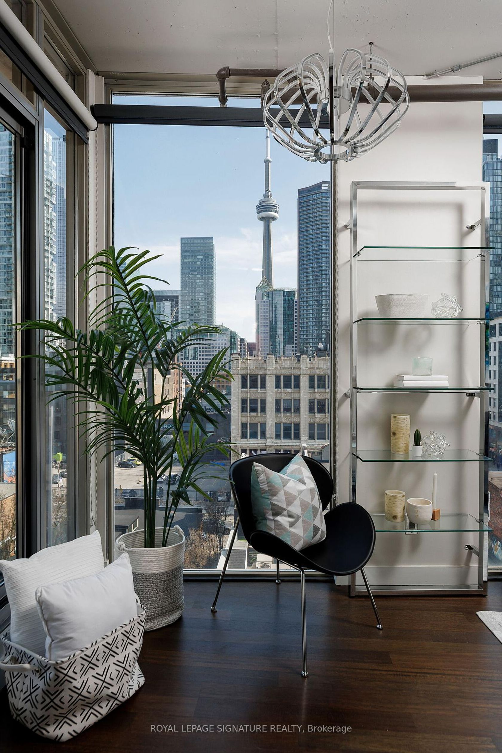 Elevate your everyday in this jaw-dropping 2-bedroom, 2-bathroom designer loft at One Six Nine Lofts where luxury meets art in the heart of downtown Toronto. With 1,047 square feet of impeccably curated space, this rare offering delivers the ultimate in modern urban living. Massive full-length windows frame stunning, unobstructed views of the CN Tower and city skyline, flooding the home with natural light. Step inside and be captivated by industrial-chic elements: exposed con…crete ceilings, rich hardwood floors, and sleek imported Italian cabinetry. Brand-new tiles, modern cabinetry, upgraded fixtures, and upscale designer lighting elevate the space with a fresh, modern edge. The open-concept layout, soaring 10-foot ceilings, and chef-inspired kitchen make entertaining effortless and unforgettable. Plus, a fully refurbished HVAC system (completed in 2023) ensures year-round comfort and efficiency. The expansive primary suite offers a true urban retreat, complete with a spa-like ensuite, custom-designed closets, and a stunning mural by internationally acclaimed artist Alex Turco. The spacious 2nd bedroom easily fits a king size bed, while the large balcony provides practical outdoor space. All these features creates a bold, sophisticated backdrop that makes this loft truly one-of-a-kind. Innovation meets convenience with a cutting-edge parking stacker system exclusive to residents. Set within a boutique building of just 45 unique suites, this address places you steps from Toronto's cultural pulse TIFF Bell Lightbox, premier dining, boutique shopping, and vibrant nightlife are all at your doorstep.This is more than a loft its a statement. Secure your place among Toronto's finest.