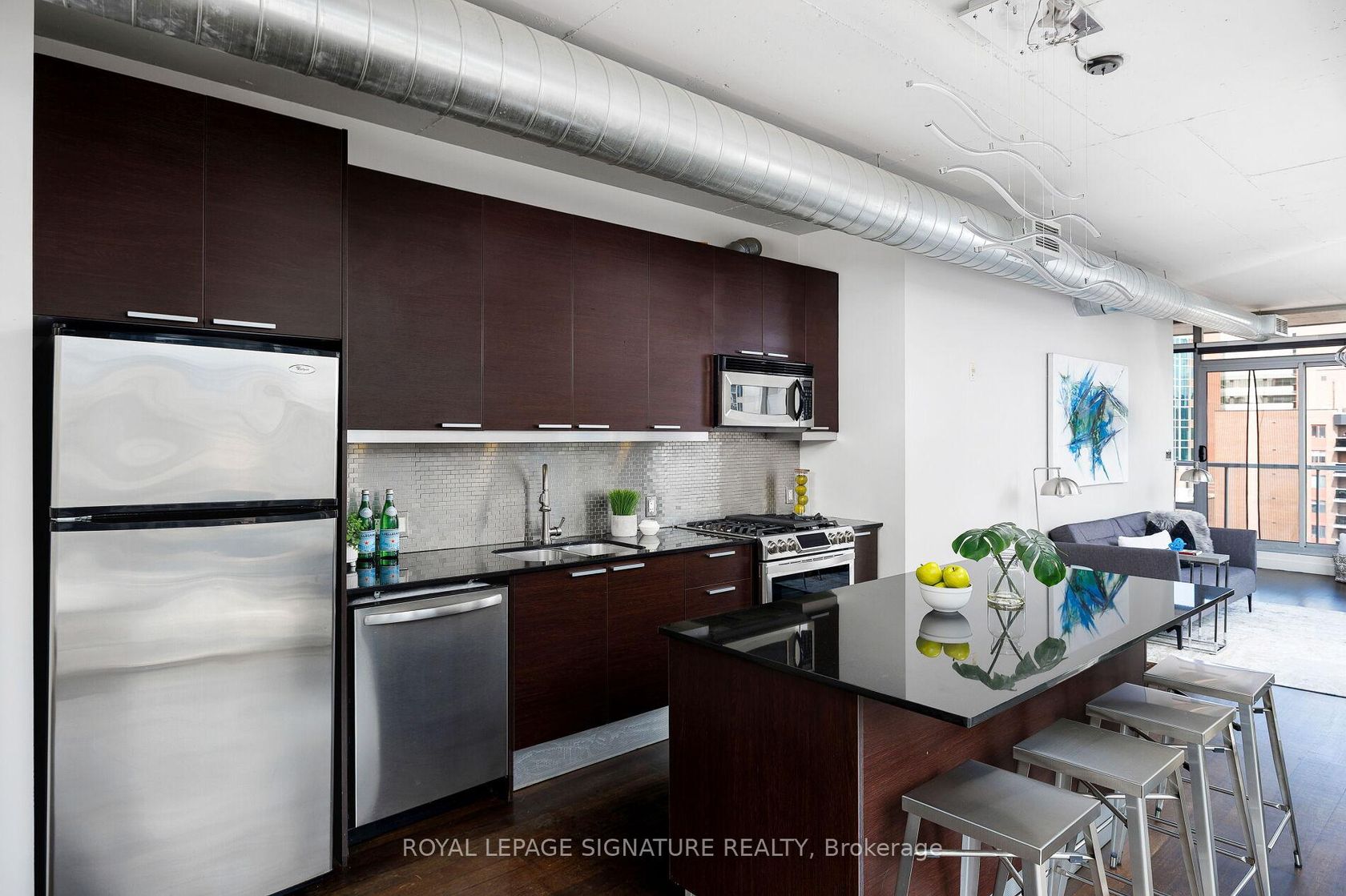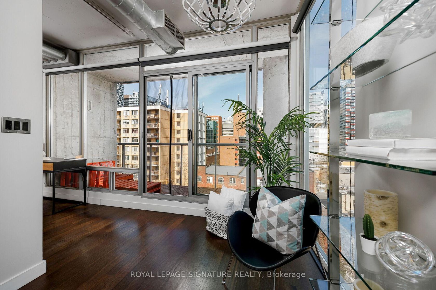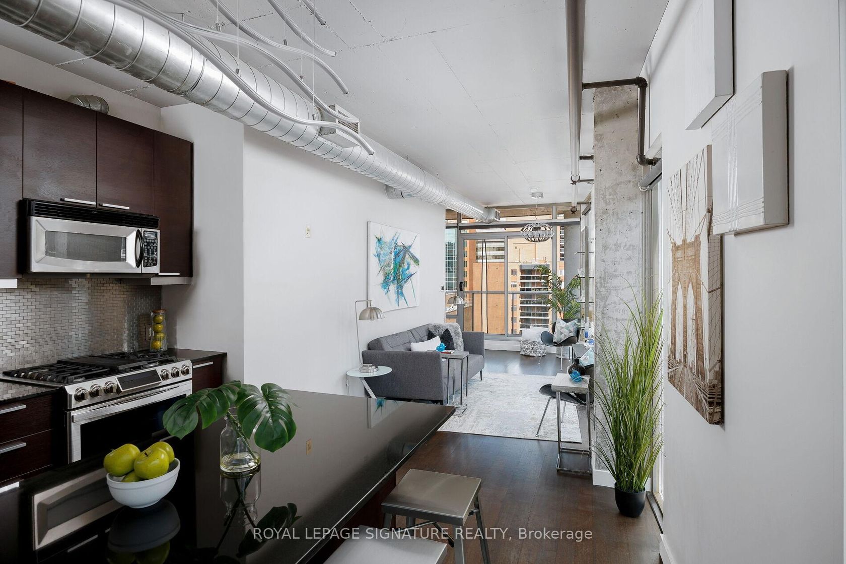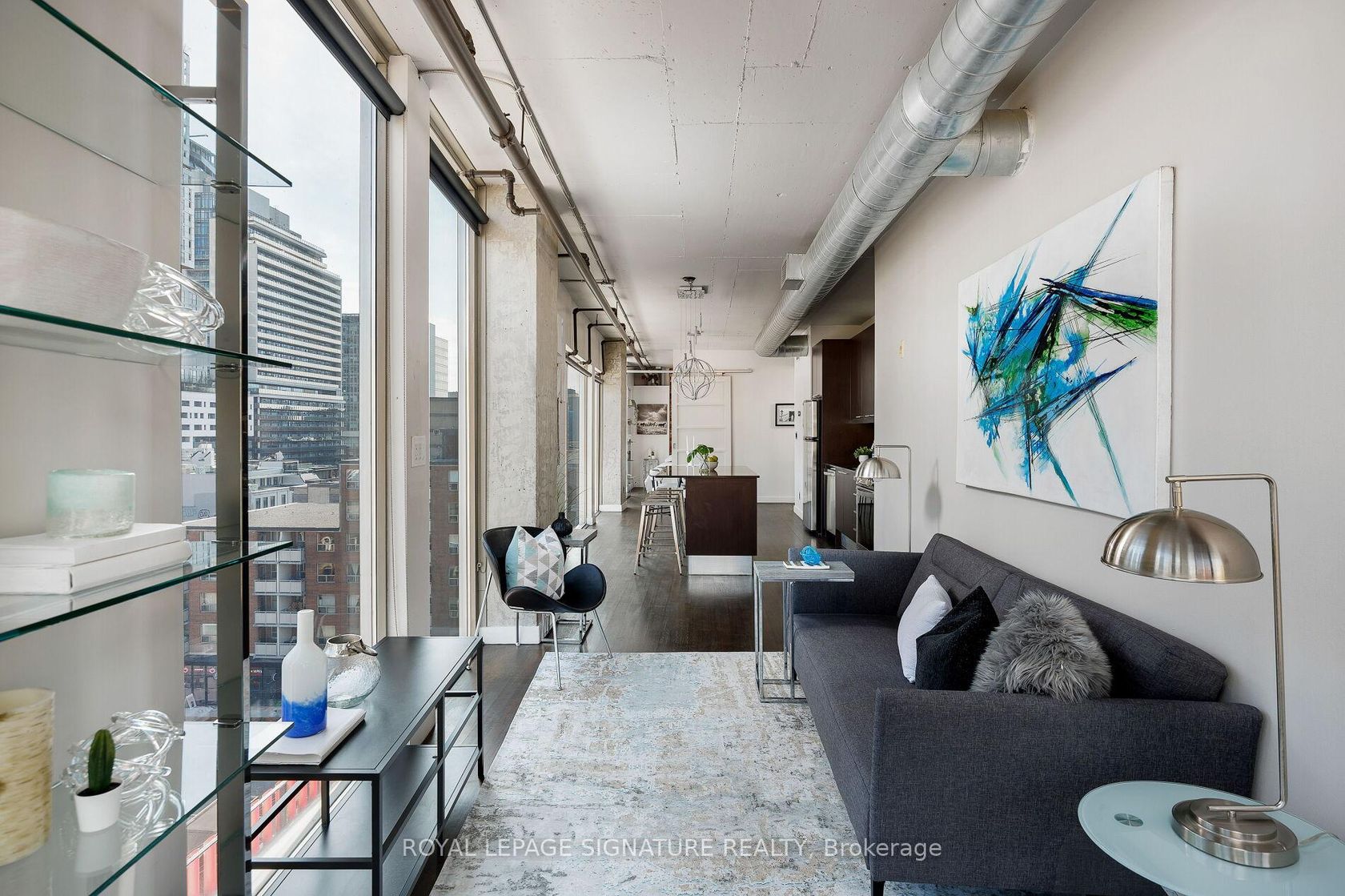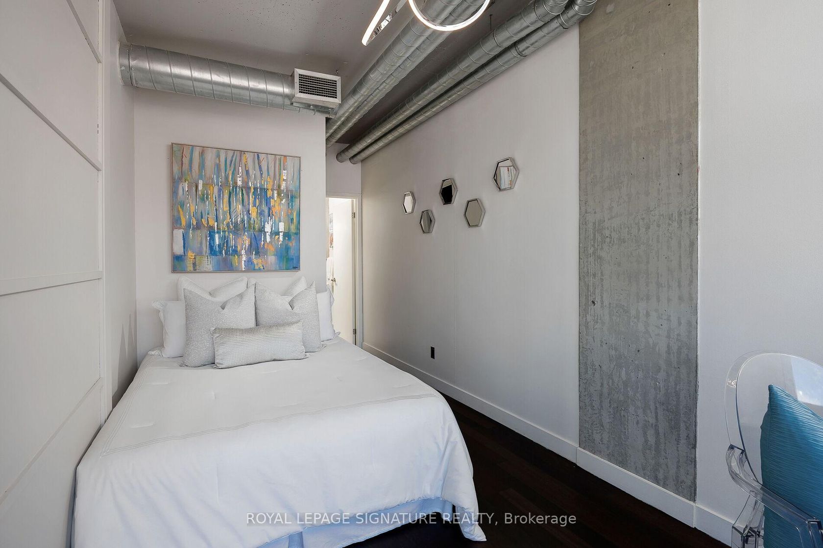 Elevate your everyday in this jaw-dropping 2-bedroom, 2-bathroom designer loft at One Six Nine Lofts where luxury meets art in the heart of downtown Toronto. With 1,047 square feet of impeccably curated space, this rare offering delivers the ultimate in modern urban living. Massive full-length windows frame stunning, unobstructed views of the CN Tower and city skyline, flooding the home with natural light. Step inside and be captivated by industrial-chic elements: exposed con…crete ceilings, rich hardwood floors, and sleek imported Italian cabinetry. Brand-new tiles, modern cabinetry, upgraded fixtures, and upscale designer lighting elevate the space with a fresh, modern edge. The open-concept layout, soaring 10-foot ceilings, and chef-inspired kitchen make entertaining effortless and unforgettable. Plus, a fully refurbished HVAC system (completed in 2023) ensures year-round comfort and efficiency. The expansive primary suite offers a true urban retreat, complete with a spa-like ensuite, custom-designed closets, and a stunning mural by internationally acclaimed artist Alex Turco. The spacious 2nd bedroom easily fits a king size bed, while the large balcony provides practical outdoor space. All these features creates a bold, sophisticated backdrop that makes this loft truly one-of-a-kind. Innovation meets convenience with a cutting-edge parking stacker system exclusive to residents. Set within a boutique building of just 45 unique suites, this address places you steps from Toronto's cultural pulse TIFF Bell Lightbox, premier dining, boutique shopping, and vibrant nightlife are all at your doorstep.This is more than a loft its a statement. Secure your place among Toronto's finest.