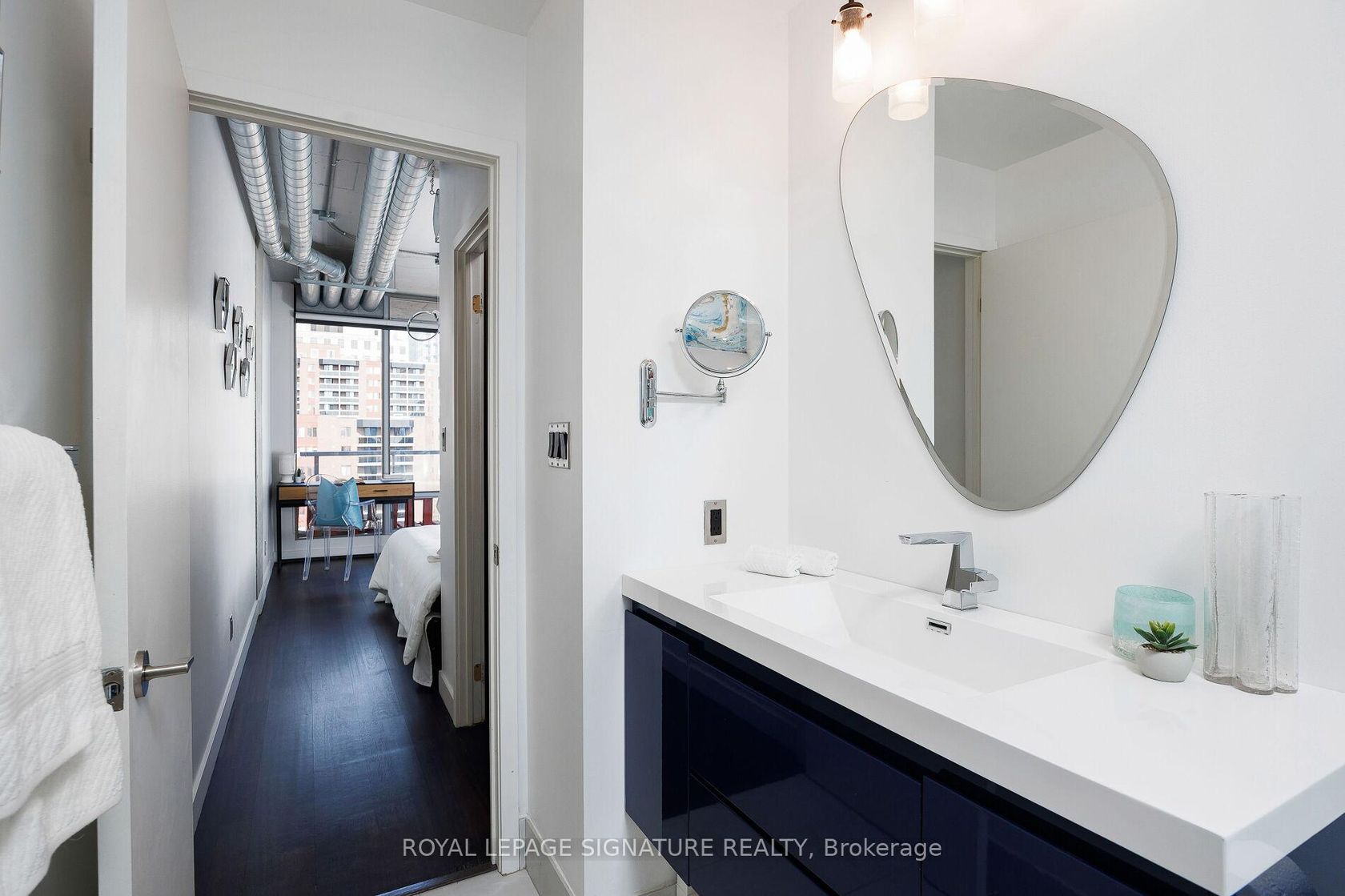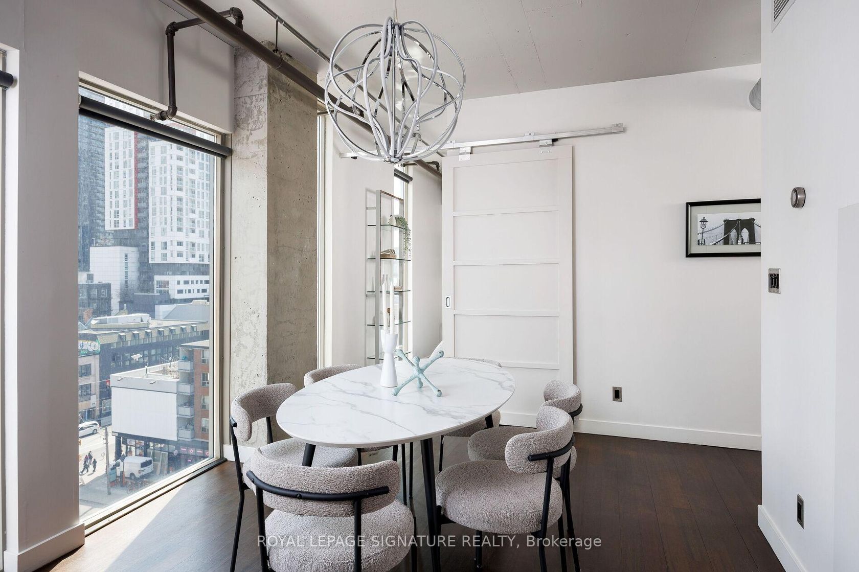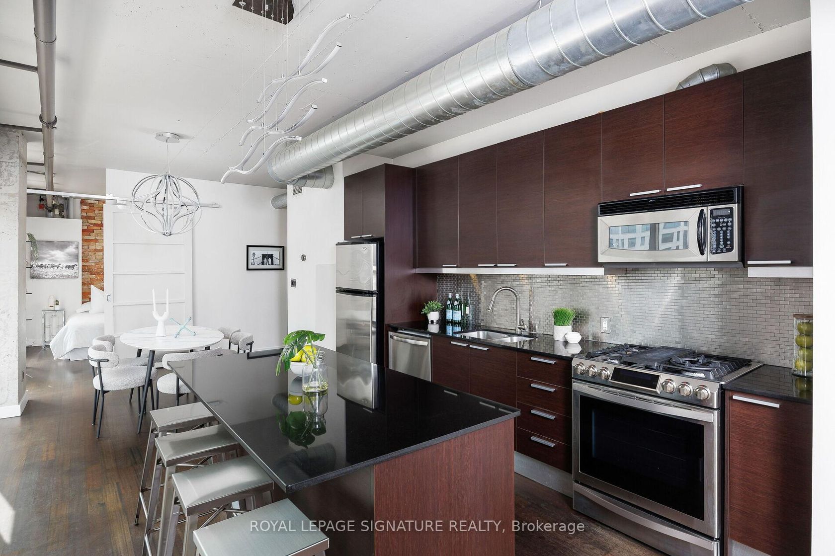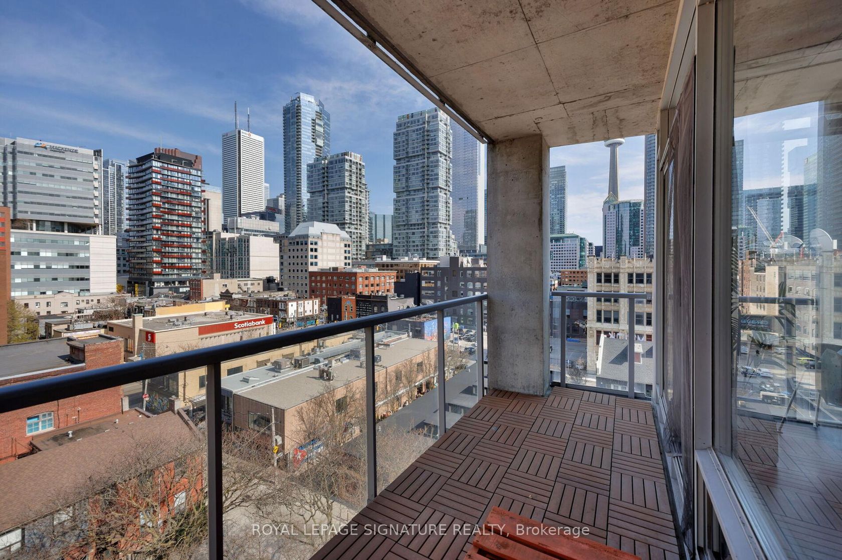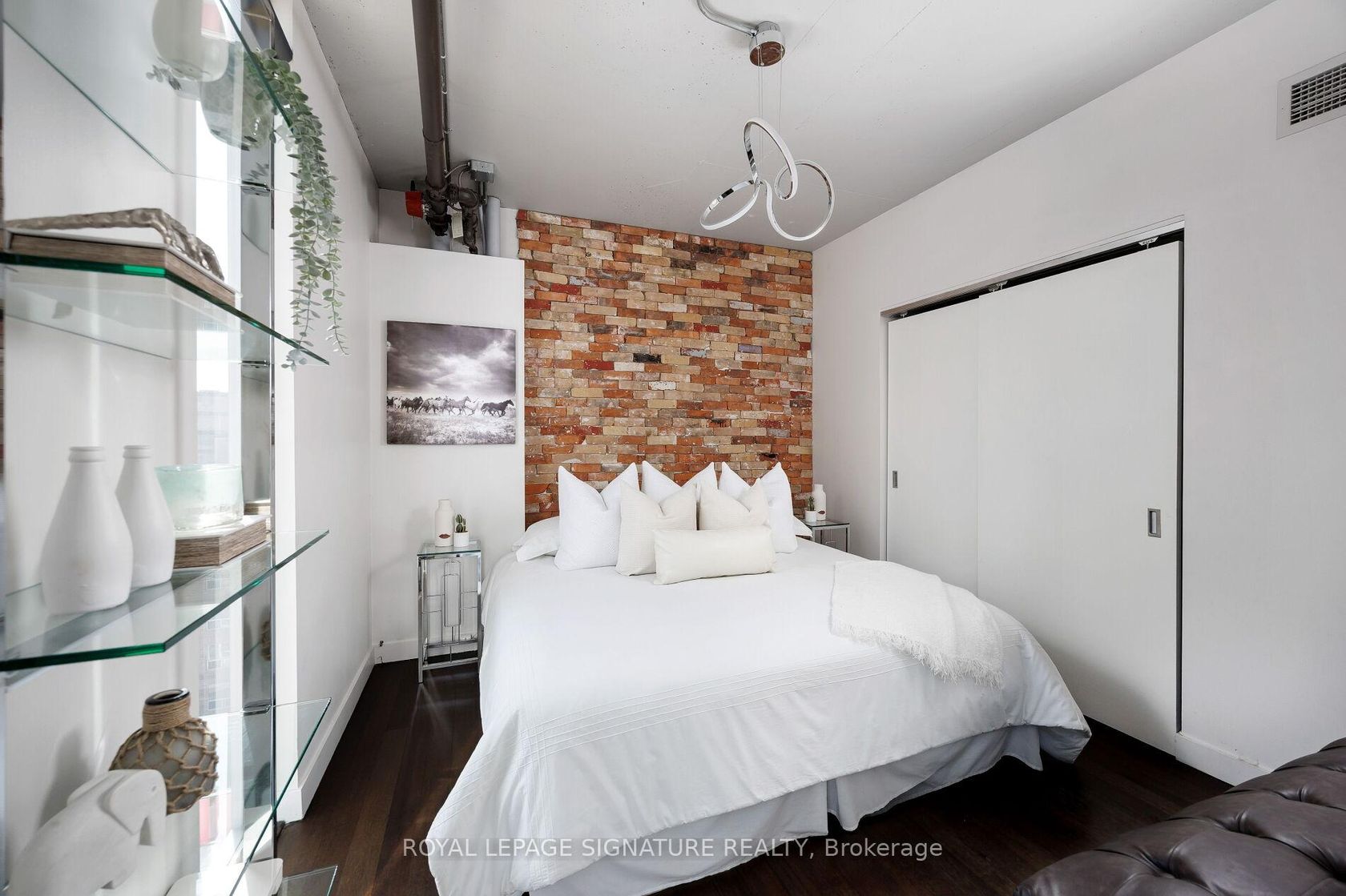 Elevate your everyday in this jaw-dropping 2-bedroom, 2-bathroom designer loft at One Six Nine Lofts where luxury meets art in the heart of downtown Toronto. With 1,047 square feet of impeccably curated space, this rare offering delivers the ultimate in modern urban living. Massive full-length windows frame stunning, unobstructed views of the CN Tower and city skyline, flooding the home with natural light. Step inside and be captivated by industrial-chic elements: exposed con…crete ceilings, rich hardwood floors, and sleek imported Italian cabinetry. Brand-new tiles, modern cabinetry, upgraded fixtures, and upscale designer lighting elevate the space with a fresh, modern edge. The open-concept layout, soaring 10-foot ceilings, and chef-inspired kitchen make entertaining effortless and unforgettable. Plus, a fully refurbished HVAC system (completed in 2023) ensures year-round comfort and efficiency. The expansive primary suite offers a true urban retreat, complete with a spa-like ensuite, custom-designed closets, and a stunning mural by internationally acclaimed artist Alex Turco. The spacious 2nd bedroom easily fits a king size bed, while the large balcony provides practical outdoor space. All these features creates a bold, sophisticated backdrop that makes this loft truly one-of-a-kind. Innovation meets convenience with a cutting-edge parking stacker system exclusive to residents. Set within a boutique building of just 45 unique suites, this address places you steps from Toronto's cultural pulse TIFF Bell Lightbox, premier dining, boutique shopping, and vibrant nightlife are all at your doorstep.This is more than a loft its a statement. Secure your place among Toronto's finest.