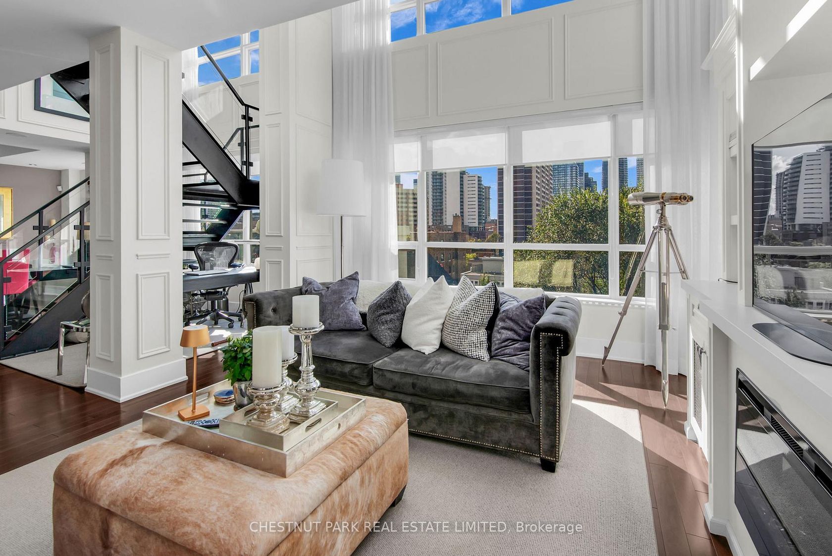 The Verve by Tridel is an award-winning LEED-certified residence that redefines sophisticated urban living in downtown Toronto. This rare two-storey, 2 bedroom loft spans 1,541 sq.ft. of meticulously designed space, complemented by a 75 sq.ft. west-facing terrace where you can enjoy radiant sunsets & effortless outdoor entertaining with a built-in gas connection. Upon entry, the double-height ceilings & striking wall of floor-to-ceiling windows immediately set the tone for a …home defined by light, volume, & modern elegance. The open-concept layout seamlessly connects living, dining, & kitchen spaces, creating an inviting atmosphere ideal for both refined entertaining & everyday comfort. The chef-inspired kitchen features quartz countertops, premium stainless steel appliances, a breakfast bar, + a built-in Miele coffee machine designed to elevate each morning ritual. Rich hardwood flooring extends throughout, enhancing the sense of warmth & sophistication.The floating industrial-style staircase ascends to the private upper level, where 2 generously proportioned bedrooms each offer a tranquil retreat. The primary suite impresses with dual walk-in closets + a serene, spa-inspired five-piece ensuite designed for relaxation & restoration. The second bedroom, complete with its own three-piece ensuite, provides the perfect balance of comfort & privacy. Residents of The Verve enjoy an exceptional lifestyle experience, with premium amenities including a resort-style outdoor pool & sun deck, party room, media lounge, billiards area, & a fully equipped fitness centre. Perfectly situated, this address offers the best of downtown living-steps from parks, boutique shopping, fine dining, & convenient transit, with the subway less than ten minutes away. Quick access to major highways ensures seamless connectivity across the city. Suite 617 at 120 Homewood Avenue is a home of presence & polish-where design, comfort, & urban vibrancy meet in perfect harmony.