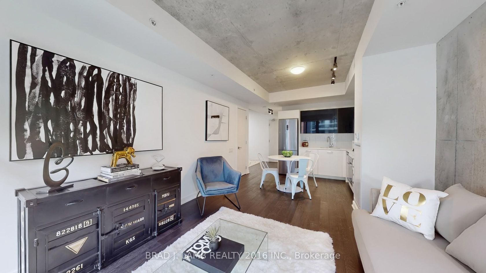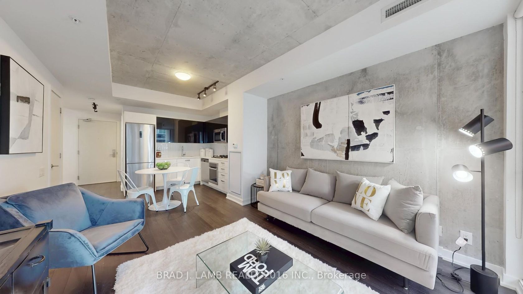 Live on the park at Brant Park in this stunning 1 Bedroom + 1 Bathroom. Enjoy 500 Sqft interior + large balcony with BBQ gas line! Soaring 9ft exposed concrete ceilings and pristine hardwood floors. The kitchen boasts a modern touch with gas range, all stainless steel appliances and stone countertops. The floor-to-ceiling windows flood the south-facing unit with tons of natural light, creating a bright and inviting atmosphere. Custom white roller blinds offer privacy while ma…intaining the sleek aesthetic. The tranquility of the space is enhanced by its quiet ambiance, providing a peaceful retreat from the bustling city life. Every inch of this condo has been thoughtfully designed for both comfort and style. Situated in an amazing location with a perfect Walkscore of 100. Located in the vibrant heart of King West Village - you're just steps from everything! 24hr Spadina streetcars, Queen West shopping, King West restos, bars & trendy cafes, Loblaws, banks, are all just steps away. New Waterworks Food Hall and St. Andrew's Park are directly across the street! Don't miss your chance to live in one of the most desirable neighbourhoods in Toronto!