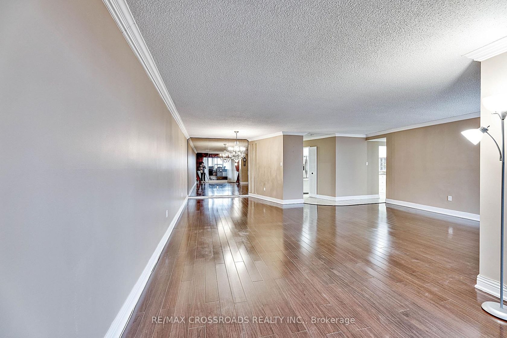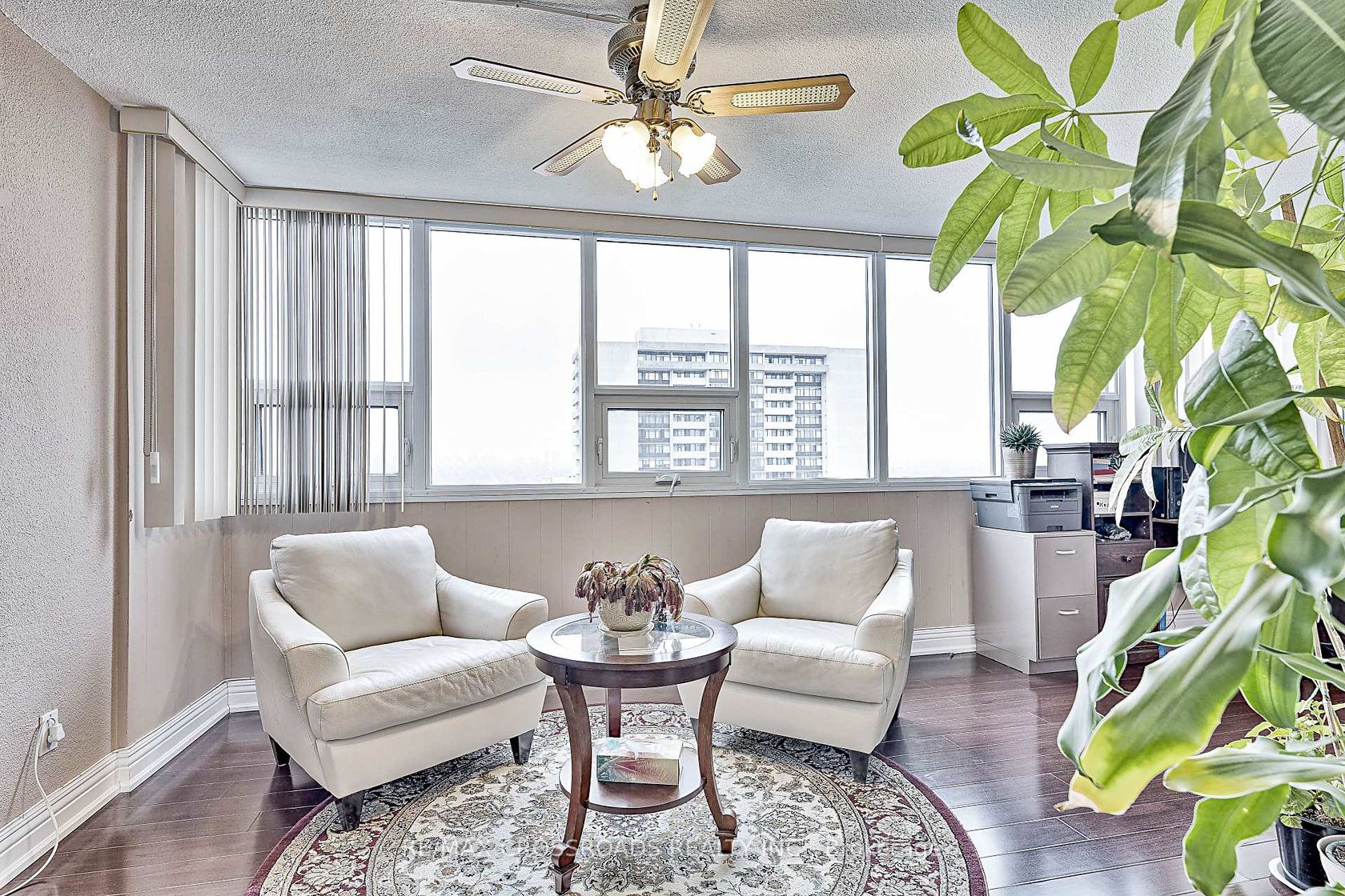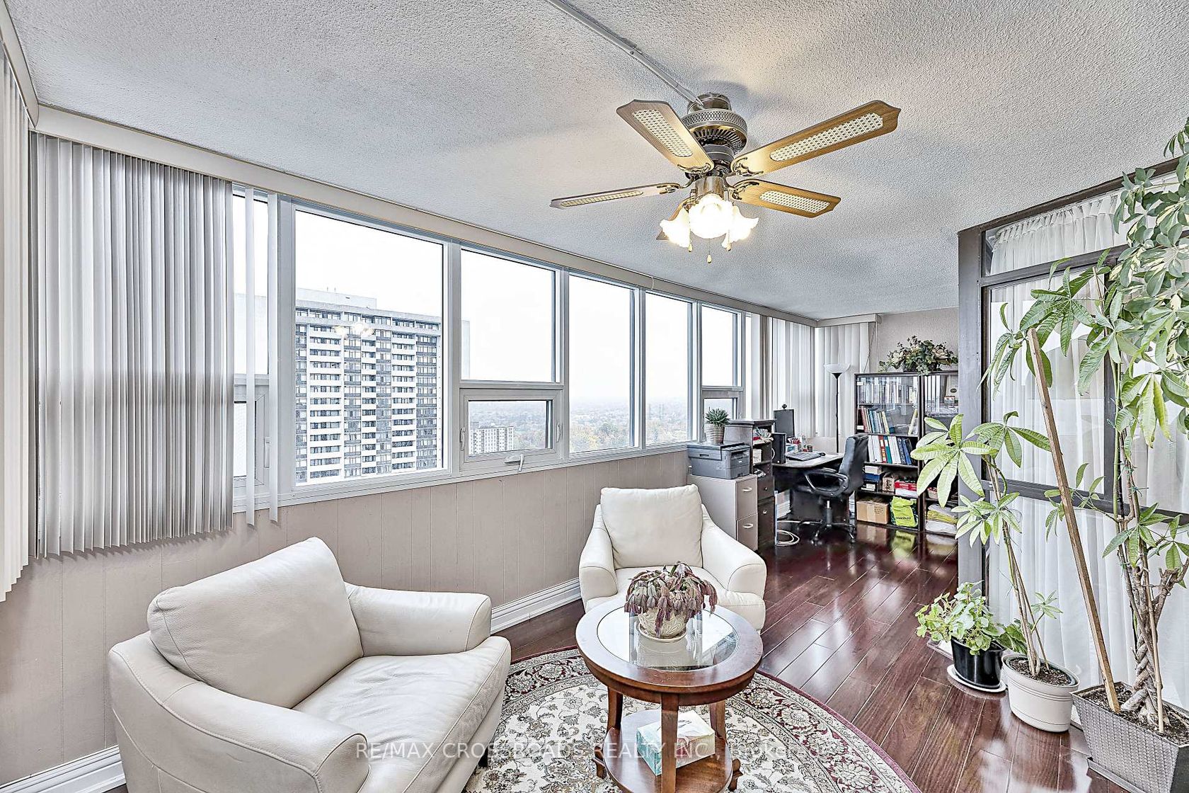 Stunning corner unit on a high floor with the most desirable southwest exposure and unobstructed views of the Toronto skyline. This fully renovated suite offers a bright, open-concept layout with hardwood floors throughout and a designer kitchen featuring elegant stone countertops. The former den has been opened up to create a spacious living and office area. The primary bedroom includes a custom closet with built-in shelving and a modern ensuite bathroom with a stand-up show…er and granite vanity. Step out onto the open balcony to enjoy breathtaking city views. Freshly painted and move-in ready, this home combines style, comfort, and functionality. Includes tandem parking for two cars and access to all the conveniences of condo living. A rare find offering luxury, space, and spectacular views - an ideal choice for urban living at its finest. Condo fee includes Heat, Electricity, Water, High Speed Internet, Five star Amenities, Tennis Courts, Indoor & Outdoor Pools, Billiard Rm, Gym, Squash court. Close to Seneca College and hospital.