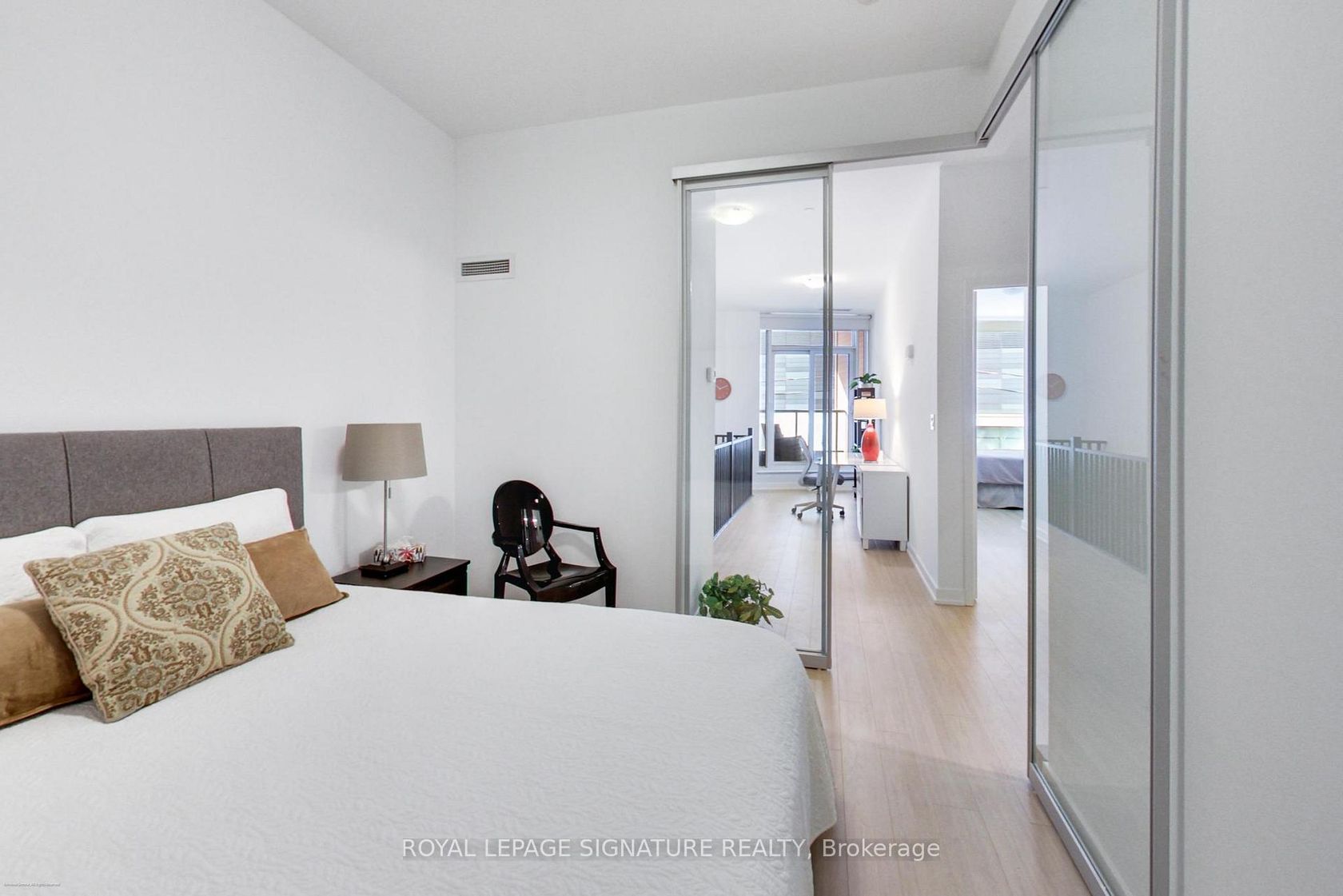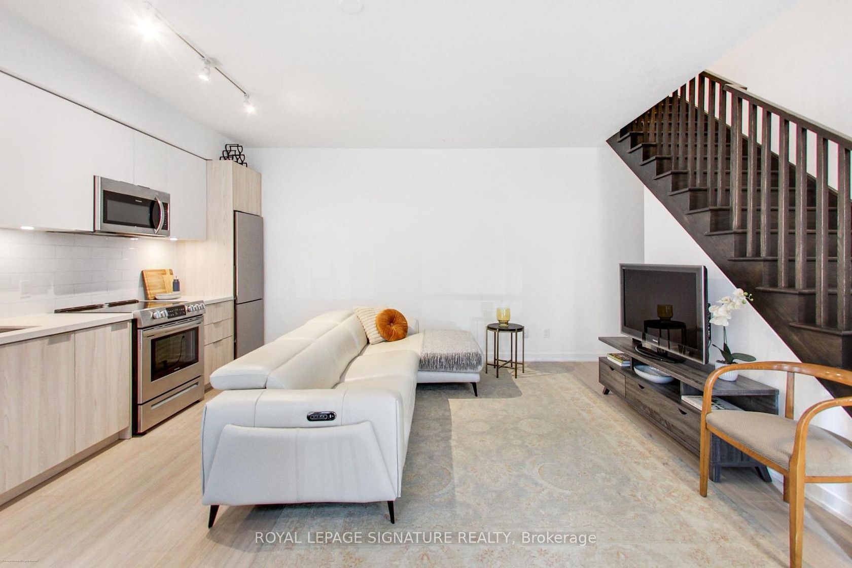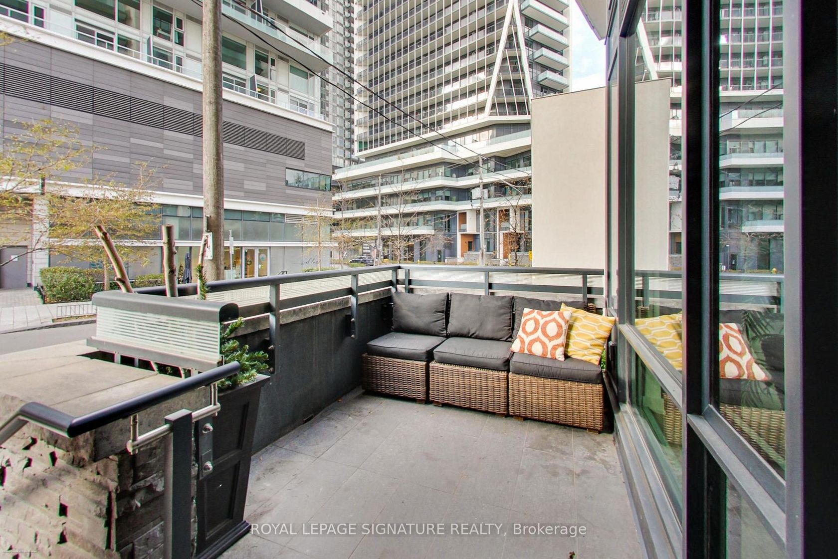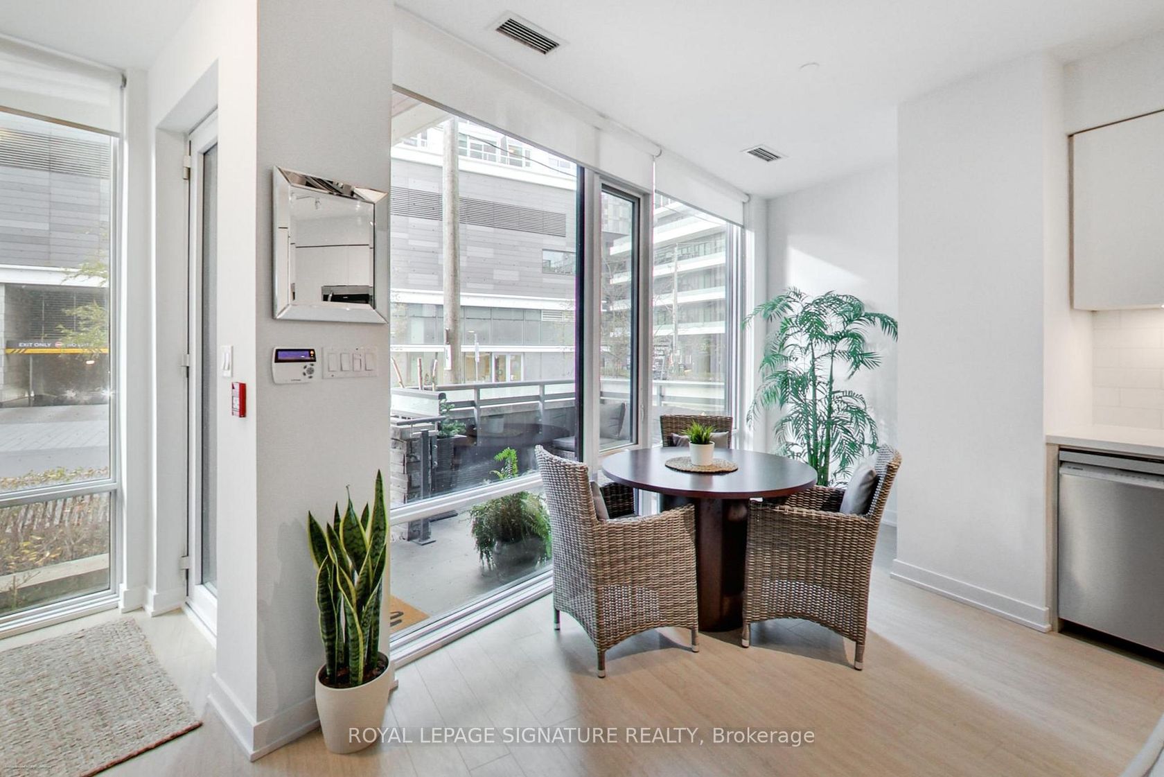 Stunning 2-storey, 2-bedroom plus den, 2-bath townhouse-style condo offering nearly 1,300sqft of bright, modern living in the heart of Liberty Village. This rare multi-level layout features a private street-level entrance, a spacious front terrace ideal for outdoor dining, and an additional upper-level balcony off the loft. The open-concept main floor boasts soaring ~10ft ceilings, wide-plank flooring, floor-to-ceiling windows, and a sleek contemporary kitchen with full-size …stainless steel appliances, quartz counters, subway tile backsplash, and excellent storage. The second level includes an expansive open loft-perfect for a home office-plus two generous split-plan bedrooms. The primary suite impresses with floor-to-ceiling windows, a walk-in closet and second full closet, and easy access to a beautifully finished 4-piece bathroom with deep soaker tub. The second bedroom, enclosed with sliding glass doors, offers great privacy and storage. A second modern bathroom features a glass-enclosed walk-in shower. Full-size in-suite laundry, upgraded flooring, modern lighting, and abundant natural light throughout. 30 Ordnance Street is uniquely tucked beside acres of connected parkland, giving residents a rare sense of openness and calm while still being just steps from the vibrant heart of Liberty Village. It feels like its own private enclave, close to everything, yet pleasantly set apart. With direct access to some of the city's best walking and biking paths, it's ideal for anyone who values nature and lifestyle in equal measure. Great walking and bike path access. Steps to parks, Garrison Crossing, King West, groceries, cafés, TTC, GO Transit, and the waterfront. A rare opportunity to own a stylish multi-level home in one of Toronto's most vibrant neighbourhoods. A 91 Walk Score means 30 Ordnance is a walker's paradise where daily errands do not require a car.