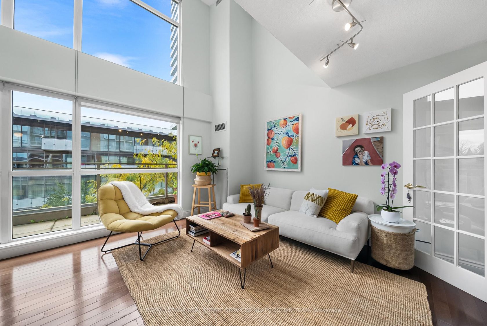 Welcome to 18 Merton Street, Suite 302, a sophisticated two-storey condo in the heart of Davisville Village, offering 1,068 square feet of thoughtfully designed interior space, complemented by 164 square feet of private outdoor terraces. With soaring 16'8" ceilings and south-facing, floor-to-ceiling windows, this light-filled residence seamlessly blends comfort, flexibility, and style across two expansive levels.The main floor opens with a generous foyer featuring ample stora…ge and a 3-piece bathroom with LG laundry. The well-appointed kitchen offers abundant cabinetry and connects directly to the private terrace. The open-concept living and dining area is a showstopper, dramatic ceiling heights and oversized windows invite in endless natural light, while walkouts to the terrace encourage effortless indoor-outdoor living. A versatile main floor bedroom with closet and electric fireplace serves beautifully as a home office or lounge.Upstairs, both bedrooms are oversized and private, each with a walk-in closet and its own 4-piece ensuite. The primary retreat also features a balcony overlooking the lower terrace, while the second bedroom offers a view into the living space below, adding architectural charm.Residents of this boutique building enjoy access to a fully equipped gym, courtyard terrace with BBQs for entertaining, and visitor parking, all within a quiet and well-managed setting.Perfectly located just off Yonge Street, Davisville Village offers an unmatched blend of convenience and community. With Davisville Station steps away, exceptional dining, shopping, and greenspace all within walking distance, this address is ideal for those seeking connection, comfort, and lifestyle in equal measure.