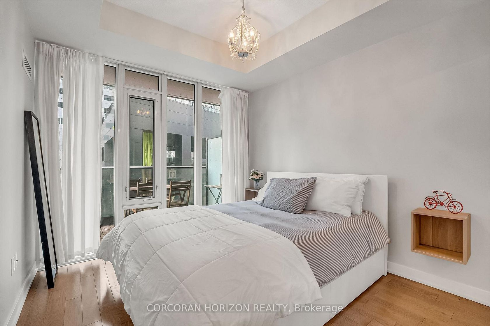 Bright and spacious one-bedroom suite in the heart of Toronto's Entertainment District. This modern residence features an open-concept layout with soaring ceilings, a sleek contemporary kitchen with premium appliances, and laminate flooring throughout. Floor-to-ceiling windows fill the bedroom with natural light, while the living area walks out to an oversized, full-width balcony with open views-an ideal extension of the living space for relaxing or entertaining. Enjoy smart storage, ensuite laundry, owned locker, and outstanding building amenities including 24-hour concierge, fitness centre, sauna, yoga studio, party and media rooms, dog wash, rooftop terrace with BBQs, outdoor pool, and Sky Lounge with panoramic city views. Steps to the Financial District, Queen Street West, transit, dining, and shopping.