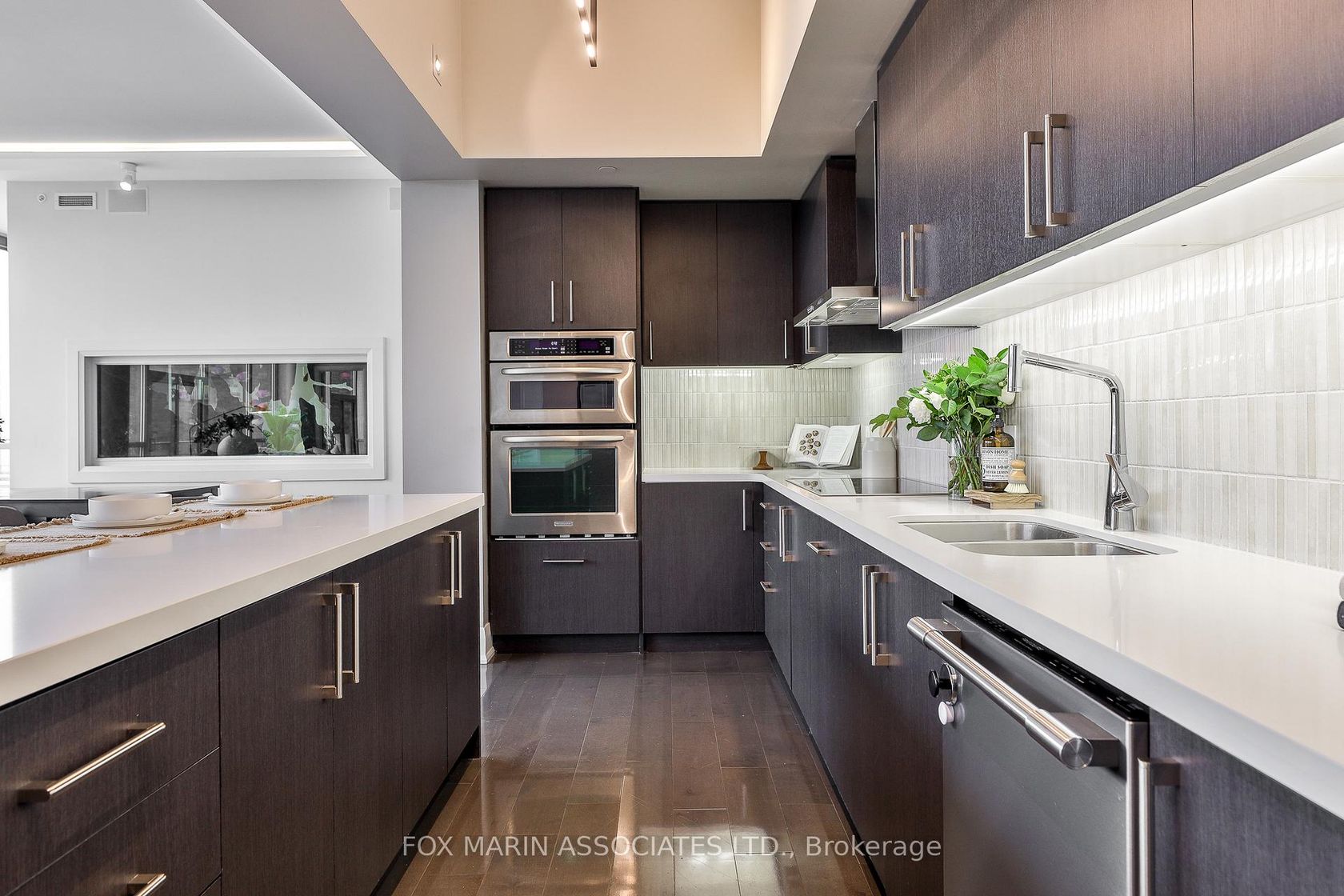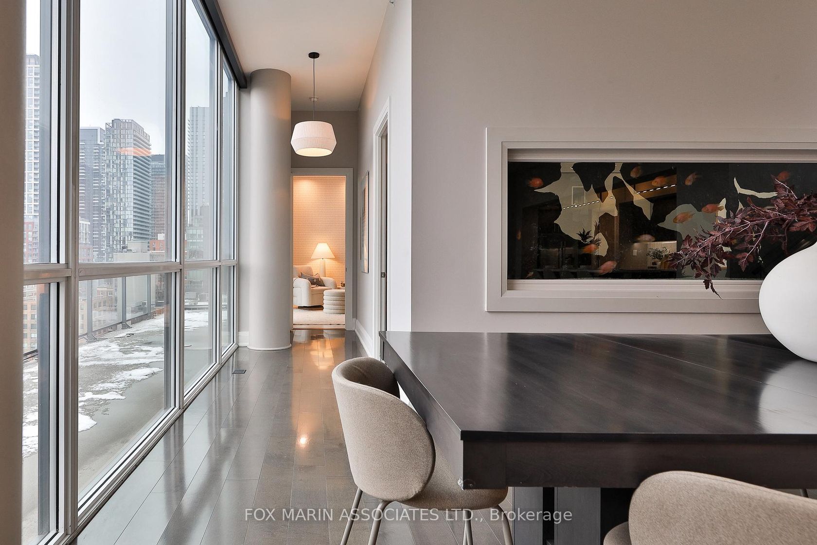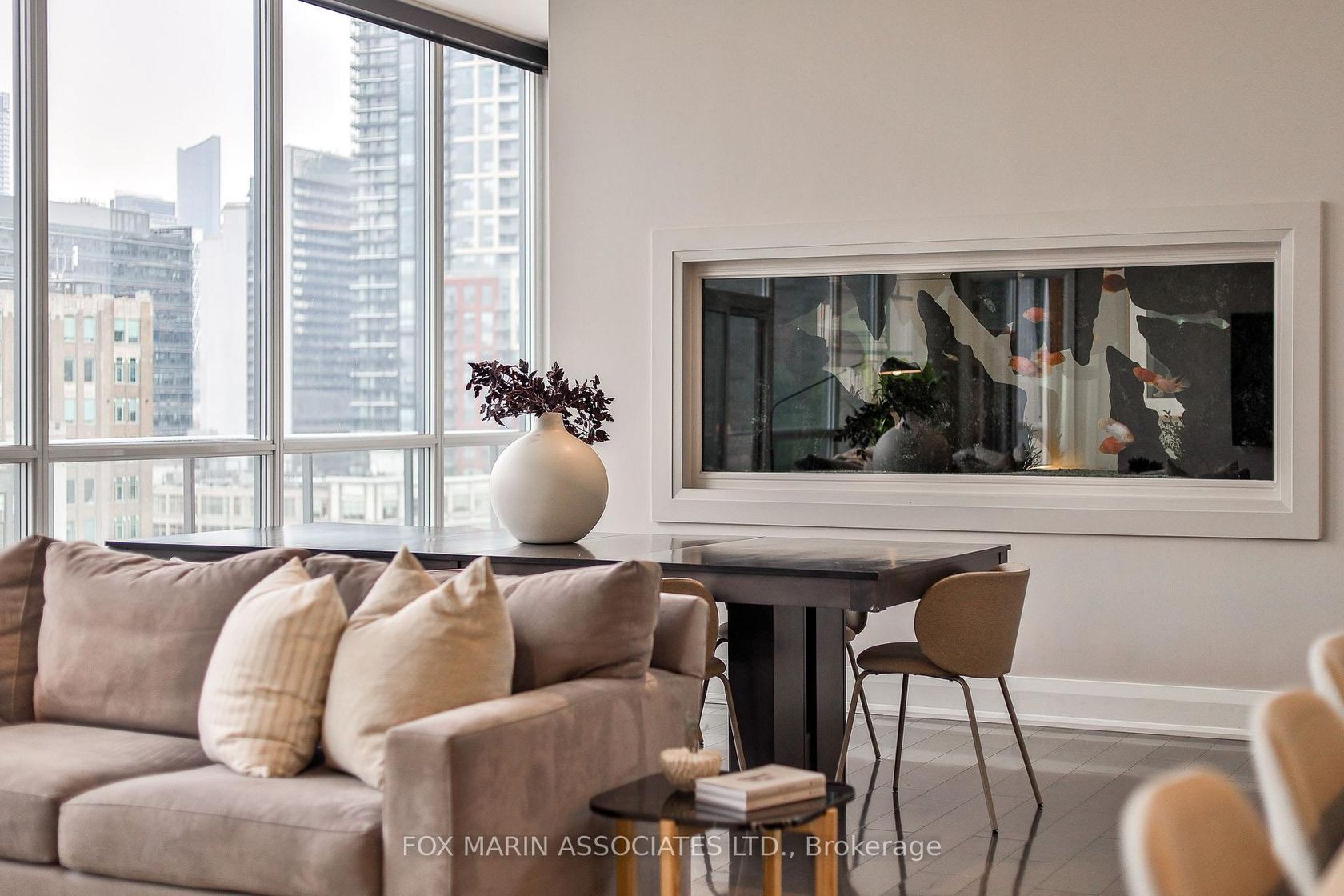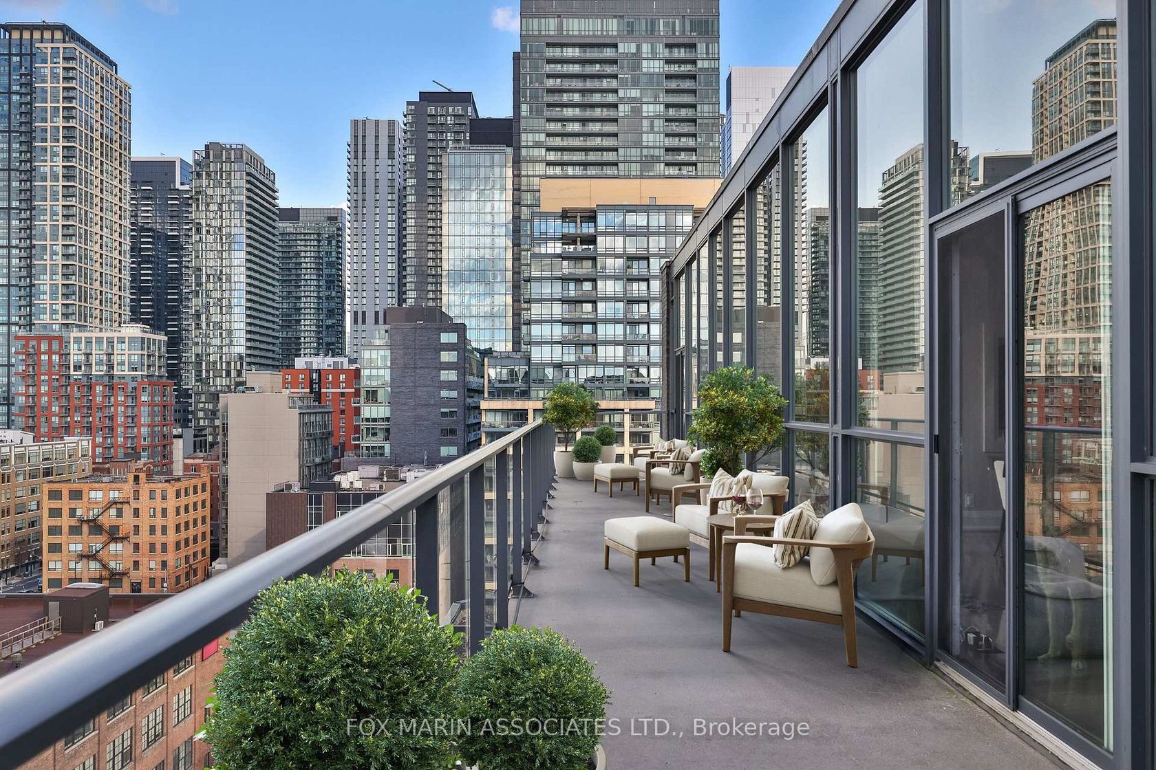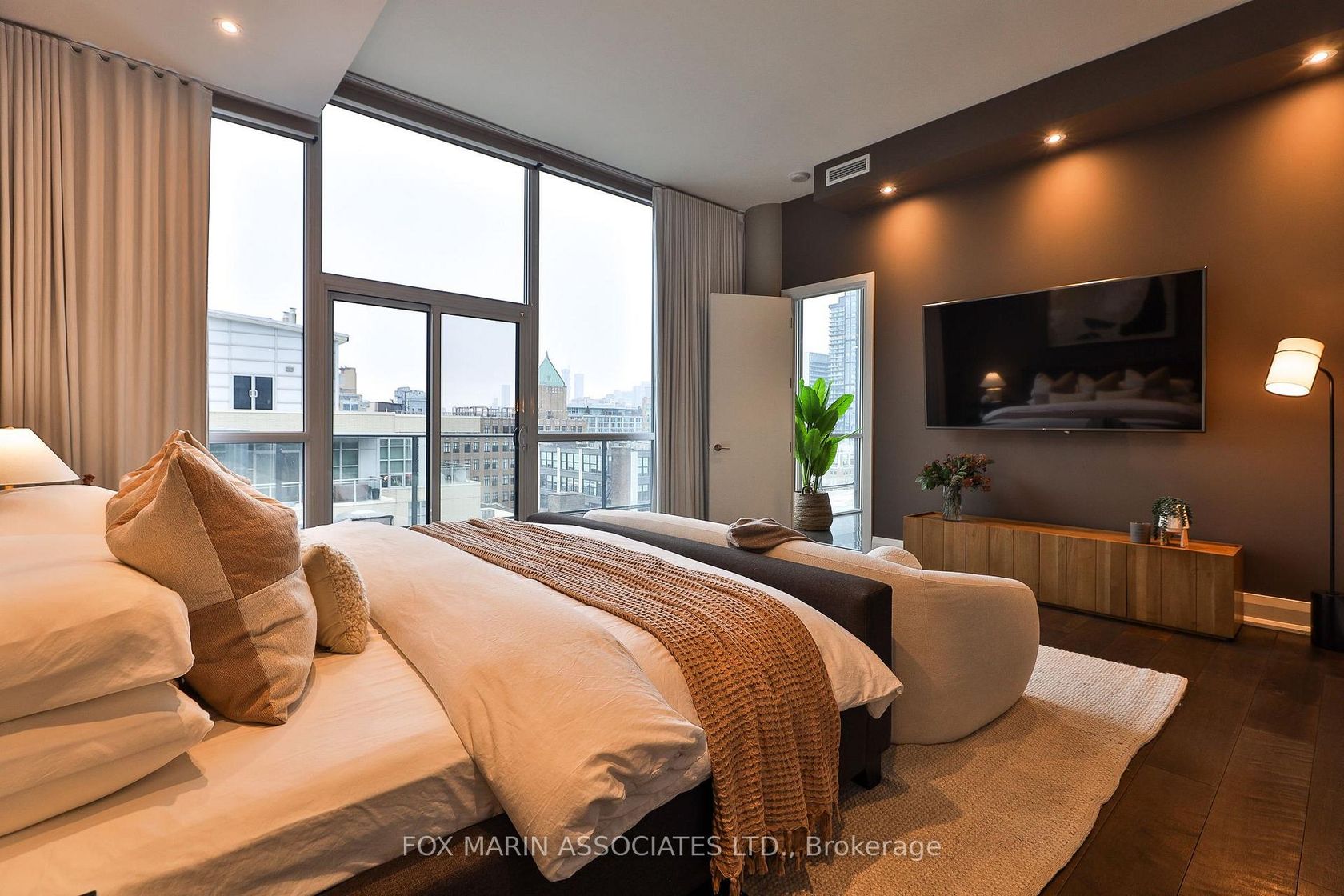 A penthouse that knows exactly who she is. A private two-storey residence in one of King West's most desirable boutique buildings, offering over 2,800 square feet inside and 2,700+ square feet of rooftop living above it all. Big scale. Real privacy. No theatrics required. The design is crisp and confident. Clean lines. Seamless indoor-outdoor flow. A soft, neutral palette that lets the architecture speak for itself. Nothing loud. Yet nothing accidental. Inside, the proportions hit immediately. Eleven-foot ceilings. Floor-to-ceiling glass. A glass-enclosed staircase. Layered textures. Spa-inspired washrooms. Custom storage everywhere you actually need it. Modern, but warm. Polished, not precious. The main living space makes its own statement. Expansive, light-filled, and anchored by a rare dual-sided fish tank with its own private caretaker (just ask!). The kitchen understands the assignment. Dark, streamlined cabinetry, easy four-person seating, and a hidden walk-in pantry with 200-bottle wine storage. Long brunches & oversized dinner parties encouraged. The primary suite is calm and considered, with integrated wardrobes and a generous ensuite featuring a glass-in shower, dual vanity, and deep soaker tub. Two additional bedrooms are quietly tucked away, along with thoughtful extras including a Carrie Bradshaw-level dressing room, a powder room, a real front hall closet, and a full-size laundry room. Thoughtful beats showy every time. We can prove it. Then there's the rooftop. And yes, it delivers. Fully private. Meaning, all yours. Sunny lounging and dining areas. City and CN Tower views. Designed for long evenings, late starts, and absolutely no reason to leave. Residents enjoy 24-hour concierge service, fitness facilities, and an elegant resident lounge. Two underground parking spaces and adjacent storage lockers complete the picture. Bring the dog (big or small) and the cat too!