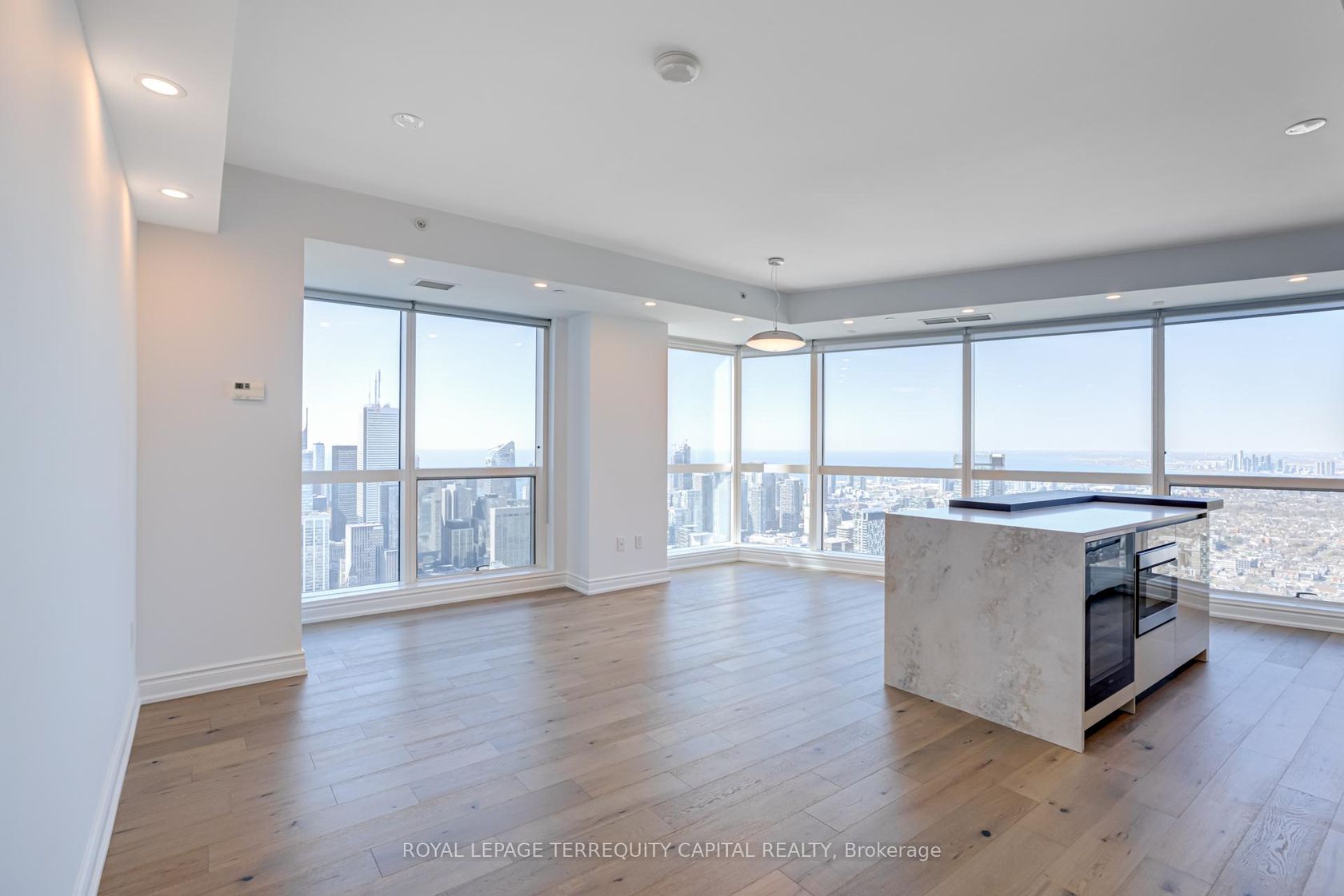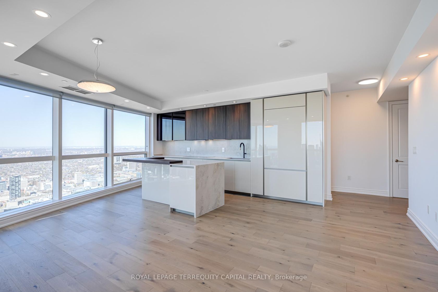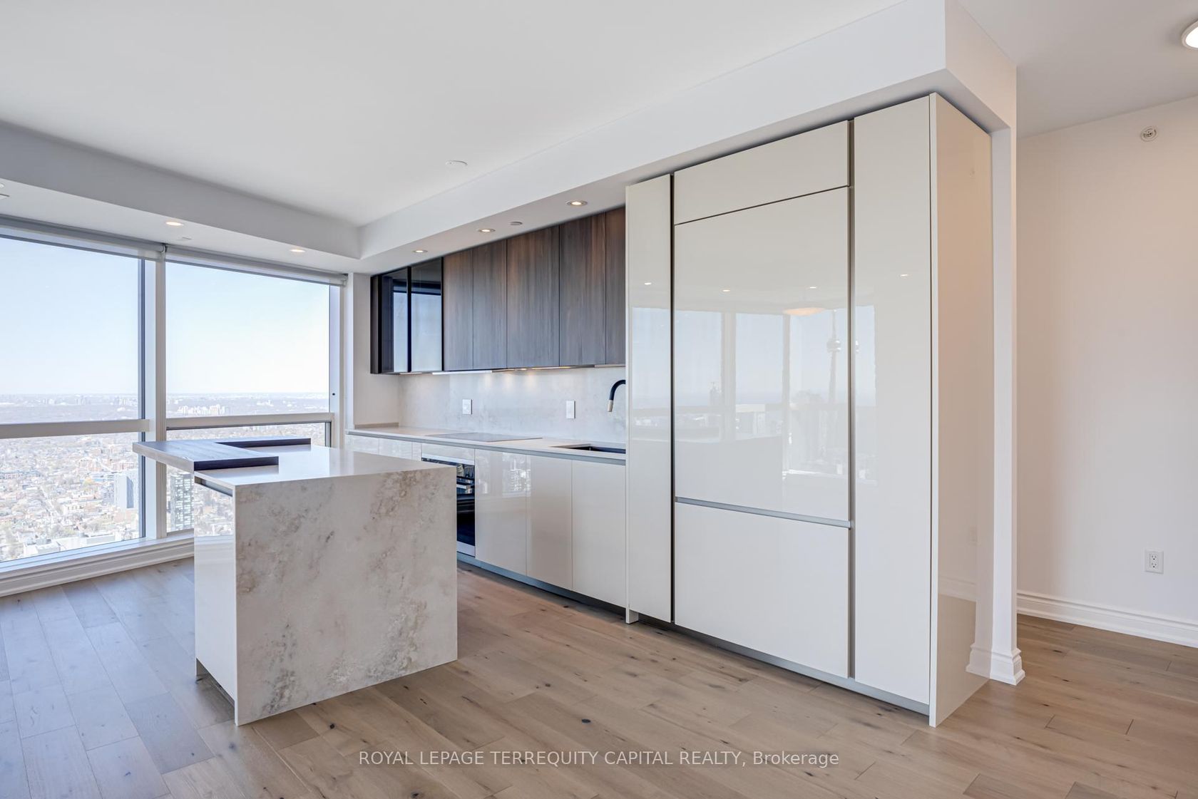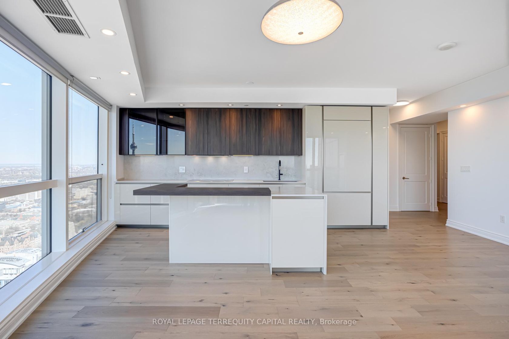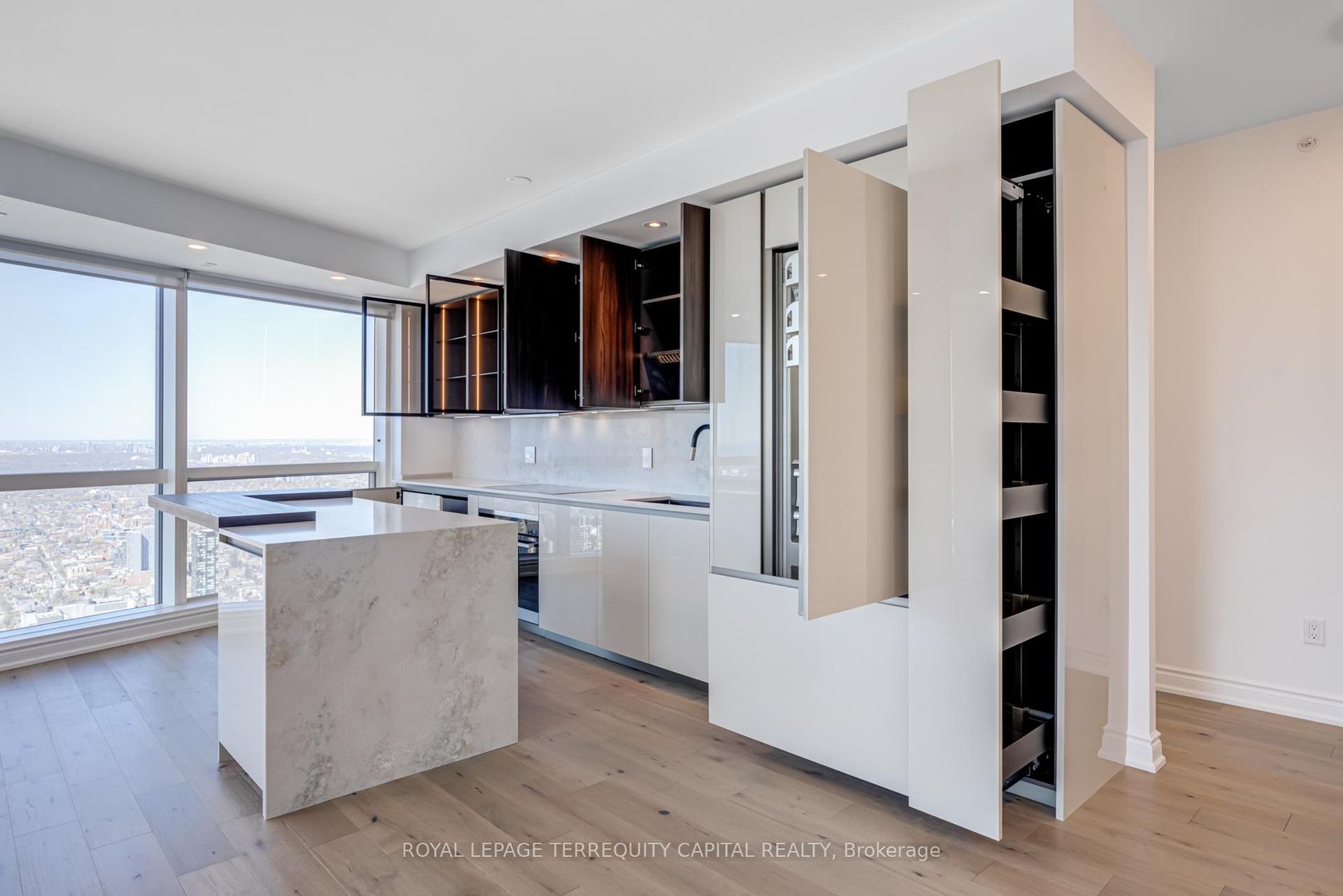 Welcome to Aura at College Park- a landmark address in the vibrant heart of Downtown Toronto. This stunning southwest corner suite offers 1,252 sq. ft. of luxurious living space, FULLY RENOVATED TOP TO BOTTOM. featuring 2 bedrooms + den, 9-ft ceilings, and floor-to-ceiling windows framing unobstructed CN Tower and Lake Ontario views. Custom European finishes, this home exudes sophistication and quality craftsmanship. The custom Italian kitchen and built-in closets (valued at …$140K+) are complemented by top-of-the-line appliances- Miele (Germany), Fhiaba (Italy), and AEG (Italy)- along with a built-in wine cellar, engineered hardwood floors, pot lights, and smooth ceilings throughout. The open-concept layout features a spacious kitchen and oversized island ideal for entertaining. The versatile den can serve as a third bedroom or home office, offering flexibility for any lifestyle. Enjoy unparalleled convenience with direct indoor access to IKEA, Marshalls, and the TTC subway. Steps to the Eaton Centre, Financial District, U of T, TMU, and Toronto's top hospitals and research centres, Aura is perfect for urban professionals. Residents enjoy access to the Higher Ground Health Club, a grand lobby, and world-class amenities in this prestigious tower. With a Walk Score of 99 and Transit Score of 100, everything you need is right at your doorstep. A must-see suite in one of Toronto's most iconic buildings!