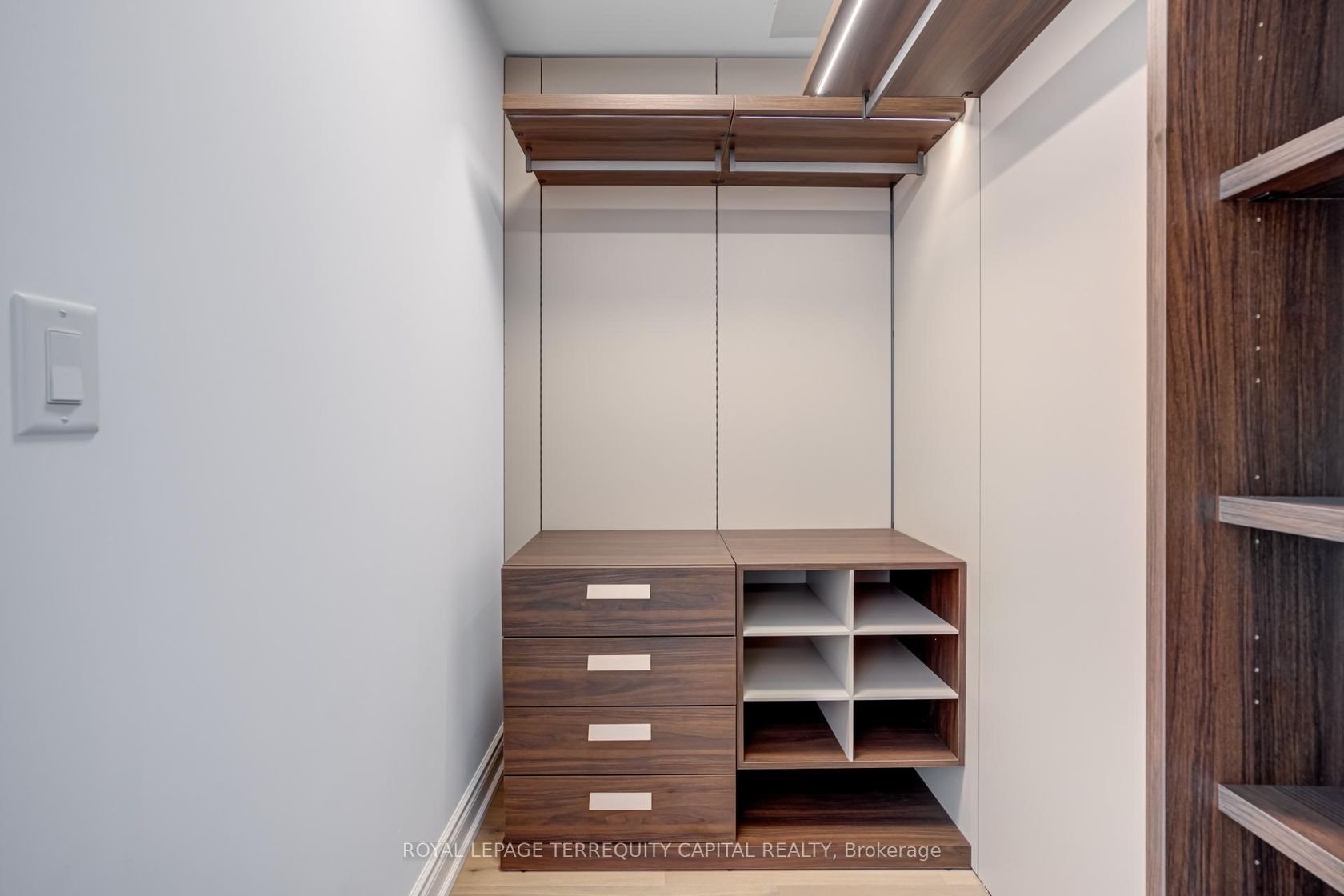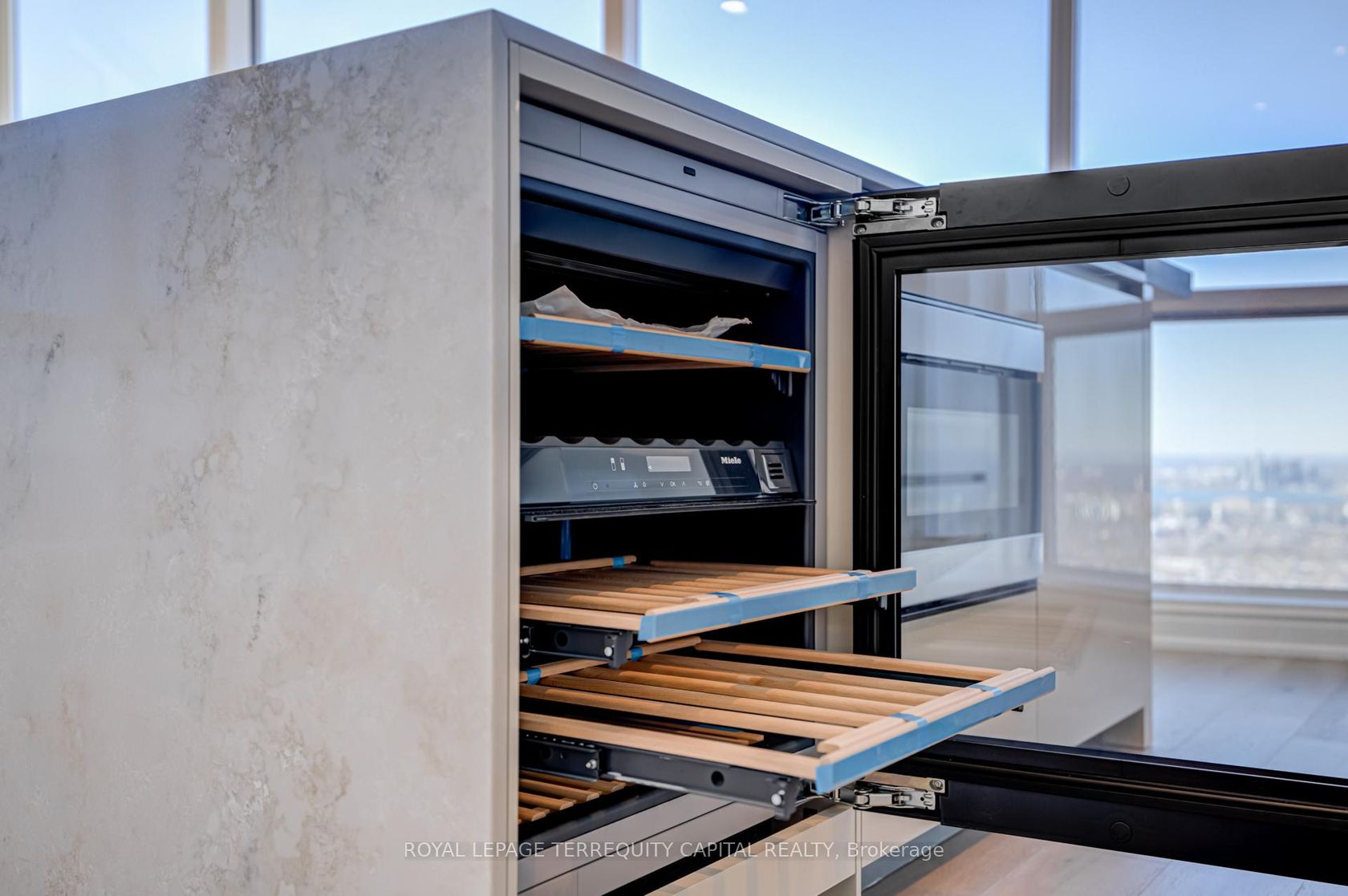 Welcome to Aura at College Park- a landmark address in the vibrant heart of Downtown Toronto. This stunning southwest corner suite offers 1,252 sq. ft. of luxurious living space, FULLY RENOVATED TOP TO BOTTOM. featuring 2 bedrooms + den, 9-ft ceilings, and floor-to-ceiling windows framing unobstructed CN Tower and Lake Ontario views. Custom European finishes, this home exudes sophistication and quality craftsmanship. The custom Italian kitchen and built-in closets (valued at $140K+) are complemented by top-of-the-line appliances- Miele (Germany), Fhiaba (Italy), and AEG (Italy)- along with a built-in wine cellar, engineered hardwood floors, pot lights, and smooth ceilings throughout. The open-concept layout features a spacious kitchen and oversized island ideal for entertaining. The versatile den can serve as a third bedroom or home office, offering flexibility for any lifestyle. Enjoy unparalleled convenience with direct indoor access to IKEA, Marshalls, and the TTC subway. Steps to the Eaton Centre, Financial District, U of T, TMU, and Toronto's top hospitals and research centres, Aura is perfect for urban professionals. Residents enjoy access to the Higher Ground Health Club, a grand lobby, and world-class amenities in this prestigious tower. With a Walk Score of 99 and Transit Score of 100, everything you need is right at your doorstep. A must-see suite in one of Toronto's most iconic buildings!