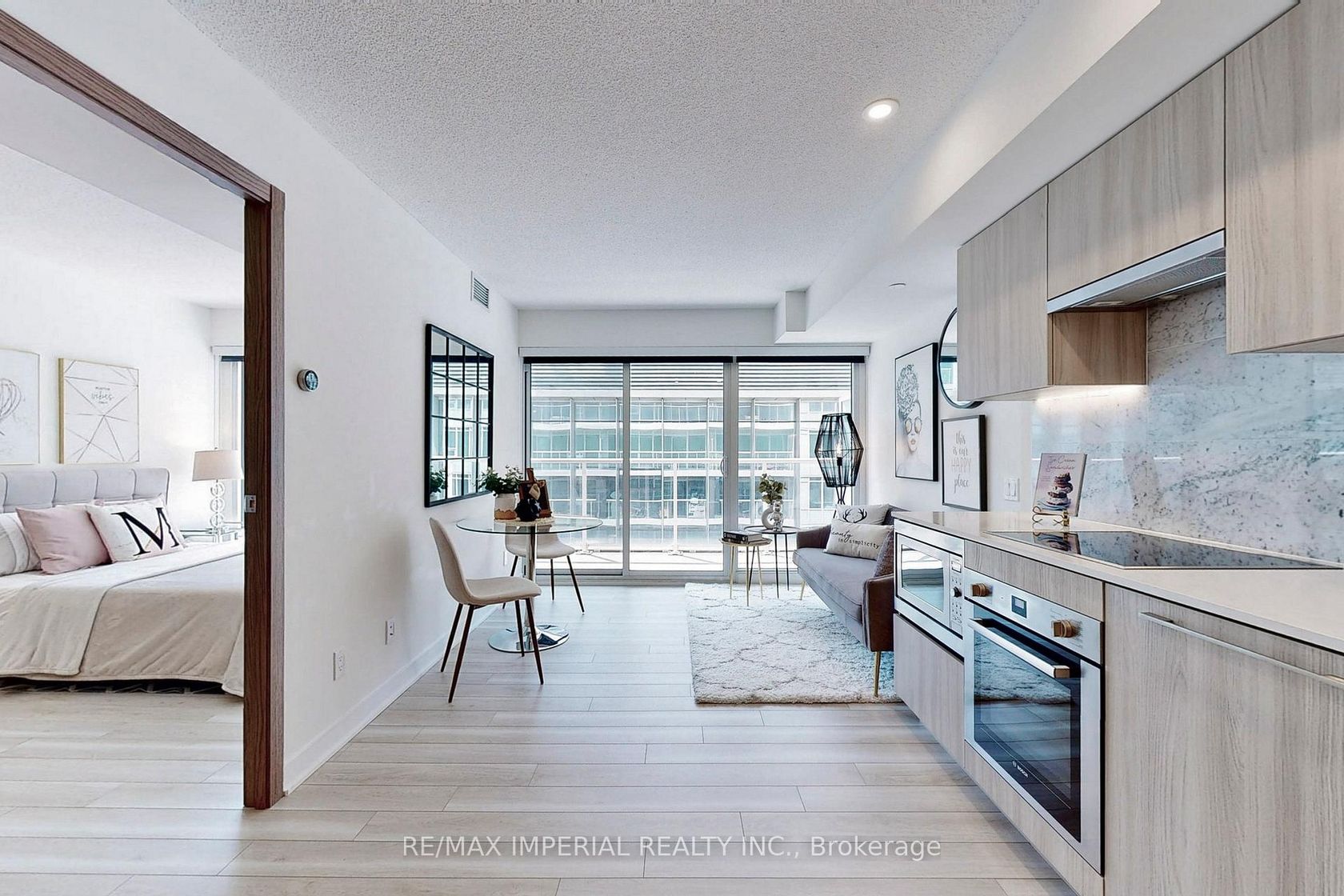 Luxury condo The Lakefront featuring a rarely offered south-facing 1+1 unit. The den with a glass sliding door can be used as a second bedroom, home office, or gaming room. Boasting 9' ceilings, wall-to-wall wood flooring, high-end integrated appliances, and floor-to-ceiling windows that fill the space with natural light. The bathroom and laundry area are efficiently combined for a spacious and practical layout. Thoughtfully designed layout with no wasted space. Enjoy over 23…,000 sq. ft. of state-of-the-art amenities, including a Fitness Centre, Indoor Pool, Sauna, Theatre, Study Room with WiFi, Kids' Playroom, Pet Spa, Outdoor Lounge, 24-hour Concierge, Guest Suites, and more. The Lakefront is ideally located in the vibrant West Block, anchored by a 50,000 sq. ft. Loblaws flagship supermarket, 11,000 sq. ft. of restaurants, office space, and 87,000 sq. ft. of additional retail. Convenient access to public transit, parks, schools, the lakeshore, and all essential amenities.
