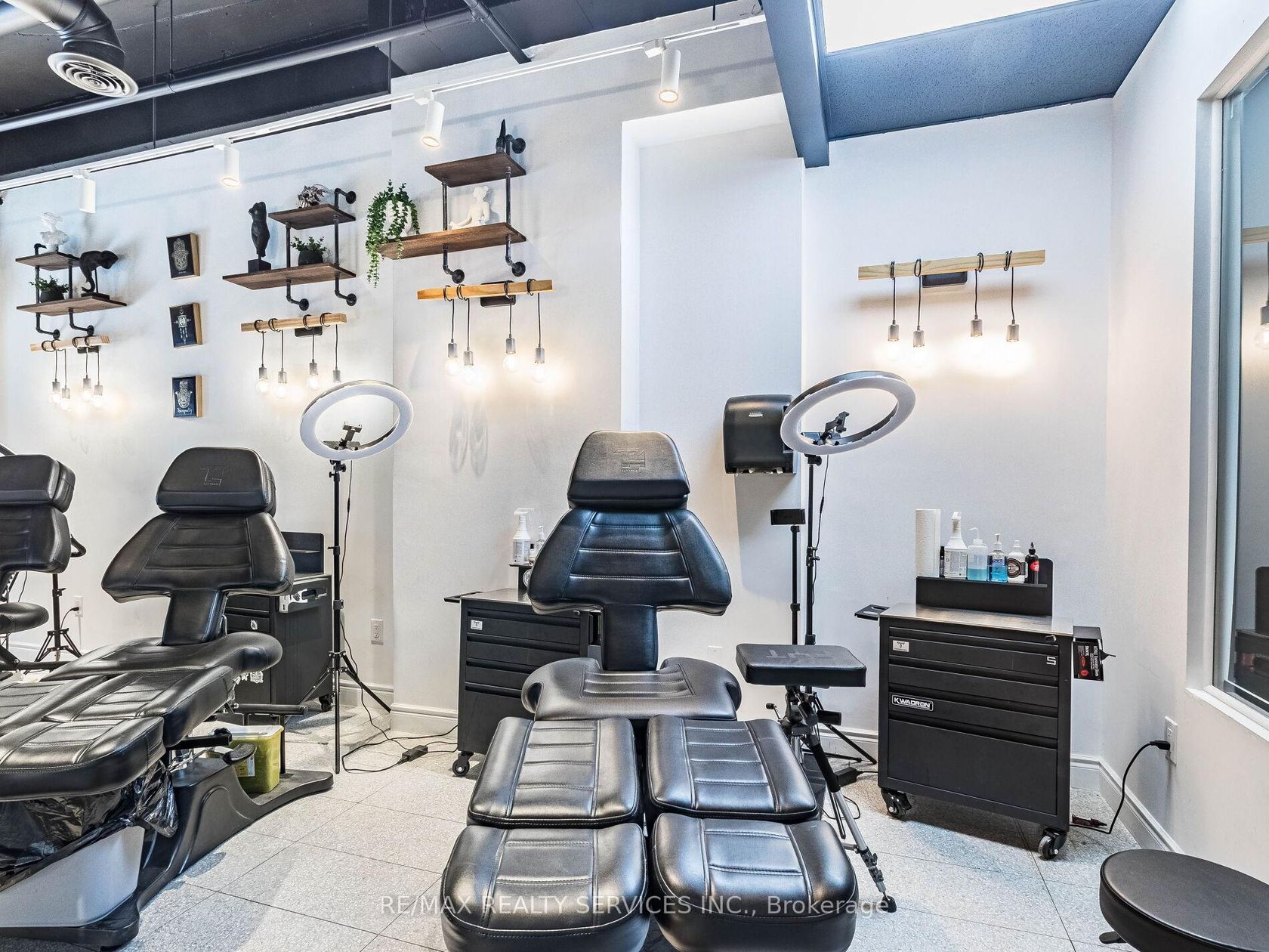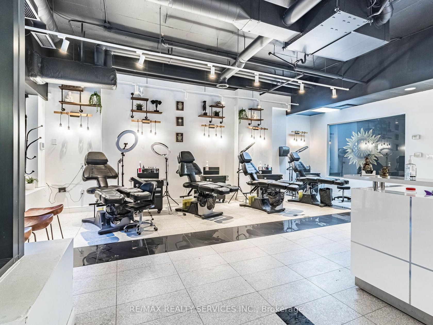 Turn-key tattoo studio for sale without brand name in a prime downtown location at Front & Church St. Spacious 1,130 sq. ft. studio with high-traffic exposure, attracting both local customers and tourists. Features 4 fully-equipped artist stations, a private luxury room, reception, and washroom. Ready to operate with all equipment included. Excellent opportunity in a trendy, high-demand area! This space can also be converted into a beauty salon or other permitted uses. Buyer or buyer's agent is advised to verify zoning and conduct necessary research for any alternate business use.