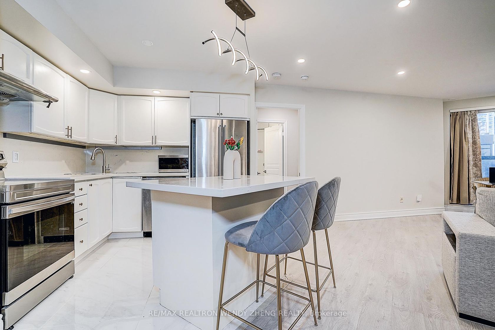 Luxurious "Triomphe" by Tridel, ideally located just steps to Finch Subway Station at Yonge Street! This beautifully renovated 2-bedroom split-layout suite offers 918sq.ft. of bright, functional living space featuring a brand-new modern kitchen, fully updated bathrooms, new laminate flooring, smooth ceilings, elegant pot lights, and upgraded light fixtures. The spacious open-concept living and dining area with kitchen island bar is perfect for everyday living and entertaining…. Enjoy 25,000sq.ft. of premium recreation facilities including virtual golf, bowling alley, indoor pool, tennis court, running track, theatre room, rooftop garden, gazebo and more. Direct indoor access to 24-hour Metro grocery store. Low maintenance fees include all utilities. A rare turnkey opportunity in a prime North York location!