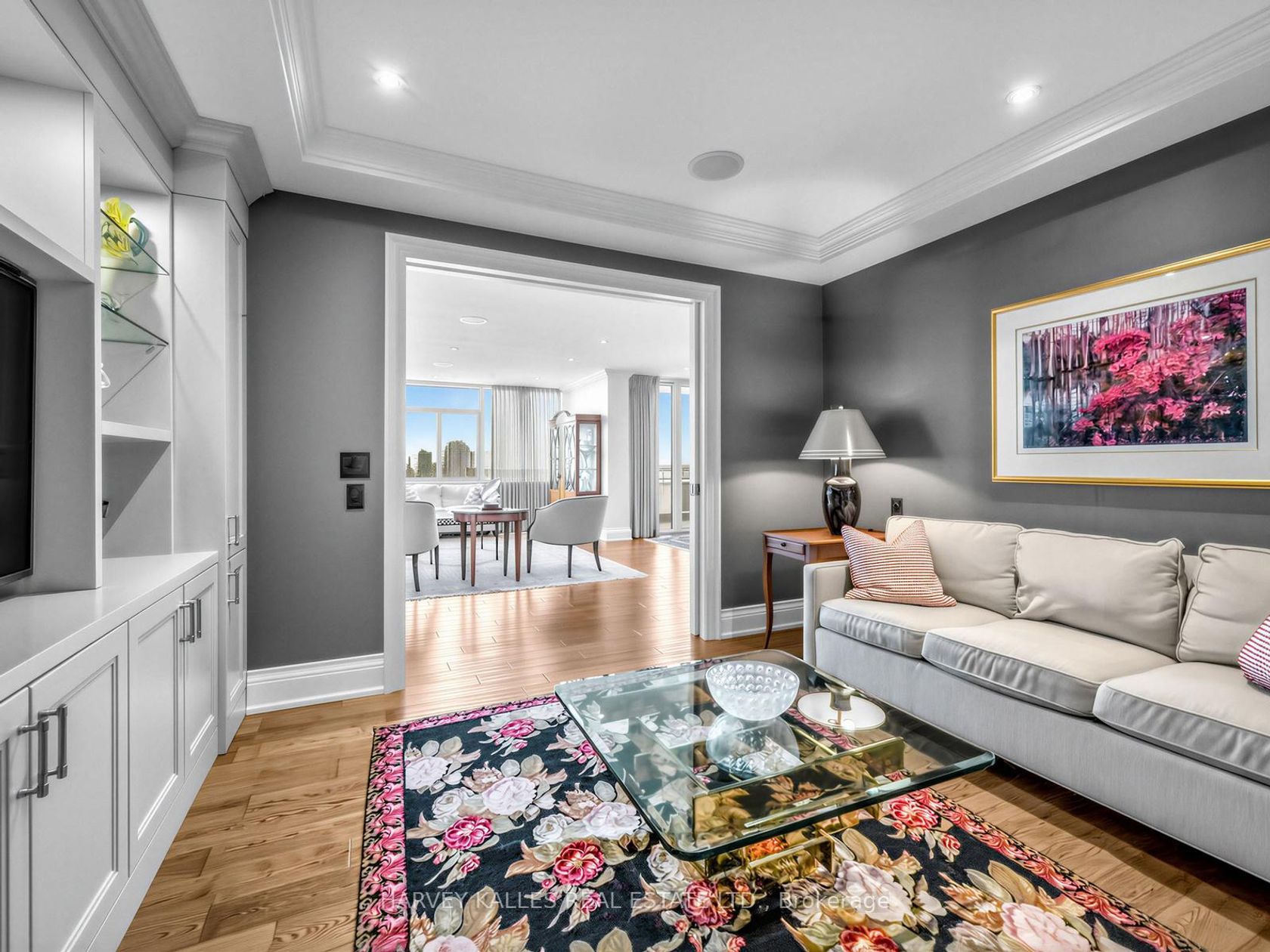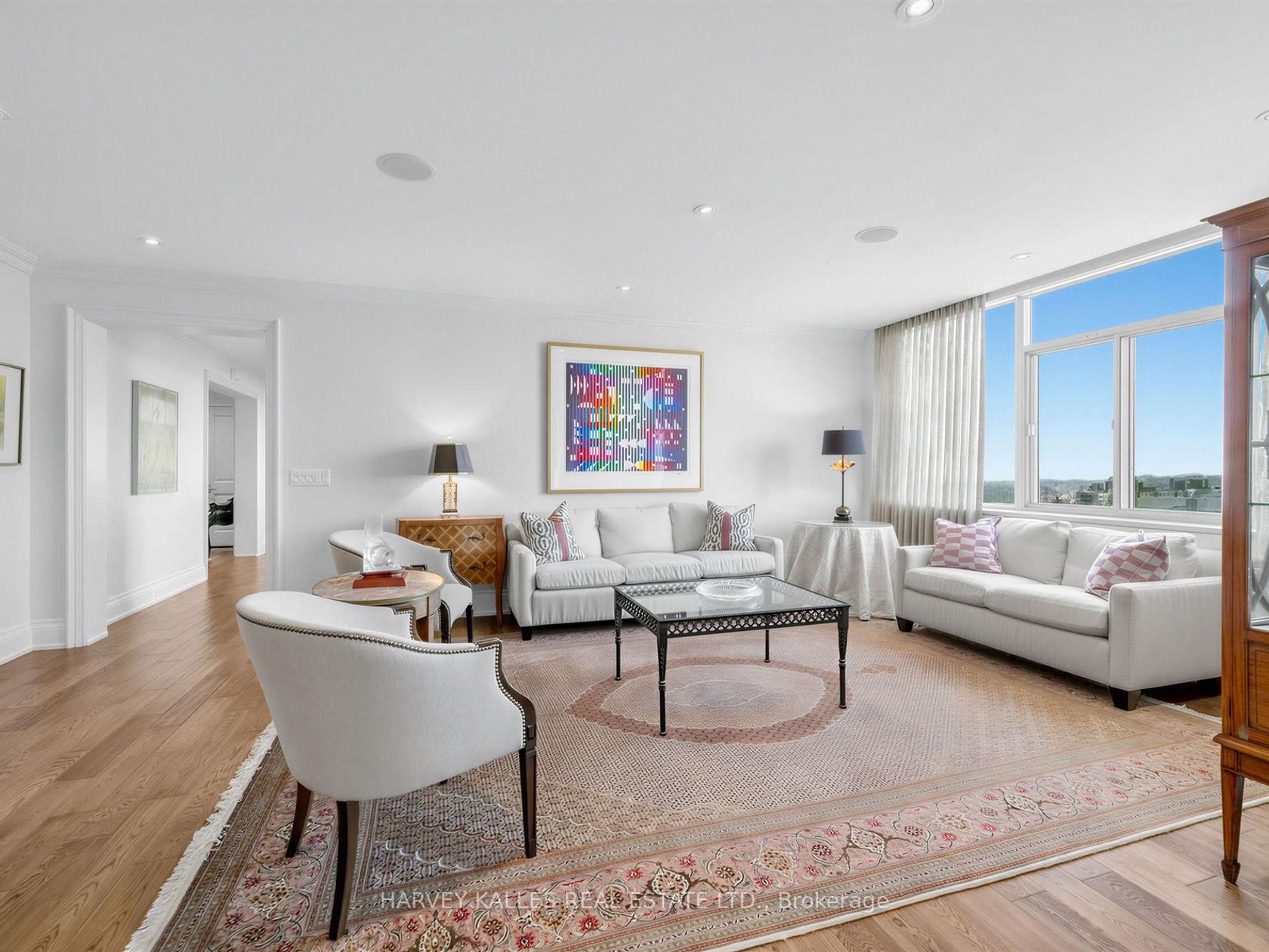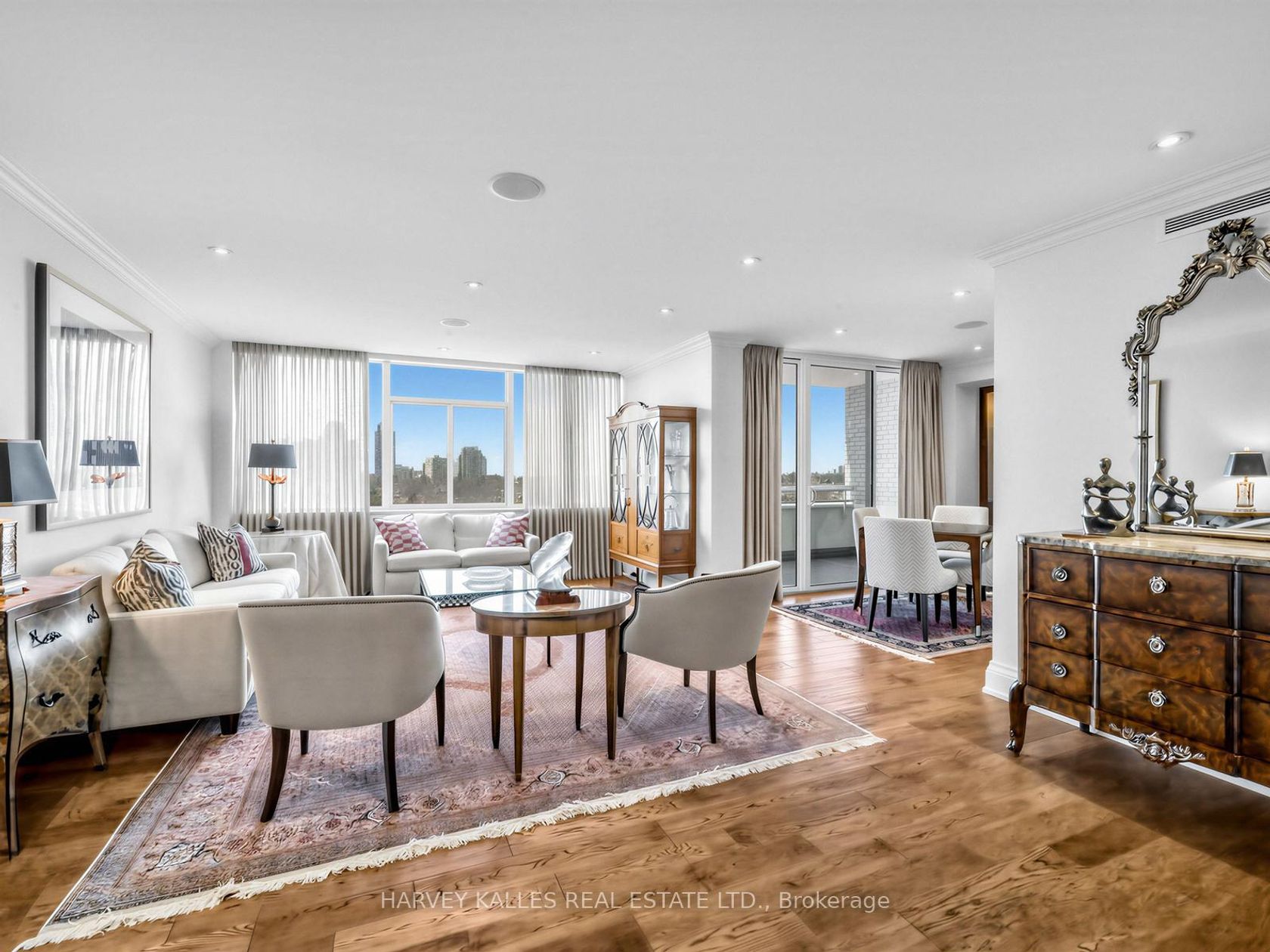 The moment you enter this elegant 2,839 square foot corner suite, you realize you have arrived somewhere special. The spacious inlaid marble floor entry opens to an enormous dining room with a sweeping west view, overlooking Lower Forest Hill Village and beyond. The bar area off the entertainment size living room serves equally as a card or games room. The fabulous chef's kitchen, equipped with Miele and Sub-Zero appliances is all one could ask for with its expansive centre i…sland, sun filled breakfast room, and enough storage space to satisfy the most prolific cook. The split bedroom plan allows privacy for guests and is equally well suited for live-in help. The unit has a large laundry room with full sized Miele washer and dryer, and plenty of storage. There are pot lights throughout, battery operated sun-blinds on all the windows, and two separate furnaces and air-conditioning units for 2-zone control. This in-demand building is walking distance to Upper Canada College, Forest Hill Collegiate, the Village Shops and is just steps to TTC. There is 24-hour concierge service with valet parking included, and a car wash service is available for a small fee. Other amenities include a party/meeting room, an exercise room and a lovely private garden for enjoying the outdoors. This fabulous home will not disappoint.