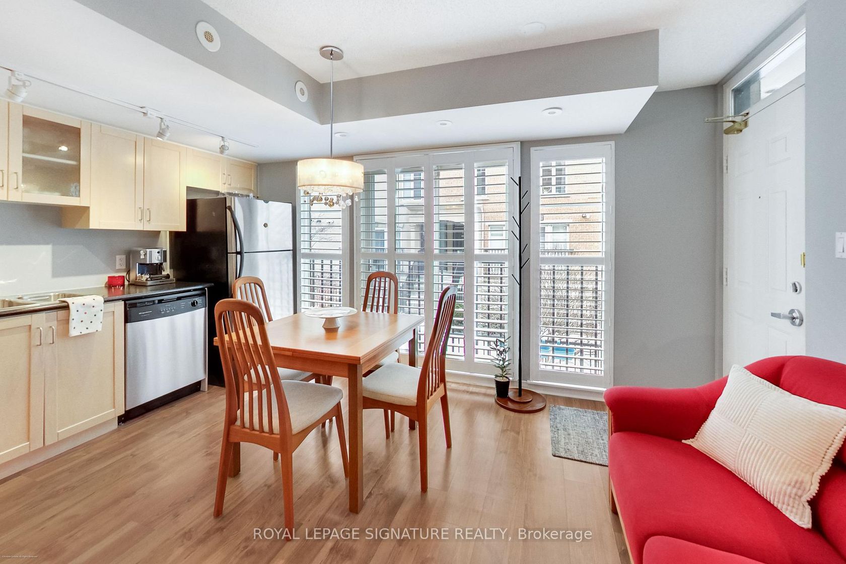 Cute as a button and in the heart of Liberty Village, this charming one-bedroom, main-level, single-storey townhome is one you have to see! Say goodbye to elevators and hello to your own private entrance in this bright home flooded with natural light. Featuring clean modern finishes, laminate floors, and no wasted space, the thoughtfully designed open-concept living and dining area flows seamlessly into a modern kitchen with stainless steel appliances and ample cabinetry-perf…ect for everyday living or entertaining. The primary bedroom offers French doors, a closet and easy access to the 4-piece bathroom, while in-suite laundry adds everyday convenience. Includes one storage locker. Just steps to Liberty Village's vibrant restaurants, cafés, shops, parks, and transit-urban living at its best in one of Toronto's most sought-after neighbourhoods.