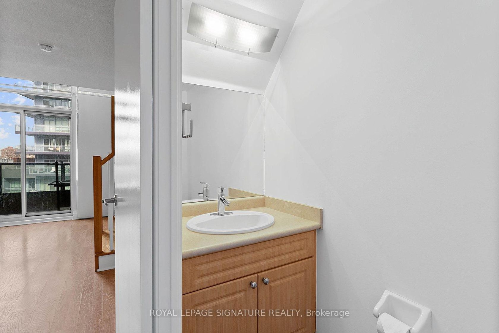 Turn-key and freshly painted, this bright two-storey suite offers a functional layout and exceptional natural light. The kitchen is generously sized and overlooking the living room, creating an open and connected main living space . The living room features a walk-out to the balcony and dramatic two-storey, floor-to-ceiling windows that fill the suite with natural light. A convenient 2-piece powder room completes the main level. Upstairs, the spacious bedroom includes in-suit…e laundry and a private ensuite bath, offering a comfortable and practical retreat. Ideally located close to everyday amenities, with Loblaws across the street and the Fleet streetcar at your doorstep. Enjoy being minutes from the waterfront and green space at Coronation Park. Parking and locker included.