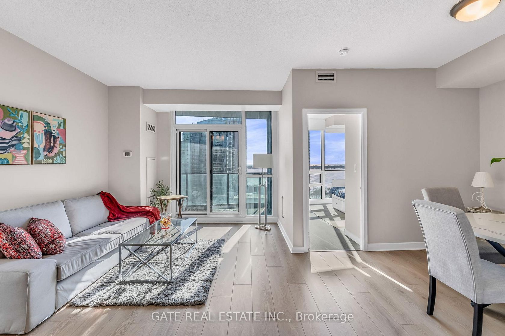Lake Views, Downtown Energy & Exceptional Convenience! Welcome to Success Tower, where urban living meets breathtaking south-facing views of the lake and vibrant waterfront. This bright, open-concept unit features a spacious living and dining area with a walkout to a private balcony-perfect for relaxing and enjoying the stunning city and lake scenery. Floor-to-ceiling windows fill the space with natural light, creating an airy and inviting atmosphere. The functional split-bedroom layout offers generous closet space and two washrooms, providing comfort and privacy-ideal for professionals, couples, or small families. Located in the heart of downtown, you are just steps to the TTC, GO Station, Scotiabank Arena, the Financial District, theatres, restaurants, and the waterfront-placing the best of city living right at your doorstep. The unit also includes one locker for additional storage.