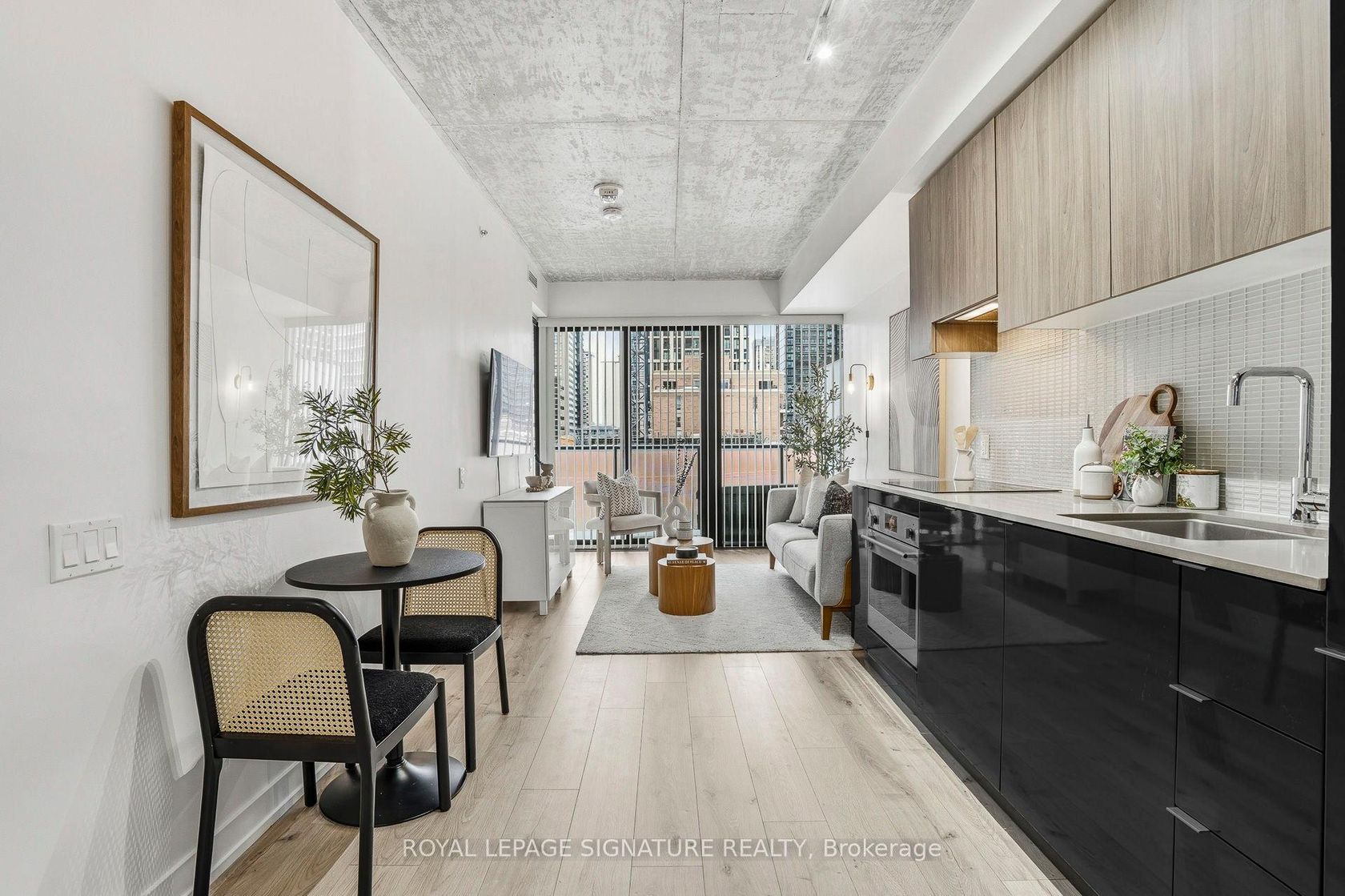Imagine waking up in the heart of Yonge & Eglinton - coffee in hand, city energy just outside your door. Welcome to Suite 306 at 161 Roehampton Avenue. Offering 547 sq ft of thoughtfully designed interior living space plus a 91 sq ft private balcony, this loft-inspired suite blends modern sophistication with urban character. Exposed concrete ceilings create that coveted midtown aesthetic, while natural light fills the open-concept living and dining space, giving the home warm…th and dimension. The sleek kitchen is outfitted with customized built-in appliances, streamlined cabinetry, and contemporary finishes, ideal for hosting friends before dinner along Yonge Street or enjoying a quiet night in. One of the most versatile features is the enclosed den with privacy-stained sliding doors. Whether you're working from home, welcoming guests, or creating a nursery, this flexible space adapts to your life as it evolves. The spacious primary bedroom offers generous closet space and connects to a stylish semi-ensuite bath, delivering both function and flow. And then there are the amenities - because living here feels like being on permanent staycation. Start your mornings in the fully equipped fitness centre, unwind in the spa with steam room and therapy room, or take in skyline views from the rooftop terrace with BBQs. In warmer months, relax by the outdoor infinity pool and hot tub. Entertain friends in the residents' lounge featuring a golf simulator, pool tables, and a TV area. Steps to the subway, shops, restaurants, cafés, and everyday essentials, this unbeatable location offers exceptional walkability and seamless transit access - making it highly desirable for professionals and renters alike. For first-time buyers, this is your entry into one of Toronto's most vibrant neighbourhood. For end-users, it's turnkey living with premium amenities. For investors, it's a high-demand location with strong rental potential