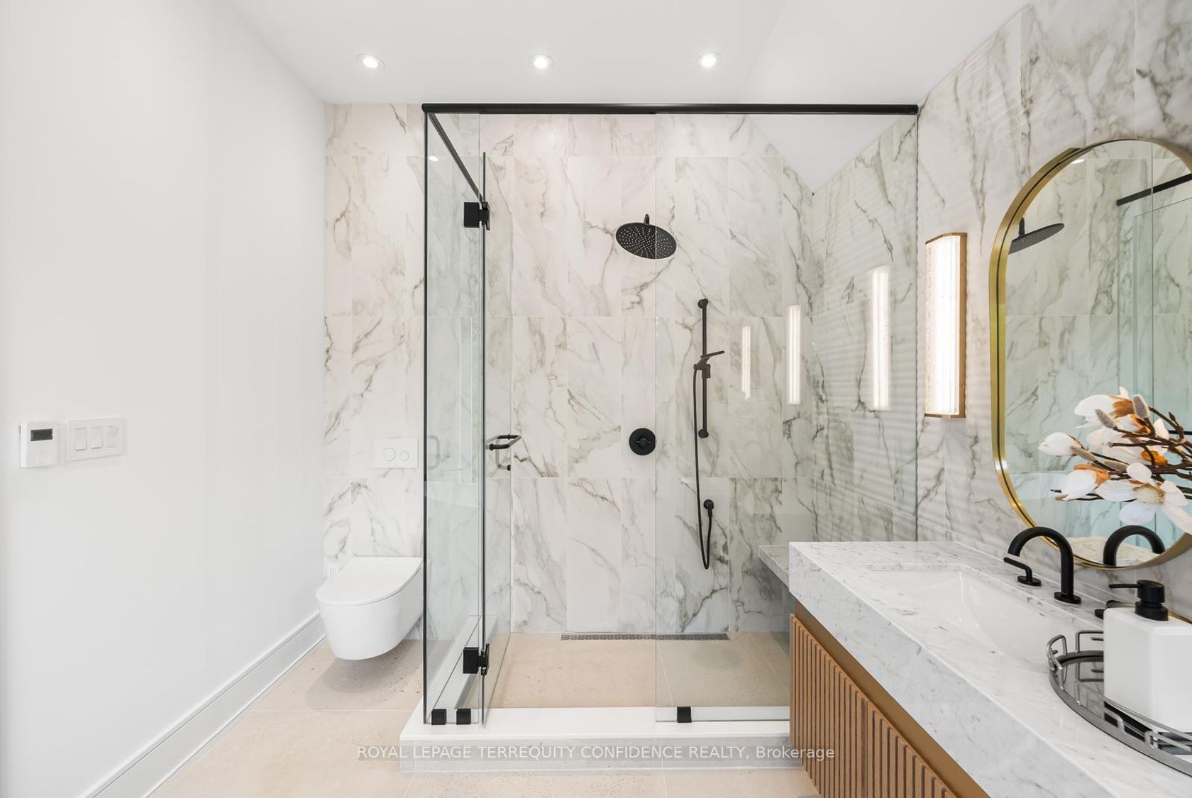 Welcome to this masterpiece of elegant design in the heart of the coveted Willowdale West neighborhood. At 338A Horsham Ave, discover warmth & luxury in this home with a spacious interior, extensive use of slabs, and refined finishes throughout. Enter to find the living and dining rooms with beautiful detailing: wall paneling with rounded corners, a cozy fireplace, double pot lights, built-in speakers, and an abundance of light flowing in from the large bay window. Continue o…n to the sublime eat-in kitchen, that comes equipped with a porcelain slab kitchen island, high-end Miele built-in appliances, serene breakfast area, large built-in bench, tall wine rack, and a walk-out to the deck. The magnificent family room features a vapor fireplace, built-in speakers, built-in shelves, a stunning design & wall paneling, and a view of the backyard. Upstairs, 4 bedrooms and a convenient laundry room grace the second floor; including the peaceful primary room, with a dazzling fireplace, built-in speakers, walk-in closet, and luminous 6 piece ensuite with heated floors. Soaring 12' ceilings elevate the basement, which features heated floors throughout. The recreation room boasts a grand wet bar, built-in speakers, fireplace, above grade windows, and walk-up; and an additional bedroom & bathroom provide even more opportunity. Additional features include a double car garage; 2 laundry rooms (basement rough-in); exquisite millwork & modern double LED pot lights throughout. Close to many high-ranking schools and tranquil parks. Live with comfort at this truly exceptional home, and experience modern leisure and luxury, in a highly convenient location.