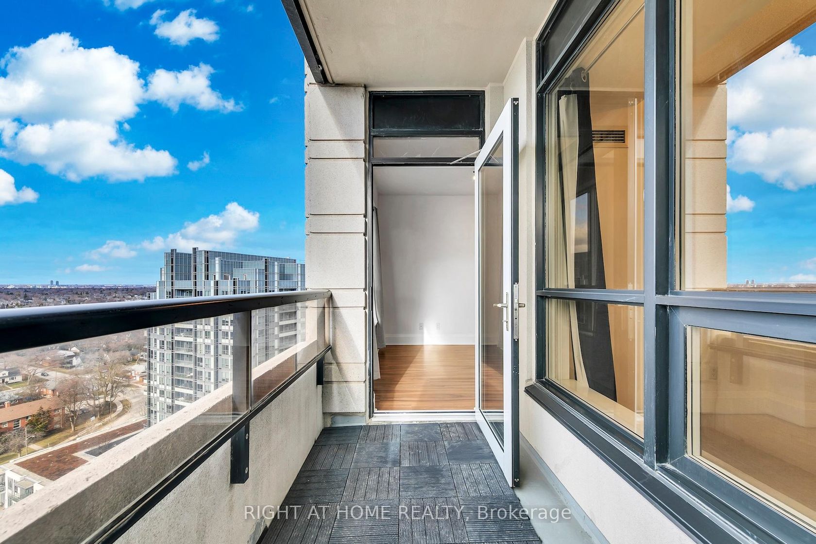 Experience elevated city living in this bright one-bedroom plus den condo featuring spectacular northwest city and park views from a high floor on the quiet side of the building, away from highway noise. Step out onto your private open-air balcony to relax and enjoy sweeping unobstructed views overlooking the surrounding parks and playgrounds. The thoughtfully designed layout includes a spacious den, large enough to function as a guest room, nursery, dining area, or home offi…ce, offering exceptional flexibility to suit your lifestyle. The modern kitchen features full-size stainless steel appliances, including a bottom-freezer fridge, a slide-in electric cooktop and oven, and a microwave oven with range hood. Enjoy the convenience of an ensuite front-load laundry, mirrored sliding closet doors, and window coverings and light fixtures. This meticulously maintained, pet- and smoke-free suite also includes a premium parking space located just steps from the elevator entrance. Ideally located within walking distance to public transit, park, playground, and a nearby elementary school, with quick access to Highways 401 and 404 and the subway line. Don't miss the nearby shopping, local eateries, and everyday conveniences. Residents also enjoy an impressive clubhouse with an indoor pool, fitness centre, sauna, theatre room, library, party and dining rooms, billiards, and guest suites.
