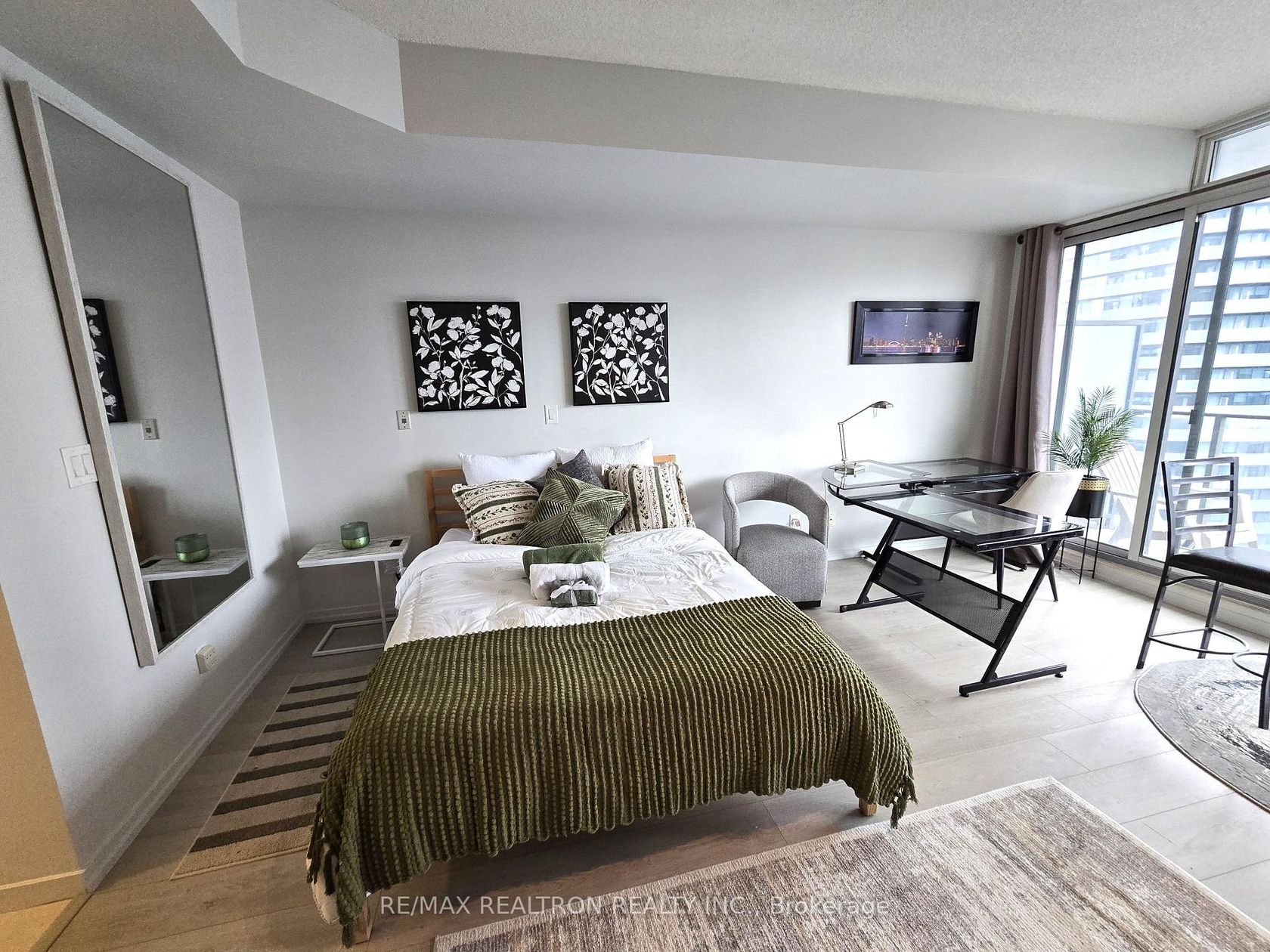 Welcome to this fabulous studio in the Residences of Maple Square in the heart of Toronto harbourfront, financial and entertainment districts. Offering breathtaking views of the CN Tower and Lake Ontario. Recently fully renovated, new high-quality flooring with sound-protecting underlay, modern finishes, and a bright, open layout. Enjoy your mornings and evenings on the large balcony with beautiful view. Fully furnished and equipped for immediate Airbnb rental). Located in …a highly desirable, very well-managed complex with luxurious starte-of-the art amenities: two pools (indoor heated pool with jacuzzi sauna and rooftop outdoor heated pool with BBQ and tanning deck and barbecue), gym, sauna, theatre/media room, billiards, business centre, party/meeting rooms, 24-hour concierge. Direct access to The PATH and nearby amenities. Building permits short-term rentals, making this a turnkey investment opportunity; owner is superhost.
