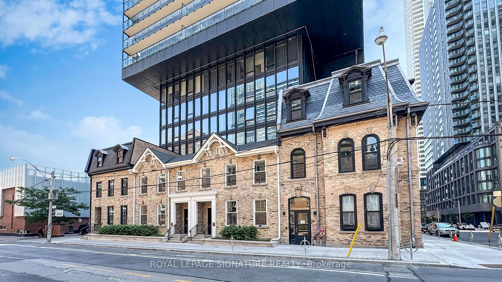 Where Heritage Charm Meets Modern Sophistication. This two-storey executive townhome seamlessly blends the timeless elegance of a heritage home with the convenience and luxury of modern condo living, all while offering full Tarion warranty coverage. Boasting 3 spacious bedrooms + den, 1361 sq ft, soaring 10'5" ceilings on main floor & 9'5" on second floor, and expansive principal rooms, this residence is an entertainer's dream. Every detail has been thoughtfully upgraded with… bespoke luxury finishes, including custom cabinetry, integrated appliances, and rich hardwood flooring throughout. Enjoy a host of premium building amenities such as a state-of-the-art fitness room, a stylish party, a sprawling terrace, a kids' playroom, and even a pet spa. Situated in the heart of the city, this location is unbeatable! Steps to the Eaton Centre,Financial District, St. Michaels Hospital, TMU, and TTC. Discover city living at its finest! **EXTRAS** Indulge in the ultimate luxury with this exquisitely designed property featuring > Bespoke luxury finishes creating a seamless blend of sophistication and modern living.