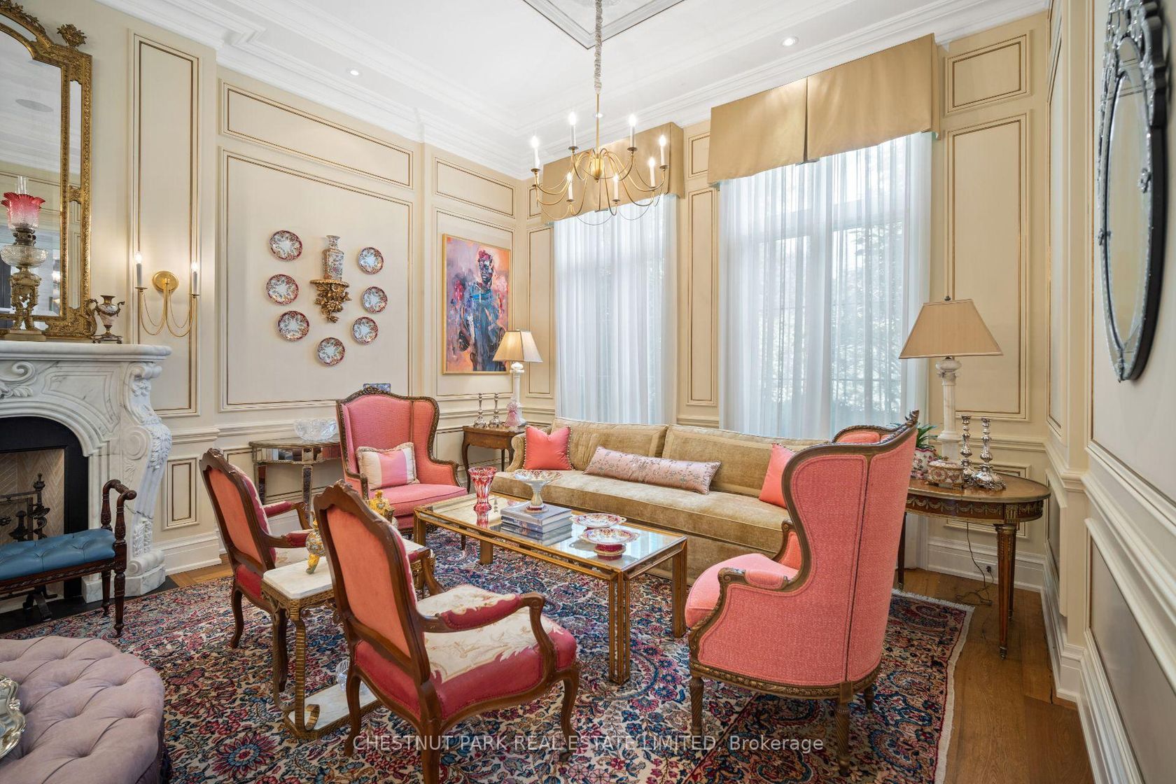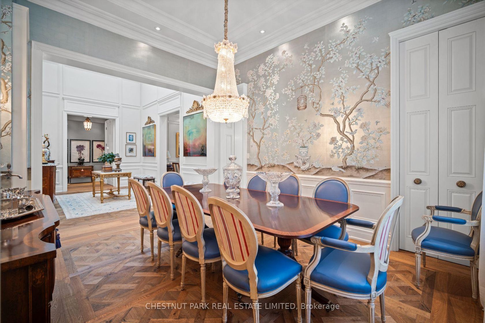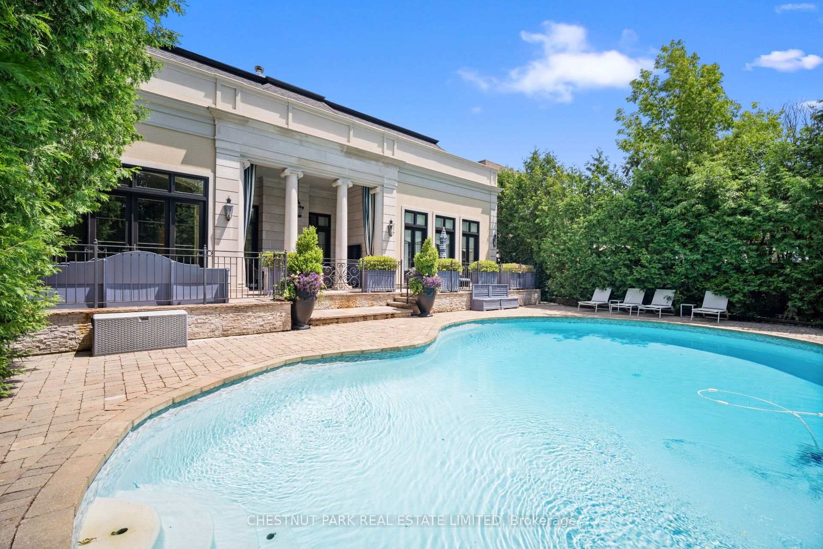 An Exquisite French-inspired residence in the Bridle Path. This exceptional home blends timeless elegance with modern luxury, showcasing masterful craftsmanship and meticulous attention to detail. Grand principal rooms adorned with intricate millwork, soaring ceilings, and sun-filled spaces designed for both gracious entertaining and everyday living. This home is a masterpiece of design, featuring ornate and timeless wall panelling and curated designer finishes that exude sop…histication. The chefs kitchen is a work of art, boasting custom cabinetry and premium appliances. Retreat to the primary suite, a sanctuary of indulgence with extensive closet space and a marble-clad ensuite. Full lower level with a recreation room, second kitchen, additional guest space, exercise room, and storage rooms. The backyard is superb - with a covered outdoor loggia, terrace and extensive patio space for relaxing and entertaining - complete with an inground swimming pool. Plus a fantastic gazebo and 3-piece washroom. The property is completely landscaped: stone paver driveway and walkways, gated front entrance, with an emphasis on privacy from the street. This palatial home is set in one of Toronto's most exclusive neighbourhoods, with conveniences and recreational amenities in the immediate vicinity. This residence offers a seamless blend of old-world grandeur and contemporary comfort, offering a rare opportunity to live such a refined lifestyle.
