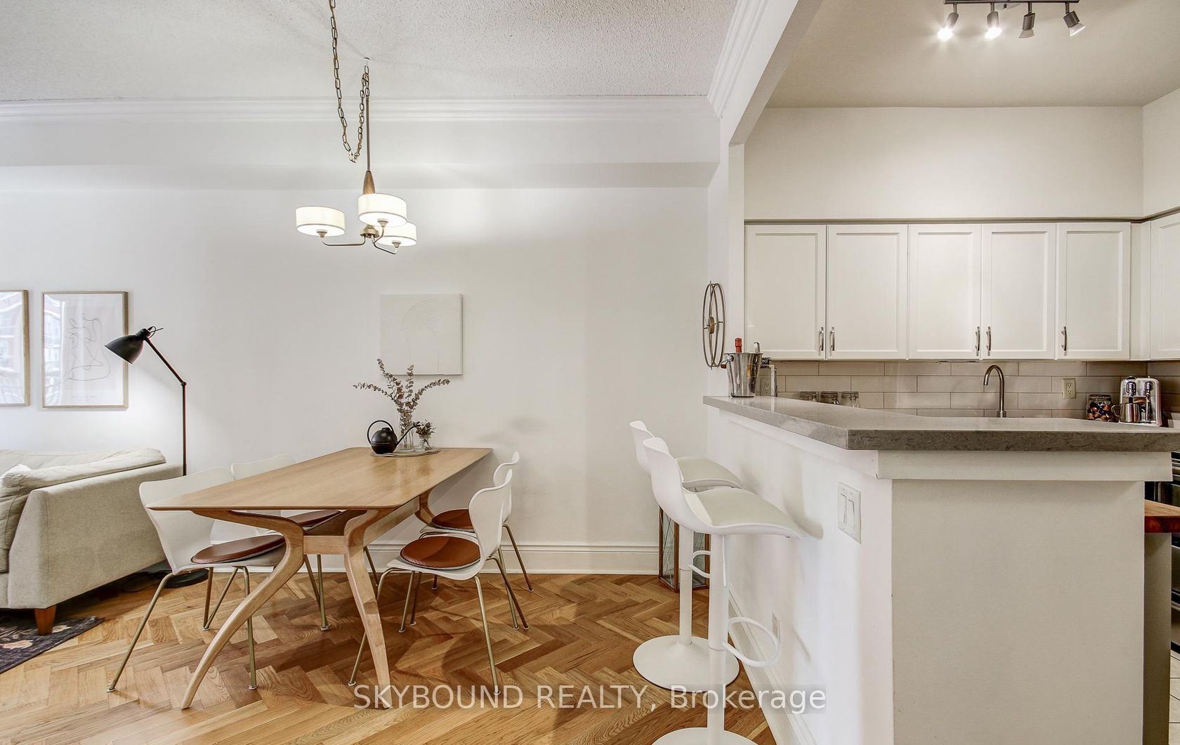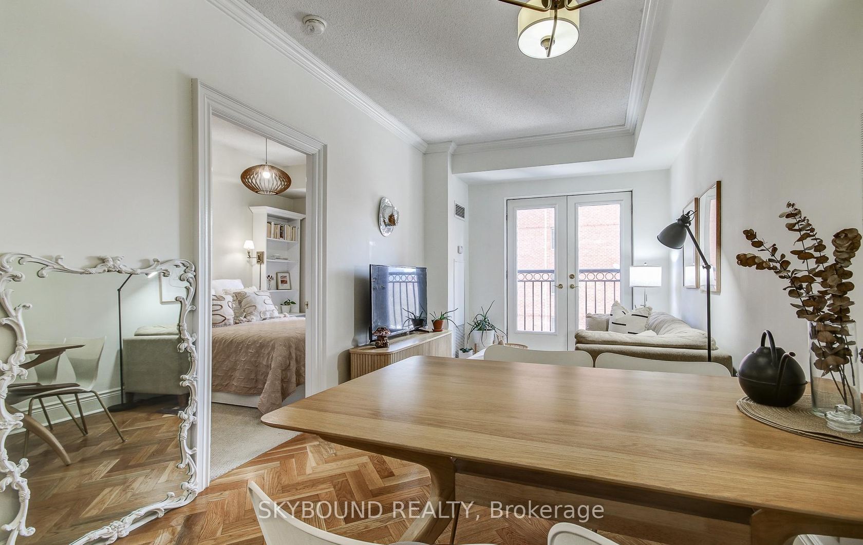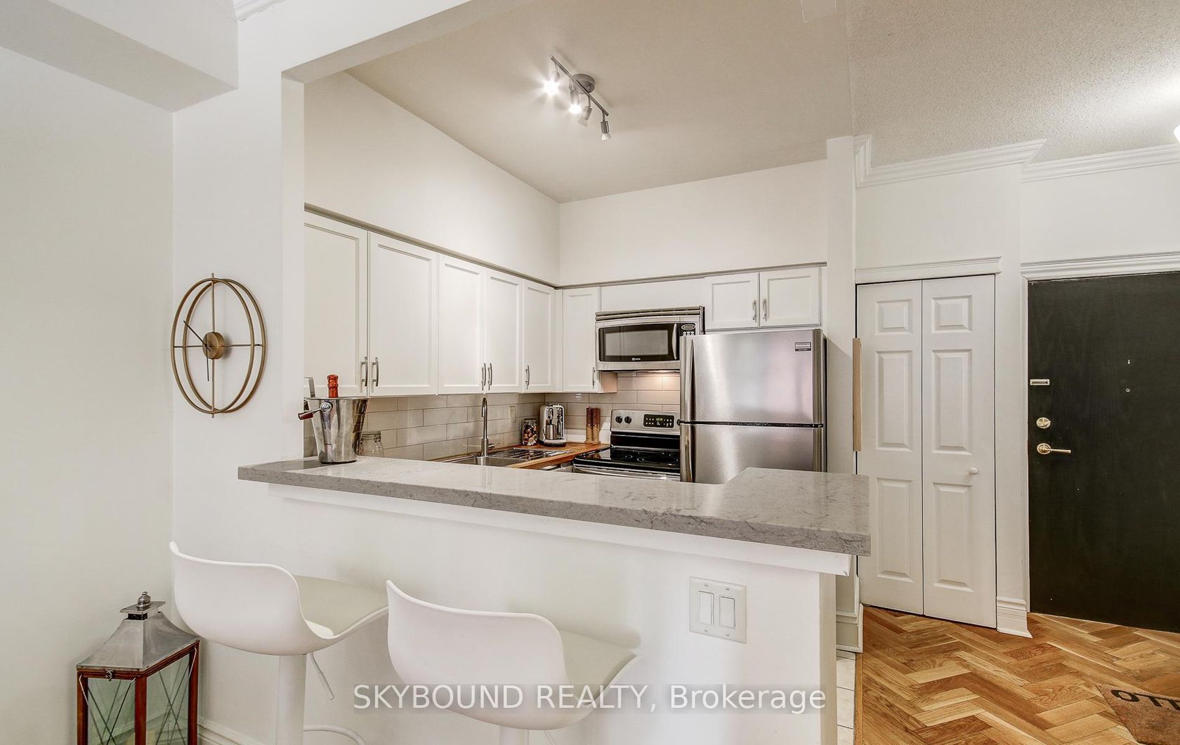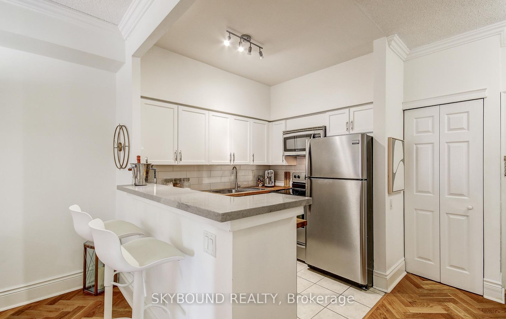 Welcome to the French Quarter! Parisian-inspired classic charm, literally three blocks from St Lawrence Market! This perfect 1-bedroom suite **with parking** has the layout we all dream of - 9' ceilings, an actual kitchen with butcher-block and quartz counters, full-size stainless steel appliances, and plenty of prep space...Just what you need to cook up a storm! There's ample room for a real dining table to host those French-themed dinner parties, a living area that comforta…bly fits a large sofa with room to spare, and a great-sized bedroom (with a real door) with custom-built bookcases and a triple-width deep closet. Did you see that classic clawfoot tub in the bathroom? How about those incredible blonde oak herringbone hardwood floors? And the custom crown molding? Add to that, two South-facing Juliette balconies (with custom retractable screens), a new full-size LG WashTower laundry set, and plenty of storage throughout. Boutique living in this quiet, 71 unit building spread over just 10 floors, means almost no waiting for an elevator. Plus a great gym, large roof deck with BBQs, party room, and visitor parking. A super quick stroll to St Lawrence Market just down the street, a block from St James Park, walking distance to the Financial District, Eaton Centre, King and Queen streetcars right around the corner, and very easy access to the DVP and Gardiner for when you want to get away. Oh, and Mystic Muffin is literally across the street (if you know, you know), and Fahrenheit Coffee is right downstairs. **Hydro/heat/water all included!** **And your own parking spot!** --> Fun fact: The French Quarter is the first condo in Canada to perform a sustainable heating/cooling technology retrofit by replacing its chiller and gas boiler with air-to-water heat pumps, reducing its carbon emissions by approximately 60%, with an Energy Star rating of 94/100!