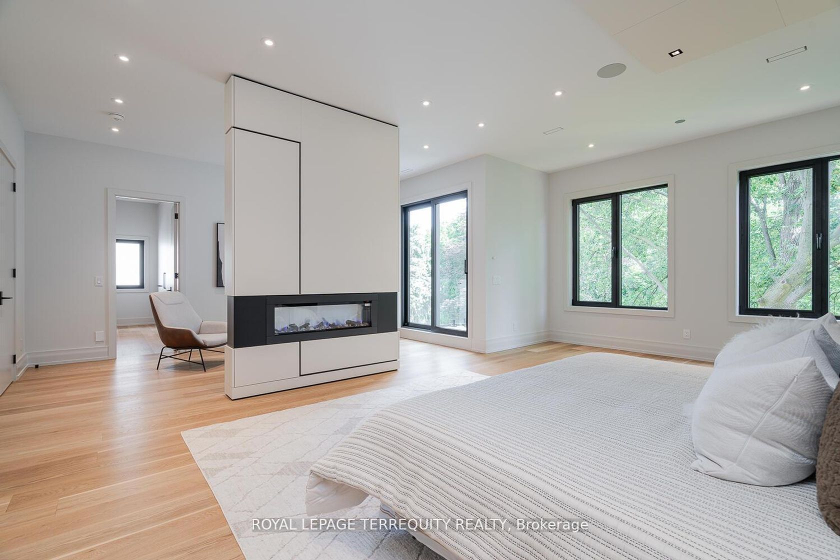 A brand new house that redefines luxury living in Newtonbrook East. Prepare to be swept off your feet by this showstopping, designer finished residence in one of the most coveted neighbourhoods with spanning over 6500 sqft of flawless floorplans (bsmt area included). This contemporary architectural gem blends sophistication, comfort and functionality. This home offers privacy and serene, uninterrupted views from the moment you arrive-greeted by its striking modern facade and elegant flagstone steps. Inside you will find an expansive, light-filled layout w/soaring 11' ceilings on main plus 10' ceilings upstairs and 9' in basement, offering a grand, airy feel. Natural hardwood floors on main & 2nd & designer finishes and elegance to every space. The chef-inspired kitchen features Natural C/T, outfitted with Miele appliances, custom cabinetry, oversized island & huge eat-in area and open-concepted family area, anchored by a gas fireplace, is flooded with natural light from enormous window & glass door that overlook the lush backyard oasis creating a perfect setting for everyday living & entertaining. Versatile main floor office provides a quiet, sophisticated workshop ideal for all kinds of professionals. The serene, oversized primary bedroom is a peaceful retreat, featuring abundant light, 10' ceilings, luxurious 5 pcs ensuite & generous W/I closet and lovely lounge with electrical fireplace. There are 3 ensuite bedrooms with lavish baths and laundry room in 2nd floor that is powered by a separate heating and cooling system. Heated floor basement with a huge wet bar and steam fireplace, heated W/O to backyard. A high-quality elevator ensures smooth and convenient access between the floors of this building. This home is a statement of style, quality & international design. Be noticed property Tax is not assessed yet as a brand new property.