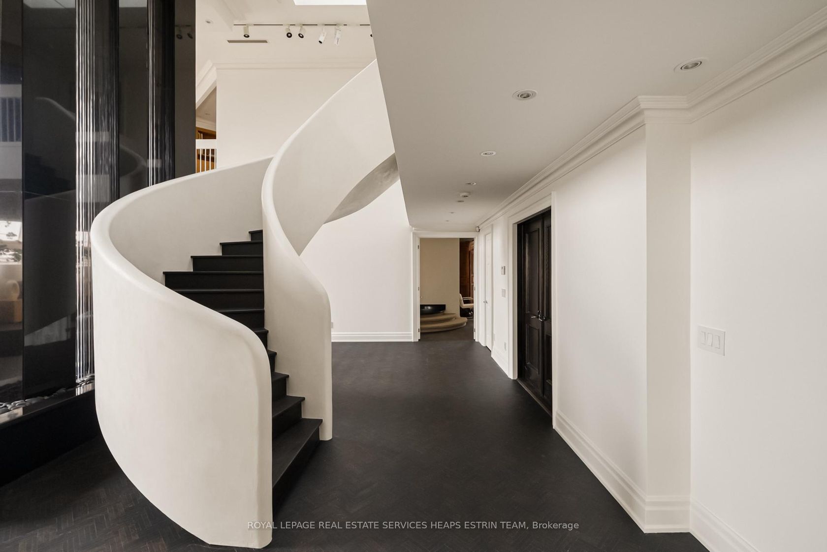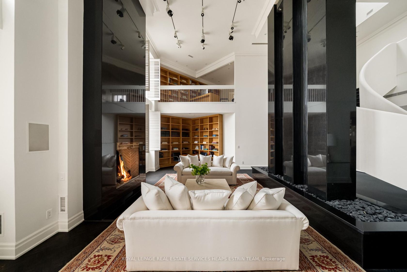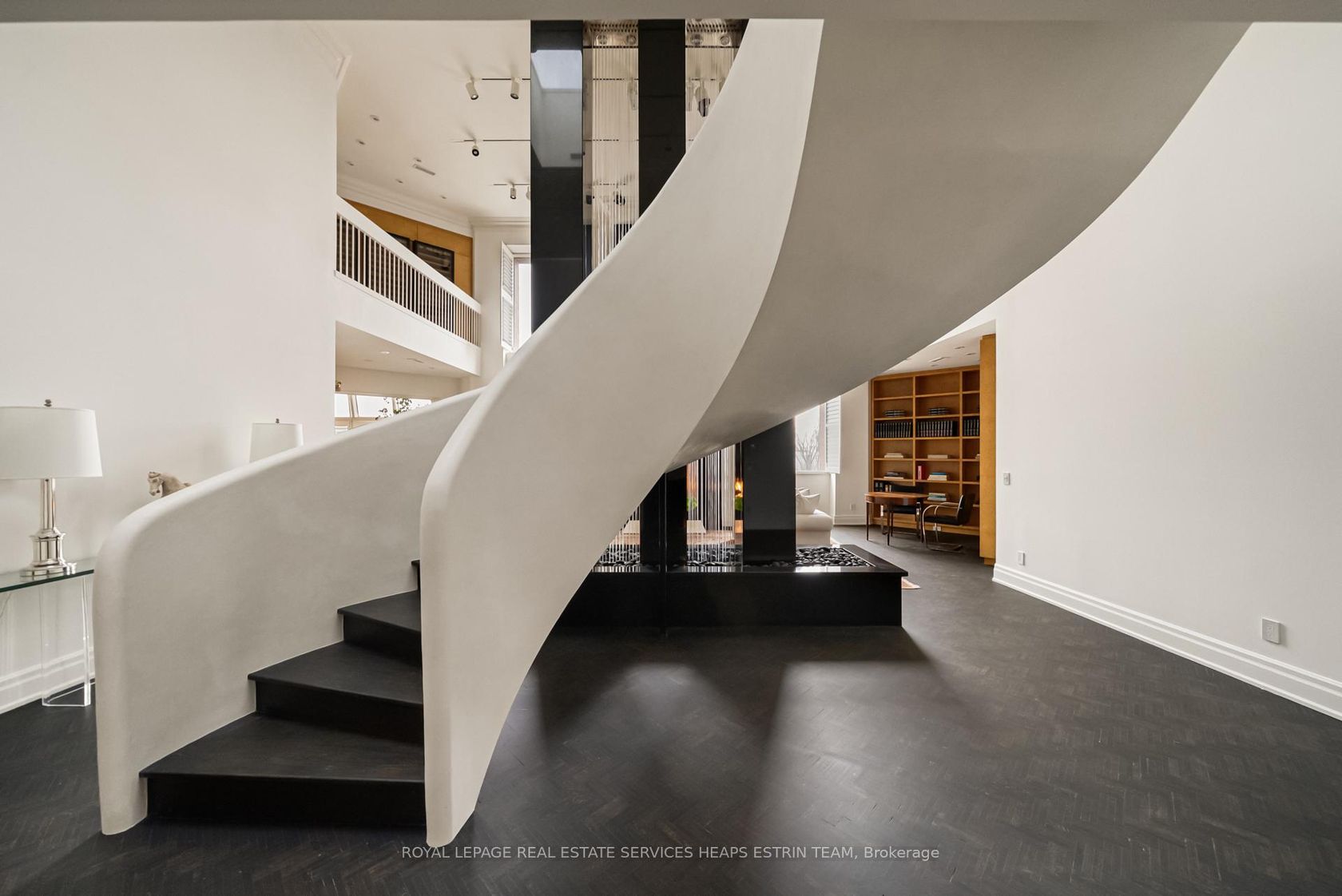 There are very few penthouses in the city that offer this level of scale and architectural presence while still feeling like a private residence. This is one of them. Spanning nearly 5,000 square feet across two levels, this one of a kind residence crowns an intimate 16 suite boutique building in the heart of South Hill, conceived around this exceptional penthouse. With a layout more akin to a detached home, it offers a level of privacy rarely found in Toronto. A sculptural w…hite staircase in Venetian plaster anchors the refined, modern interior, while matte herringbone floors add warmth throughout. The scale is striking, with a great room featuring 25 foot ceilings and an open flame fireplace, ideal for both entertaining and everyday living. Expansive windows fill the space with natural light, and the dining area and chef's kitchen connect seamlessly. A family room and main floor primary suite offer comfort and privacy. Upstairs, a library with fireplace and wet bar creates a destination space, alongside an additional bedroom suite and a separate office that could convert to a third bedroom. Renderings have also been prepared to illustrate the potential to convert a portion of the interior space into a private New York style terrace, offering a compelling vision of how outdoor living could be seamlessly integrated into the home, an increasingly rare luxury in this setting. With four car parking, concierge, and amenities including a pool and sauna, every detail is considered. Set near Yorkville, St. Clair West, and Forest Hill, the location offers exceptional convenience. But what truly sets this residence apart is its rarity, a unique opportunity to acquire nearly 5,000 square feet in a boutique setting, at a price per square foot that is difficult to replicate in today's market. Opportunities of this calibre are few and far between.