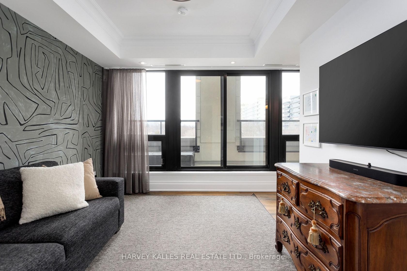 Welcome to the prestigious Residences at One Forest Hill, an exclusive boutique building offering refined living, exceptional privacy, and timeless design in one of Toronto's most distinguished neighbourhoods. Suite 701 is a rare, extensively upgraded corner residence by Schwartz &Ko.Interior Design. Offering 2,619 sq ft with 2 bedrooms, office, 3 bathrooms & 2 terraces totalling 570 sq ft with North & East exposure. Includes 2 parking & 1 locker. Custom reimagined layout des…igned for maximum functionality, storage and everyday luxury. Situated on a highly desirable floor with only 3 suites, offering an elevated level of privacy. Open-concept living and dining areas ideal for entertaining & hosting family gatherings, anchored by a double-sided gas fireplace with floor-to-ceiling book-matched marble. Designer kitchen with Sub-Zero & Wolf appliances, additional Sub-Zero fridge & wine cooler, oversized eat-in island, custom walk-in pantry, and built-in bar/glass cabinets. Family room features custom media cabinetry, upgraded millwork and built-in sound system. Private office with French-style glass double doors, custom built-ins & desk with designer finishes. The primary suite is a true retreat with a walkout to 2nd terrace, motorized blinds, custom millwork, spa-inspired his & hers ensuites, steam shower, and a large walk-in closet w/ a Marble centre island. Sizable second bedroom offers floor-to-ceiling windows w/ terrace access & a large walk-in storage closet. The 4-piece guest bathroom features designer wallpaper, a custom vanity with Caesarstone counter & shower tub combo. Equally impressive is the outdoor living with a rare double height terrace exclusive to this level, complete with dual gas lines for BBQ and heater. Full laundry room with Asko washer & dryer, built-ins and sink. Foyer with large walk-in storage. Hotel-style amenities include 24-hr concierge & security, valet, porter service, gym, lounge W/ catering kitchen, party room & visitor parking.