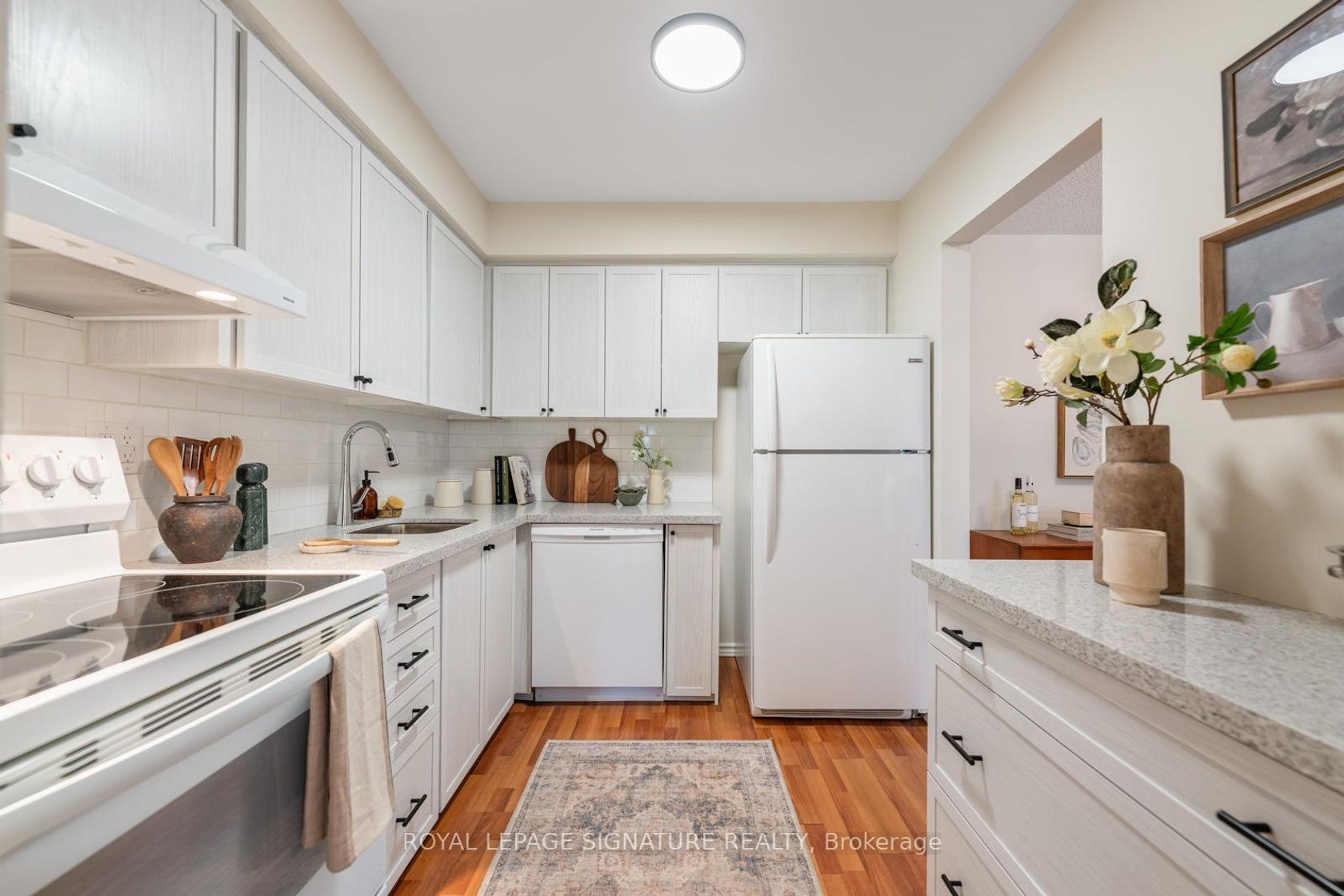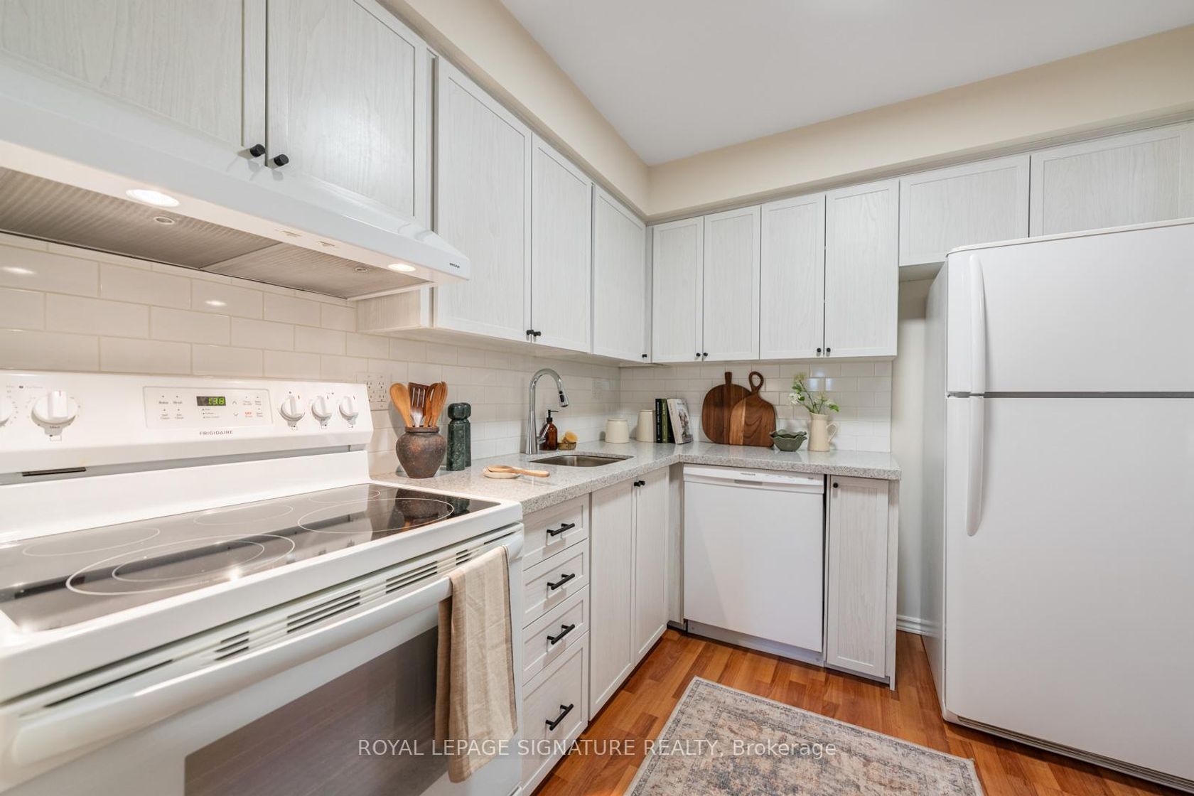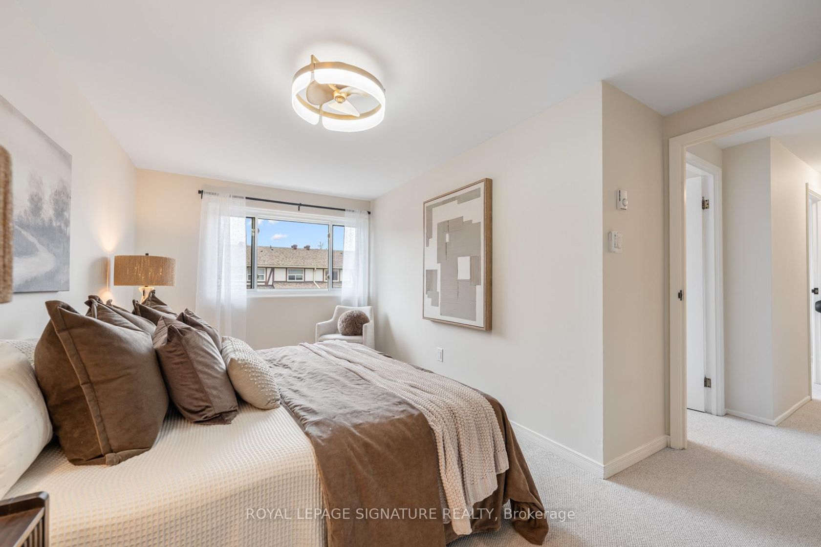 Say HELLO to The Fernways! This beautifully renovated townhouse is a rarely offered end unit and enjoys the convenience of a built-in garage and parking for two cars. Extensively updated throughout, the modern kitchen features quartz countertops, abundant cabinetry, and generous prep space-perfect for everyday living and entertaining. A main-floor 2-piece bath adds convenience, while all bathrooms have been stylishly upgraded to today's high standards, with new vanities and c…omfort-height toilets. Freshly painted in a calming neutral palette, the home features upgraded hardware and contemporary light fixtures. New broadloom on the stairs and second floor adds warmth and comfort underfoot. The spacious primary bedroom easily accommodates a king-sized bed and boasts a massive wall-to-wall closet. Two additional well-proportioned bedrooms each feature double closets, ideal for family living or home office needs. Recent upgrades continue with all new windows and patio doors (2026), as well as new electric baseboards on the main and second levels, helping to improve energy efficiency and keep hydro costs down. Low maintenance fees include Bell FIBE internet, water, sewage, and garbage collection. Enjoy the ease of professionally maintained common grounds, including snow removal. Located in a quiet, family-friendly neighbourhood, this home is within walking distance to schools, parks, andshopping. A convenient pedestrian pathway leads to Finch Avenue with direct transit access to the subway. Close to Highways 400 and 401 for effortless commuting. An excellent pre-listing home inspection is available upon request. Truly move-in ready-nothing to do!