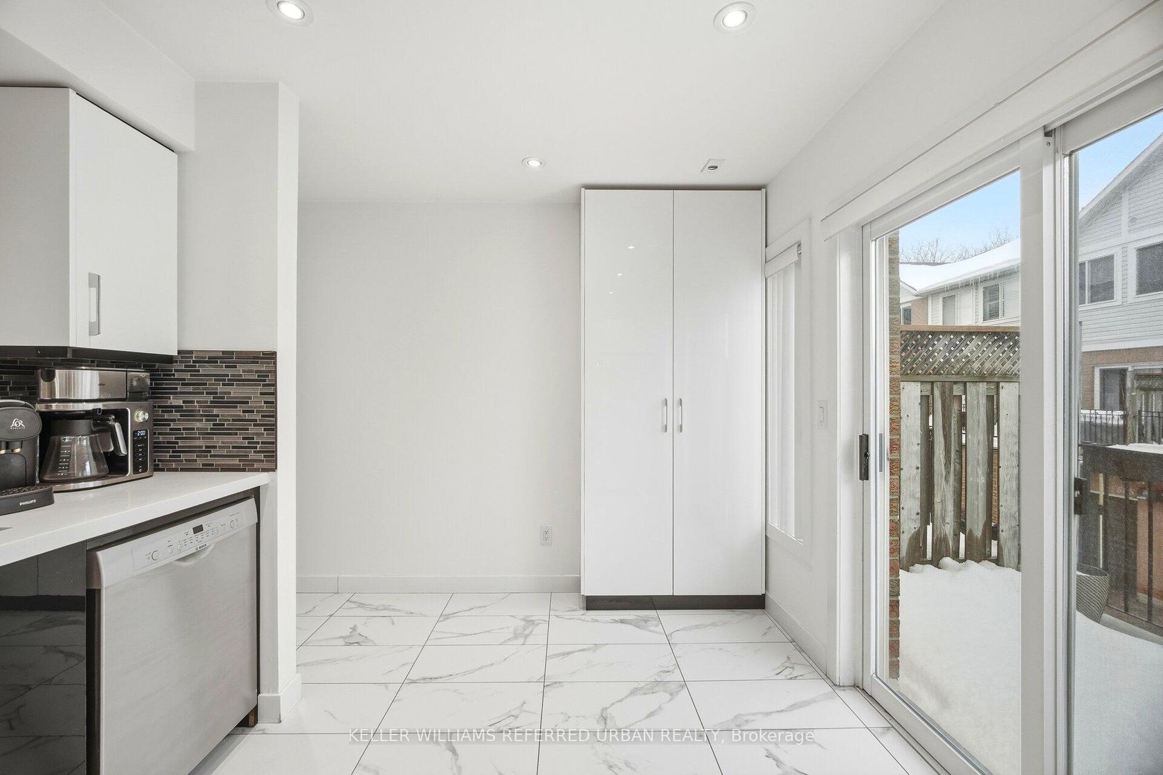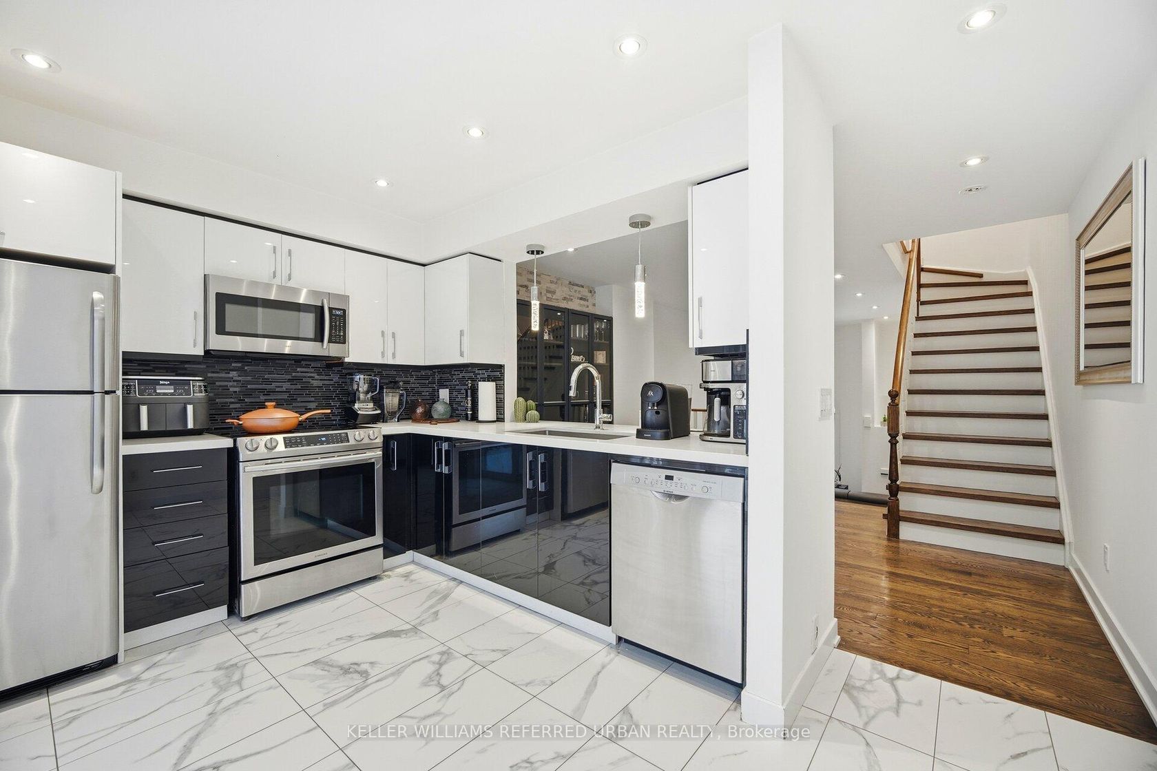 Spacious, updated two-storey townhome offering a practical layout with a walk-out basement and clean, modern finishes throughout. The main level features an oak staircase, engineered hardwood flooring, and cathedral ceilings. The kitchen is sleek and functional, with quartz countertops, a contemporary backsplash, and a dedicated breakfast area that works well for everyday living. Upstairs, the primary includes his-and-hers closets and a 4-piece ensuite, offering plenty of storage and privacy. Additional highlights include convenient direct access to the garage from inside the home and ample storage throughout. Situated within a secure, well-managed community offering 24-hour gated security and concierge services, this home is ideally located just steps to TTC transit, shopping, dining, and everyday conveniences-an exceptional opportunity for turnkey living in Scarborough.