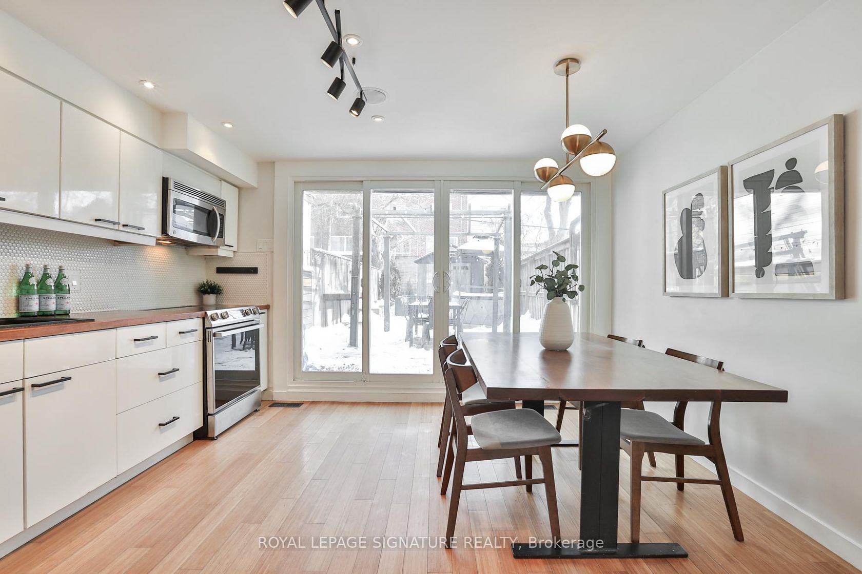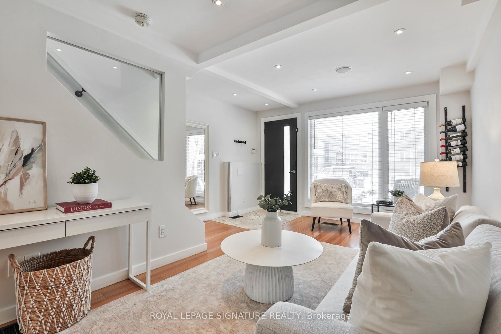 Your "Rhodes" to café days & beach boardwalk nights. Set in one of Leslieville's most coveted pockets, this charming, tight-knit community offers exceptional walkability to schools, transit, bike lanes & even the beach! 37 Rhodes makes an immediate impression with standout curb appeal & thoughtful updates. Inside, warm bamboo flooring runs throughout the home, while new front windows (2025) bathe the space in natural sunlight & pot lights brighten every corner. The tiled ent…ryway offers a polished yet practical welcome, while dual closets keep coats & shoes neatly tucked away with one functioning perfectly as a pantry to keep essentials within reach. A rare & highly sought-after main-floor powder room adds everyday convenience you don't often find in Leslieville. The living room strikes the perfect balance with an open-concept layout that flows naturally into the dining area & kitchen. Built-in surround sound on the main floor & exterior elevates hosting & everyday living. At the rear of the home, the kitchen truly shines with brand-new stainless steel appliances (2026), white cabinetry, butcher block countertops, matte black hardware & a penny tile backsplash that adds warmth & personality. Bathed in natural light from the full-glass back wall & sliding door (2022), the bright eat-in dining allows for seamless indoor/outdoor living, BBQing & entertaining. A skylight over the staircase brightens the entire upper level, while the generously sized 4-piece bathroom features its own skylight & modern finishes. A versatile den adds flexible space, perfect for working from home, a spin on the Peloton or creative pursuits. The primary bedroom offers a true retreat with vaulted ceilings & room for a king-size bed & two closets for optimal livability. The second bedroom is equally well-sized, fitting a queen bed with room to spare. This is peak Leslieville lifestyle: walkable, welcoming & close to the beach. This Rhodes leads home.