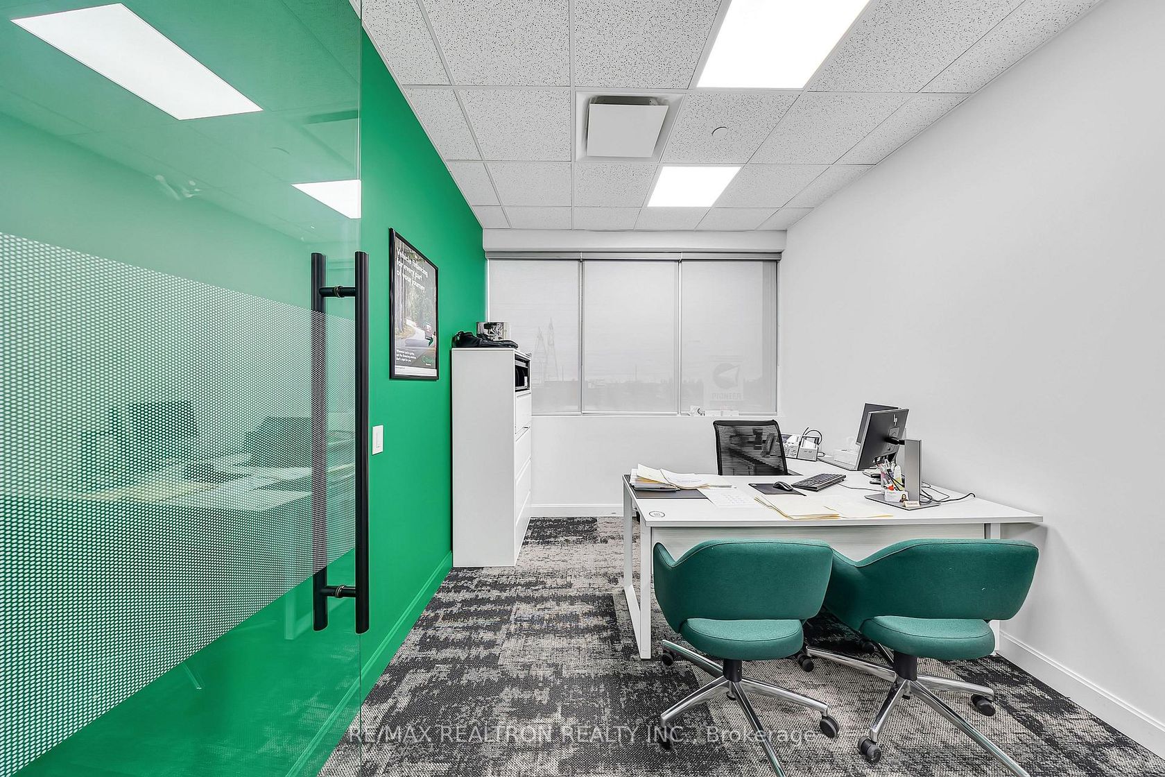 An exceptional opportunity to elevate your business in this 2,800 sq. ft. fully finished, modern office space, designed for companies that value image, functionality, and first impressions. Wrapped in floor-to-ceiling glass, this striking office is flooded with natural light and offers expansive views that create an inspiring, high-performance work environment. The layout features a large, upscale reception area that immediately sets a refined tone for clients and visitors, nine private glass offices that balance privacy with openness, a statement boardroom ideal for executive meetings and presentations, and a sleek, modern kitchen for staff convenience and collaboration. Every detail has been thoughtfully curated to reflect a downtown-caliber aesthetic, delivering a clean, sophisticated atmosphere rarely found in the area. This turnkey space is perfectly suited for professional firms, corporate headquarters, tech companies, or creative teams seeking an office that reinforces their brand and supports growth. A rare blend of modern design, functionality, and prestige, this is more than just an office-it's a space that makes a statement and positions your business for success.