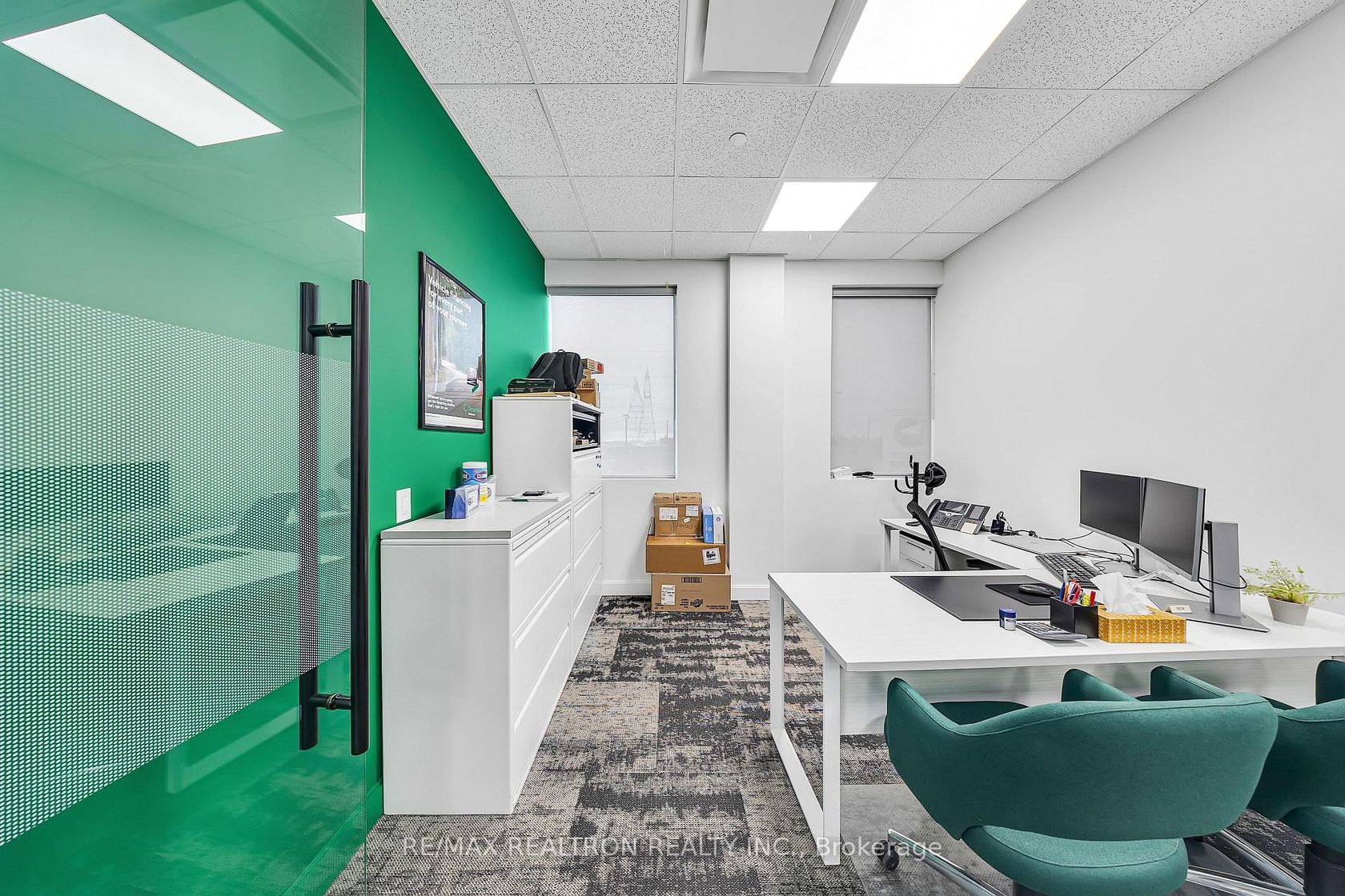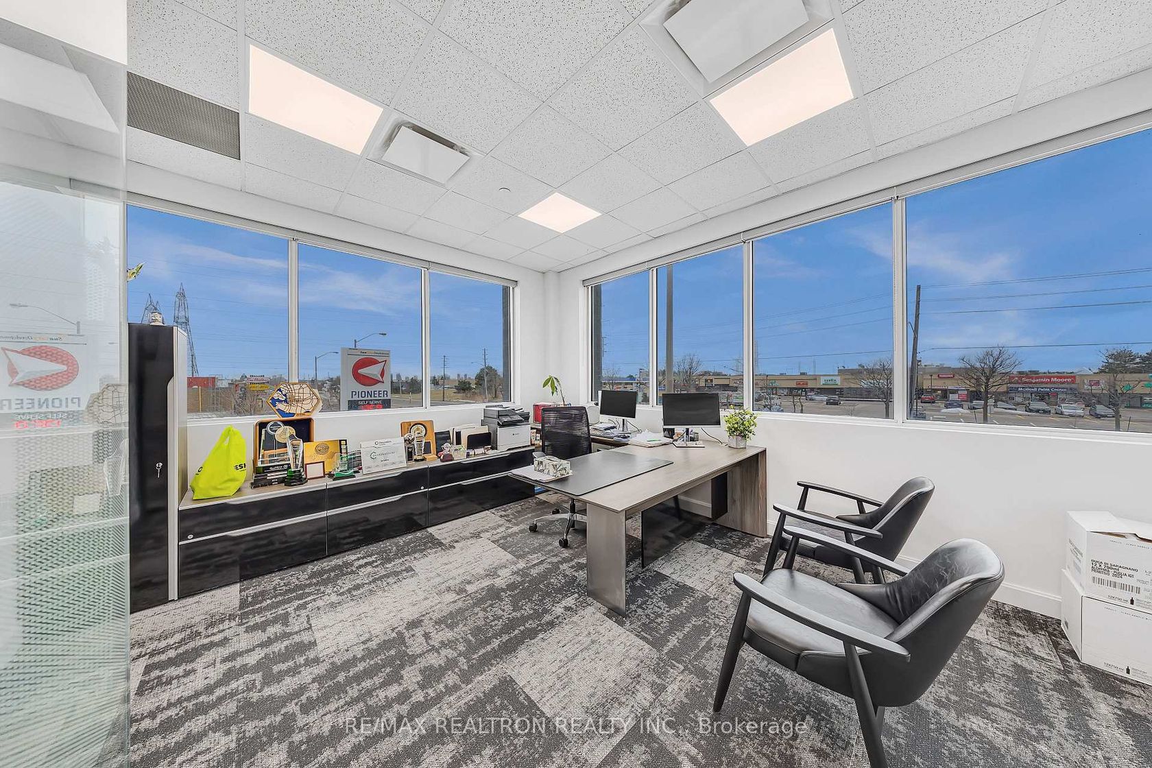 An exceptional opportunity to elevate your business in this 2,800 sq. ft. fully finished, modern office space, designed for companies that value image, functionality, and first impressions. Wrapped in floor-to-ceiling glass, this striking office is flooded with natural light and offers expansive views that create an inspiring, high-performance work environment. The layout features a large, upscale reception area that immediately sets a refined tone for clients and visitors, n…ine private glass offices that balance privacy with openness, a statement boardroom ideal for executive meetings and presentations, and a sleek, modern kitchen for staff convenience and collaboration. Every detail has been thoughtfully curated to reflect a downtown-caliber aesthetic, delivering a clean, sophisticated atmosphere rarely found in the area. This turnkey space is perfectly suited for professional firms, corporate headquarters, tech companies, or creative teams seeking an office that reinforces their brand and supports growth. A rare blend of modern design, functionality, and prestige, this is more than just an office-it's a space that makes a statement and positions your business for success.