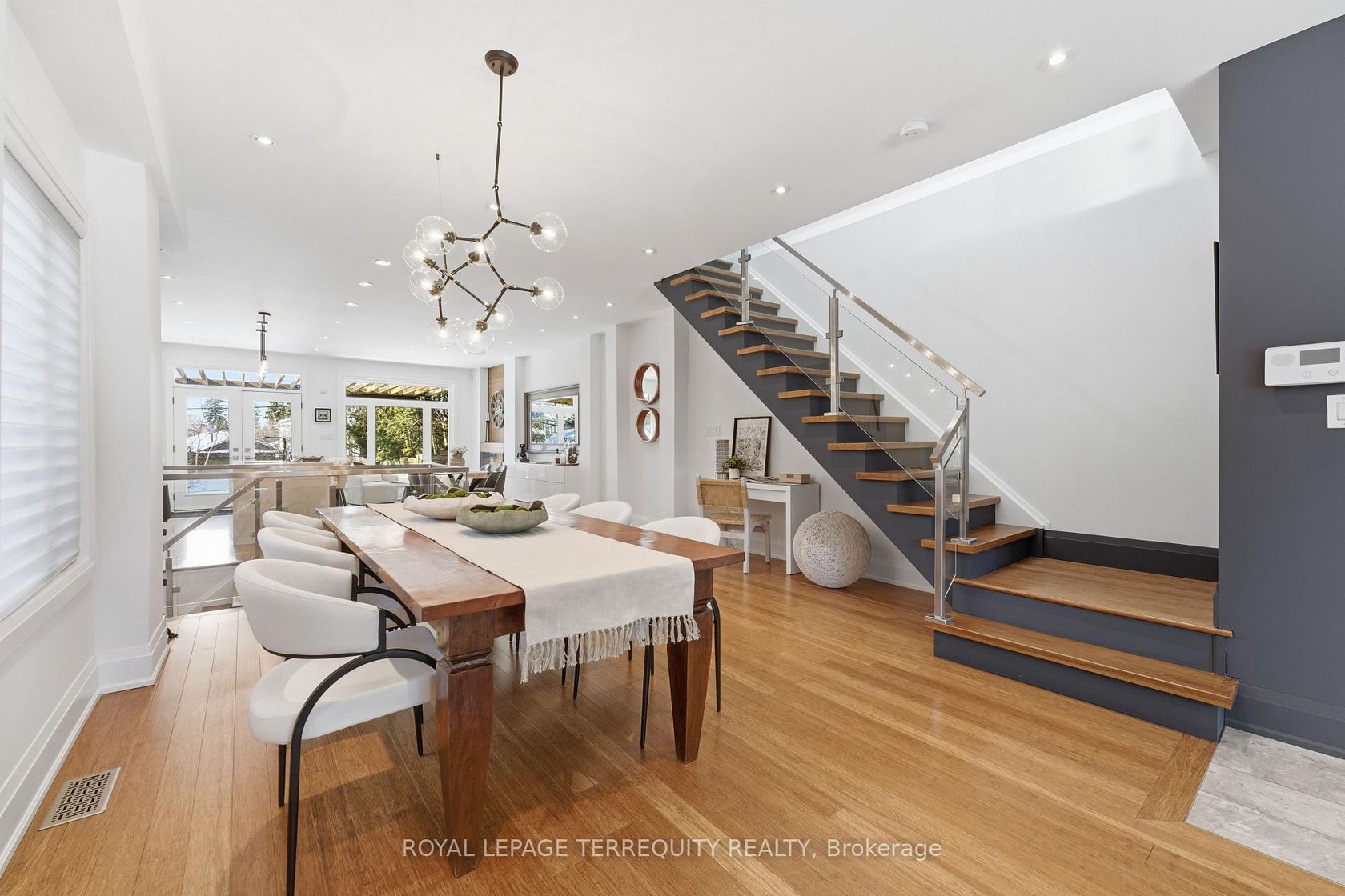 Tucked away on a quiet, leafy street where Queensbury softly gives way to the prestige of the Hunt Club, 52 Queensbury Ave is a rare city retreat - where birdsong replaces traffic and nature feels woven into the architecture. This modern, detached home is both grounded and elevated, offering a life that feels calm, connected, and beautifully lived. Thoughtfully reimagined, the main floor unfolds in an airy open-concept design balancing effortless entertaining with intimate fa…mily moments. Custom cabinetry and refined finishes anchor the space, while generous windows frame the charming streetscape - sunlight filtering in and a sense of ease settling over every room. Upstairs, the serene primary retreat features a walk-in closet and private ensuite with freestanding tub and skylight - an inviting escape at day's end. Two additional well-proportioned bedrooms offer large closets and expansive windows, while a skylight brightens the upper level. The fully finished lower level, with potential for a separate entrance, offers flexibility ideal - as an in-law suite, home office, or income opportunity. Out back, the impressive 180-ft deep lot reveals a thoughtfully designed outdoor escape. A custom wood-covered pergola and spacious stone deck set the stage for long al fresco dinners, candlelit soirées, and effortless BBQs from afternoon into evening. The depth of the lot offers endless possibilities - cabana, hot tub, gazebo, or garden retreat-your private sanctuary waiting to be imagined. With lush landscaping and total privacy, it's cottage living without leaving the city. Just steps away is Lynndale Parkette - the neighbourhood's best-kept secret and community heart. Known locally as "the secret park," it hosts scavenger hunts, playdates, shared BBQs, and winter hockey under open skies. Wander to charming cafés and shops, explore nearby parks, the beach, or the Scarborough Bluffs. This isn't just a home - it's a lifestyle defined by ease, connection, and quiet magic.