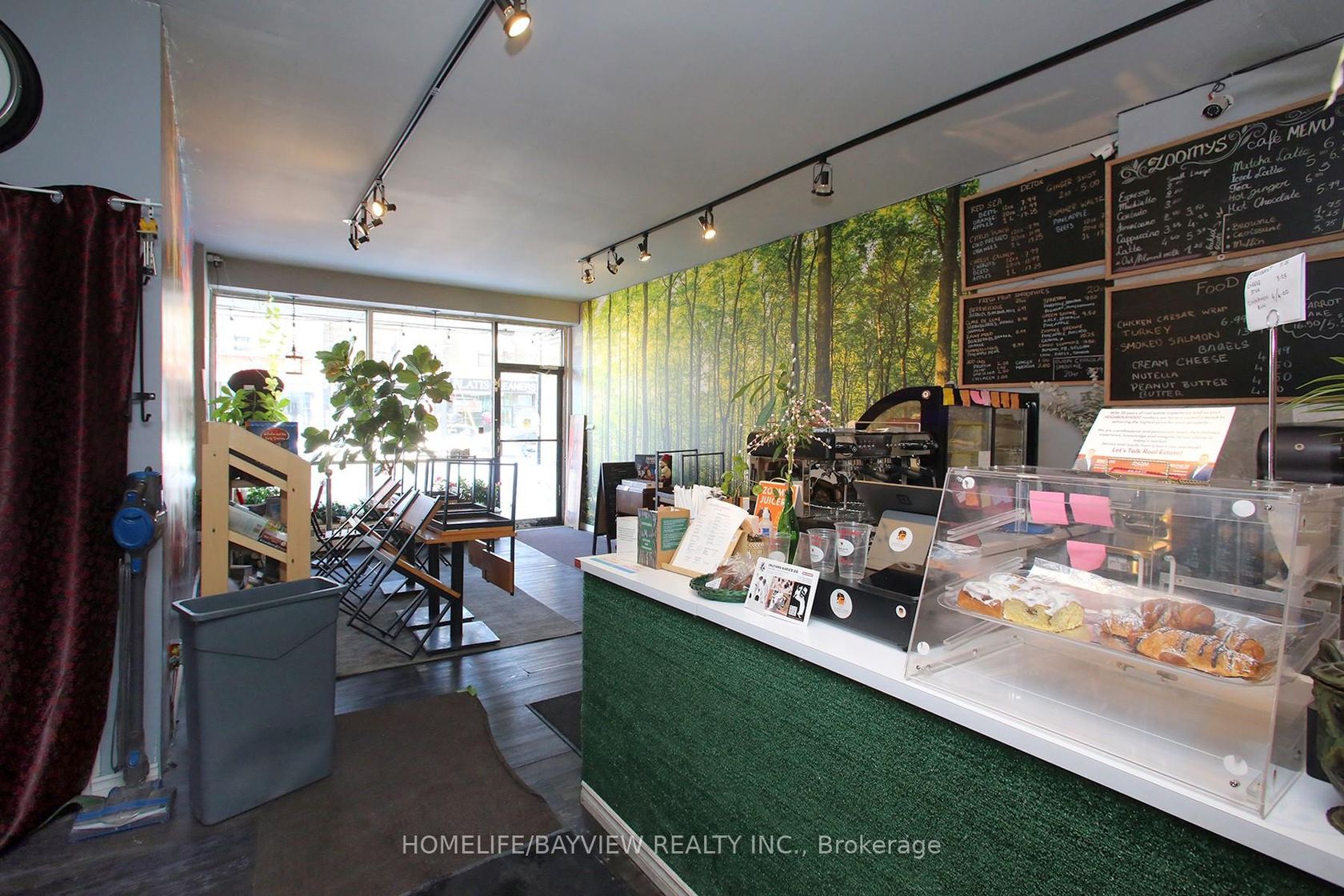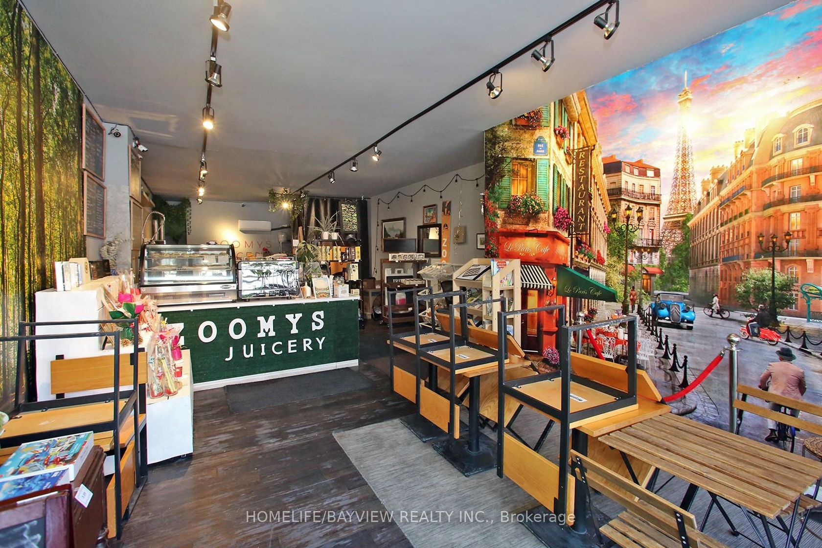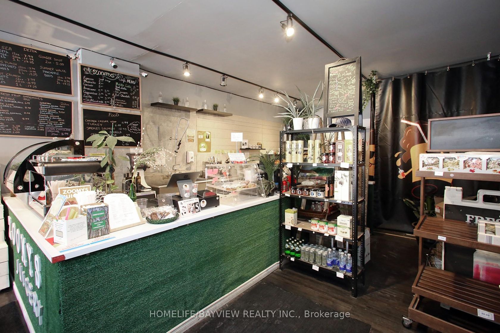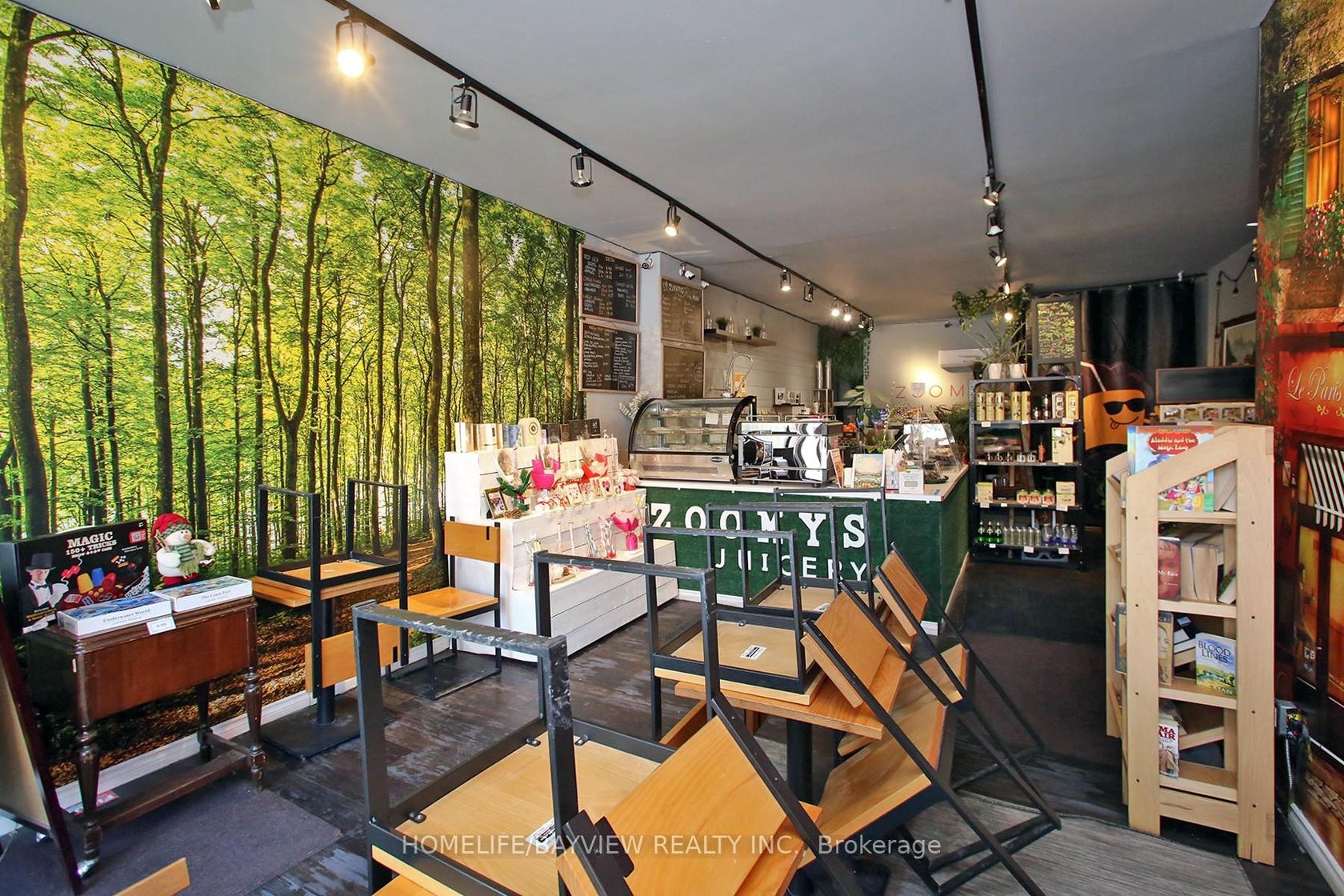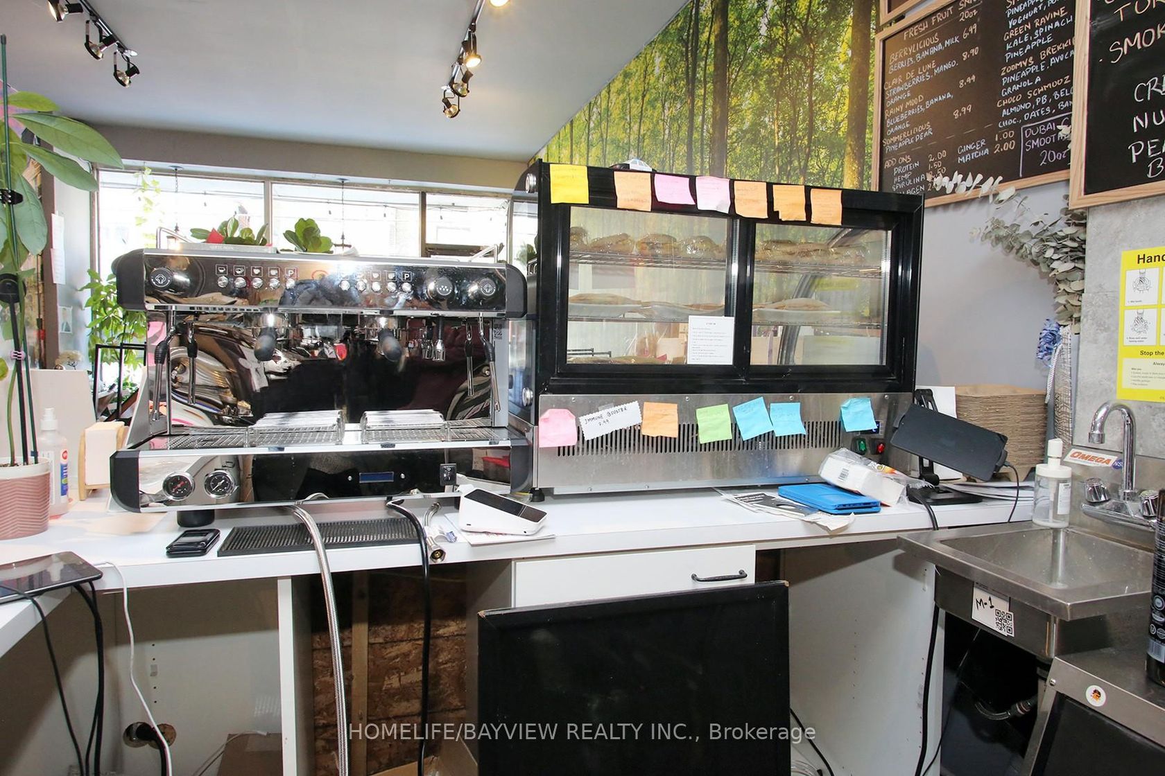 Established and busy juice shop located in prime area with exposure on busy Pape Ave. Surrounded by homes and businesses - shop specializes in fresh juices, smoothies, specialty coffees & teas, pastries, snacks, sandwiches, wraps and salads. Fully-equipped business with lots of loyal clientele. Don't miss this opportunity to be your own boss. Very trendy and beautiful decor with ample customer seating. Very strong sales. Turn-key operation! Short hours: 9am-8pm.