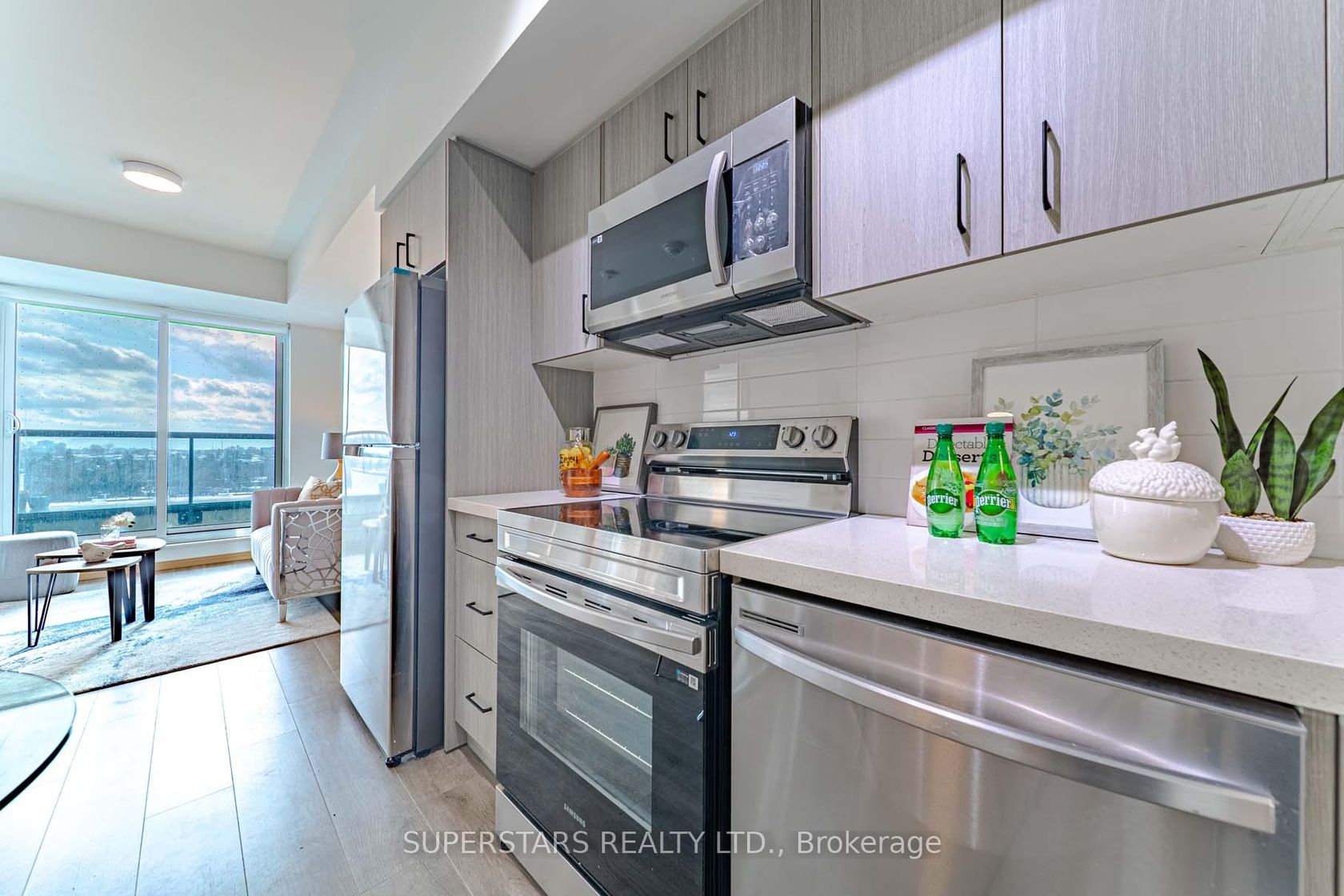 Bright And Stylish 1+1 Unit Featuring A Spacious Open-Concept Layout And Soaring 9Ft Ceilings. The Living Room Extends Seamlessly To A Private Balcony With An Unobstructed View, Perfect For Relaxing Or Entertaining. The Contemporary Kitchen Is Equipped With Stainless Steel Appliances And Backsplash. A Generously Sized Den With A Closet Offers The Versatility To Function As A Second Bedroom Or Home Office. Enjoy Excellent Amenities, Including Gym, Party Room, Library, Visitor …Parking, And Exercise Room. Ideally Located Just Steps To Public Transit, Plazas, And Minutes From Hwy 401, Supermarkets, Shopping, Banks, Golf, Schools, Parks, And More.