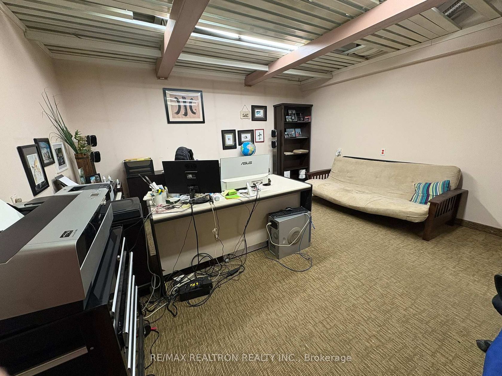 *Well Established Industrial Complex in demanded area *Easy Access to Pedestrian Traffic *Approx. 1,050SF on Ground Floor Plus over 850SF of Mezzanine *Extra Storage/Workshop of Approx. 300SF at Rear with a Drive-in Door *9' Ceiling on Main, Close to 8' Ceiling on Mezzanine *2 washrooms and One shower Room *One 2-ton and One 5-ton rooftop HVAC units for Office *All finished Rooms feature either boardroom or High-end Vinyl Flooring *This Property is most suitable for those but… not limit to Design Studio, Sign Maker, Architecture House, Building designer's Office, Renovation Company, Online Business and Trading Company.
