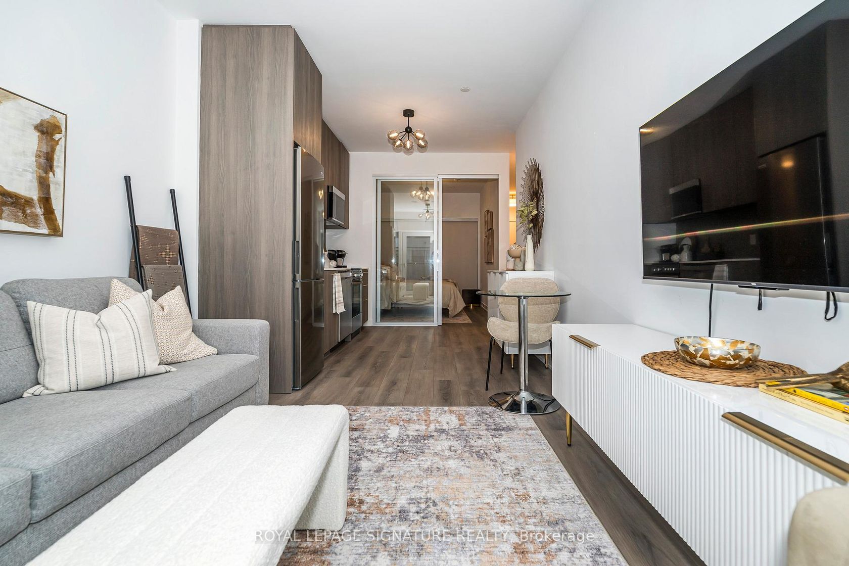 Welcome to The Narrative Condo. A Beautiful brand new never lived in 1 Bedroom plus 1 Bathroom Condo. This layout is functional, bright, open concept with no wasted space. A sleek kitchen with modern finishes. This one is like no other as it is sold furnished. Upgraded lights, new furniture, moulding in hallway.It is ready for you to move in or lease to tenant as a furnished unit. Amenities include state of the art fitness room, party room, games room, yoga studio 24/7 concie…rge,Plenty of visitor parking. The beach, Waterfront, parks, camping, trails are just minutes away as well as TTC, Go Trains, 401, and U of T.