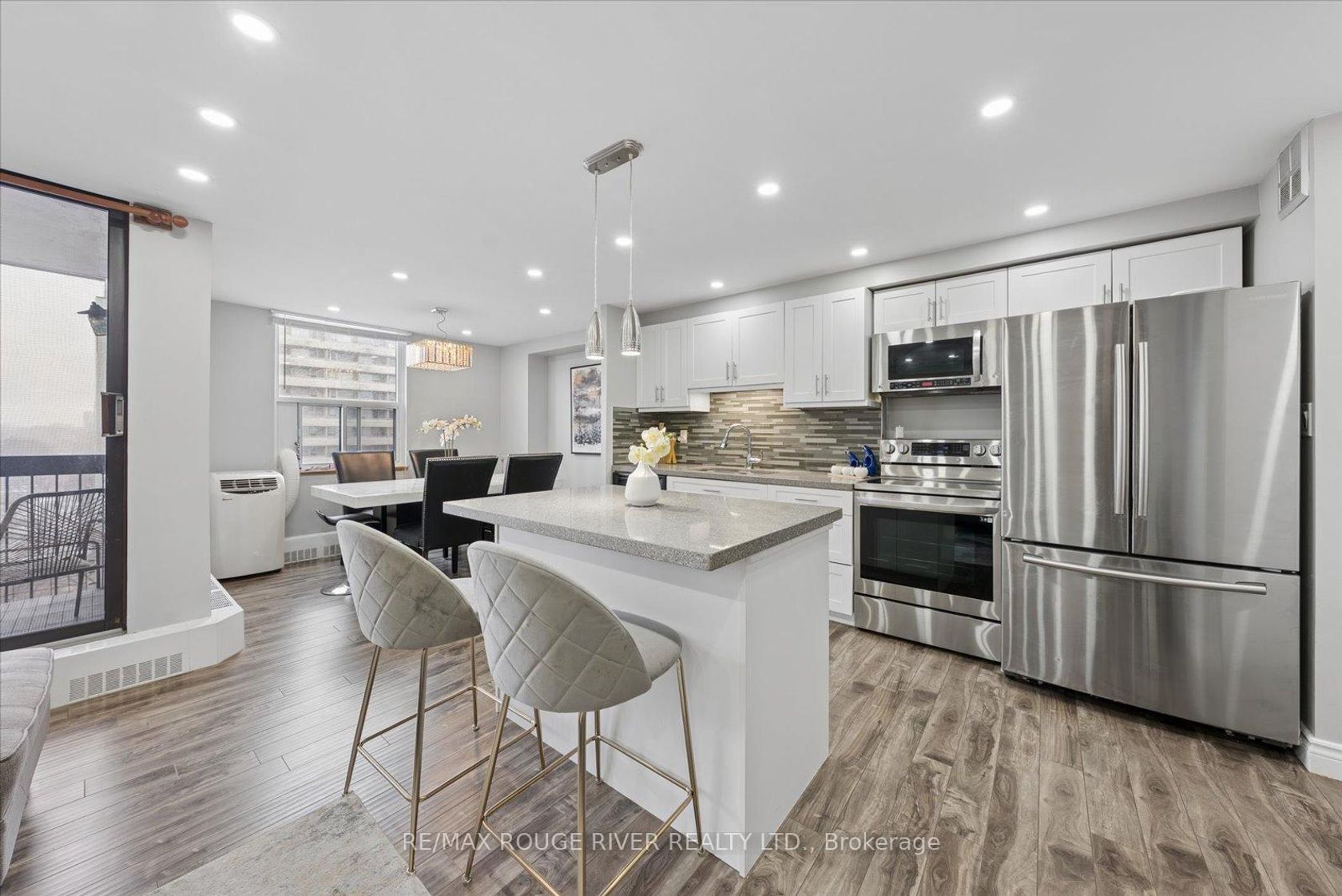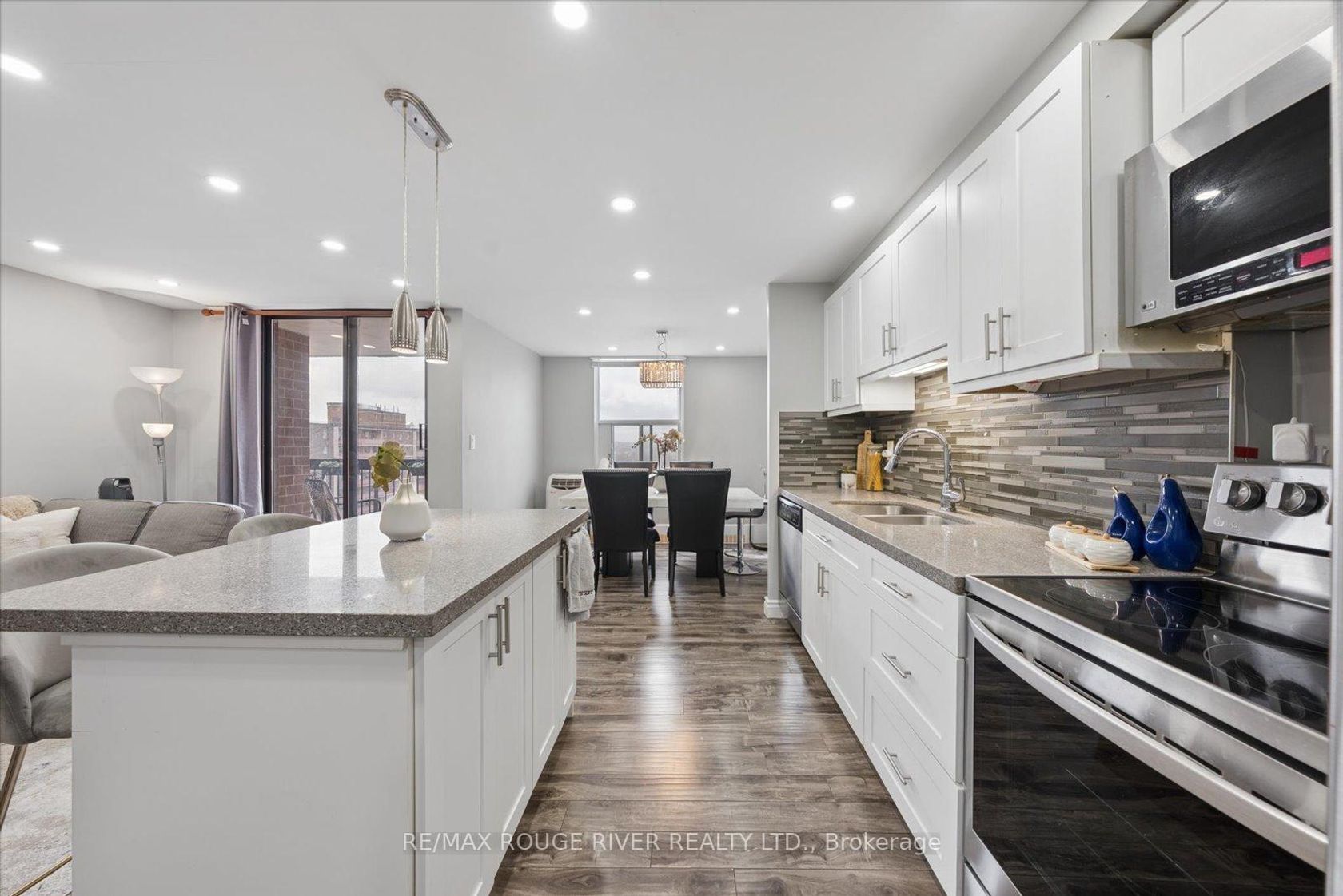 Welcome to Unit 907 at 90 Ling Road - A Beautifully Updated Home in a Prime West Hill Location! This bright and spacious (1250 sq ft) suite features a thoughtfully designed open-concept layout perfect for modern living and entertaining. The upgraded kitchen showcases modern finishes, ample cabinetry, and a centre island ideal for casual dining and hosting guests. Both kitchen and bathrooms have been tastefully renovated, offering stylish upgrades and move-in ready convenience. Unwind on the south-east facing balcony, where beautiful summer views come alive as the surrounding trees bloom, creating a peaceful, green outlook.The unit also features in-suite laundry and includes one owned parking space for added convenience.Residents of this well-maintained building enjoy an impressive selection of amenities, including an outdoor pool, gym, sauna, party/meeting room, tennis courts, visitor parking, and beautifully maintained common areas, providing comfort and lifestyle all in one place.Ideally located at Morningside Avenue and Lawrence Avenue East, this condo offers exceptional convenience with shopping, grocery stores, parks, schools, TTC transit, and quick access to Highway 401 all nearby. Just minutes to the waterfront trails, University of Toronto Scarborough campus, and everyday essentials - everything you need is within easy reach.A fantastic opportunity for first-time buyers, downsizers, or investors looking for space, upgrades, and a highly convenient location.