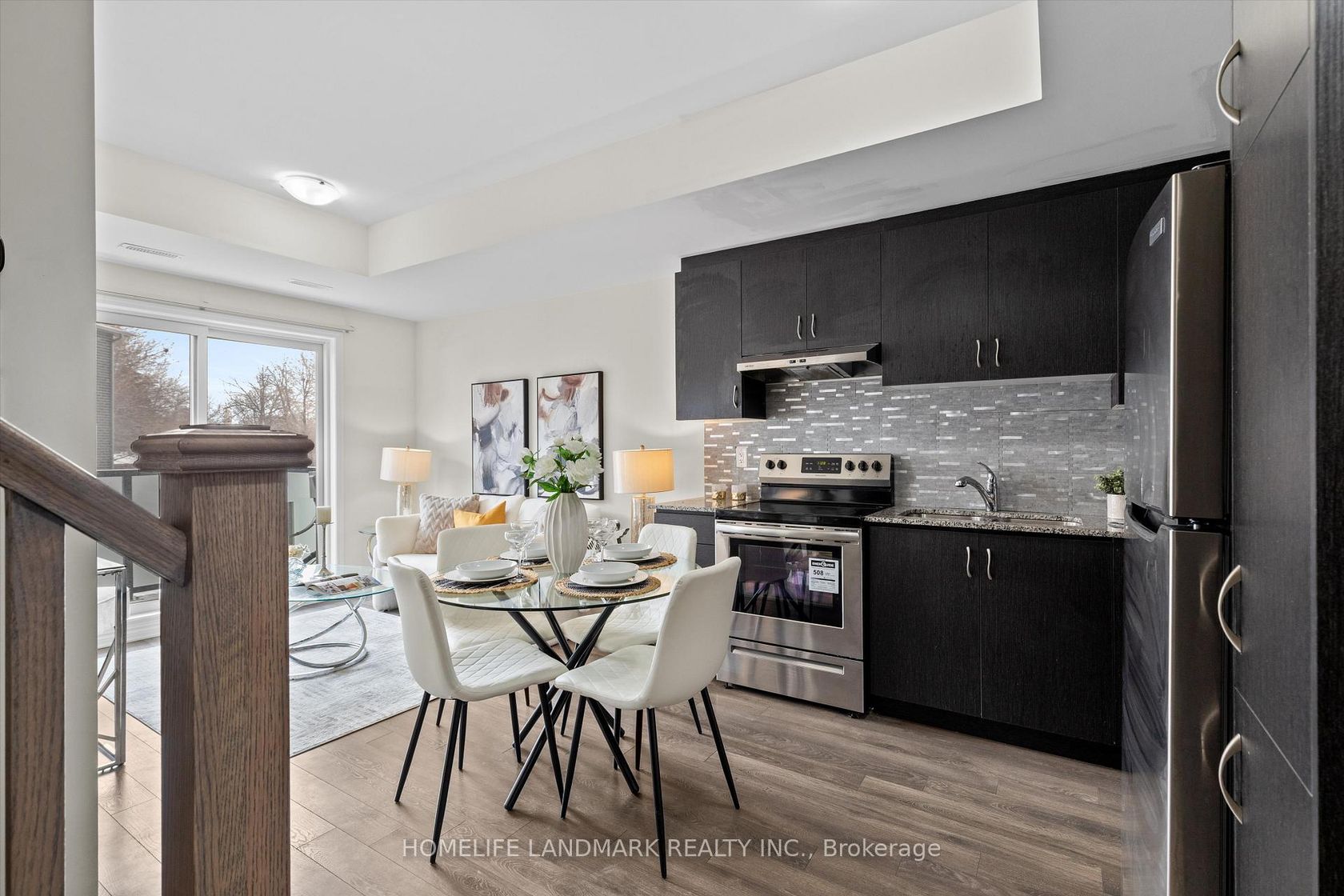 Welcome to East Station Townhomes - a beautifully upgraded 3-bedroom, 3-bath stacked townhome offering stylish, modern living in Toronto's vibrant east end. Built by Mattamy Homes, this thoughtfully designed residence offers just over 1,000 sq. ft. of functional living space with a bright open-concept layout ideal for families, professionals, or investors. The versatile third bedroom is currently used as a home office and can easily be converted into a sleek bedroom to suit y…our needs. The contemporary kitchen is designed to impress, featuring stone/granite countertops, upgraded cabinetry, stainless steel appliances, a stylish backsplash, and ample prep and storage space, perfect for both daily living and entertaining.The spacious living and dining area is filled with natural light and offers a walkout to a private balcony, ideal for morning coffee or evening relaxation. Upstairs, enjoy well-sized bedrooms including a comfortable primary suite with ensuite bath and generous closet space.Elegant finishes throughout include modern flooring, refined lighting, turnkey upgrades, plus the added comfort of a whole-home air exchanger for improved air circulation and year-roundcomfort. Conveniently located less than a kilometre from the Eglinton LRT and Kennedy Subway Station, and close to schools, parks, shopping, and everyday amenities, this low-maintenance urban home is a fantastic opportunity in a rapidly growing east Toronto community.