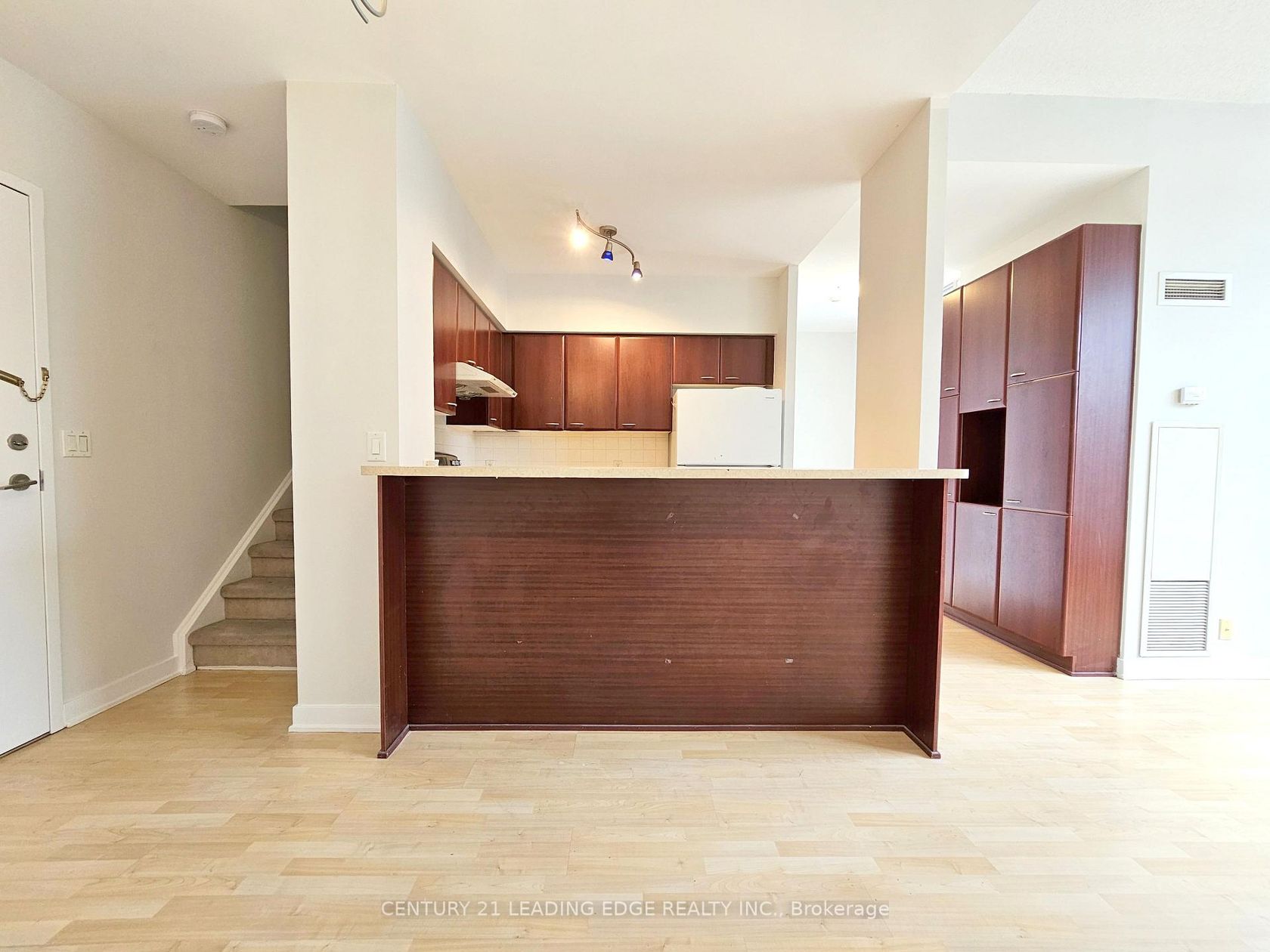 Welcome to this beautifully maintained, light-filled two-storey townhouse offering 2 bedrooms, a versatile den, 2 bathrooms, 1 parking space, and a locker. Complete with dual entrances: one through the condo lobby and another with direct street access, making this the ideal home for your everyday convenience! Situated in the heart of Scarborough, this townhouse features an open-concept living and dining area with soaring 10-foot ceilings, and expansive windows that frame sere…ne park views with ample natural light. The modern kitchen is equipped with a breakfast bar, ideal for casual meals and entertaining! Freshly painted throughout. This home is move-in ready! Step outside to your private south-facing terrace. Perfect for relaxing or dining while enjoying the outdoors. Second floor is complete w/ 9-foot ceilings offering a bright, airy ambiance. Equipped with 2nd floor laundry for your added convenience. The spacious primary bedroom offers large windows and ample closet space, while the second bedroom is sun-drenched and inviting with its own closet and generous size window. Residents enjoy access to exceptional amenities, including a 24-hour concierge, fitness centre, indoor pool, guest suites, party and billiards rooms, visitor parking, and a rooftop terrace with BBQs. Unbeatable location. Just minutes to schools, parks, shops, restaurants, grocery stores, TTC, Scarborough Town Centre, Centennial College, University of Toronto, highway 401, and lots more! This is a must-see property! Don't miss this rare opportunity!