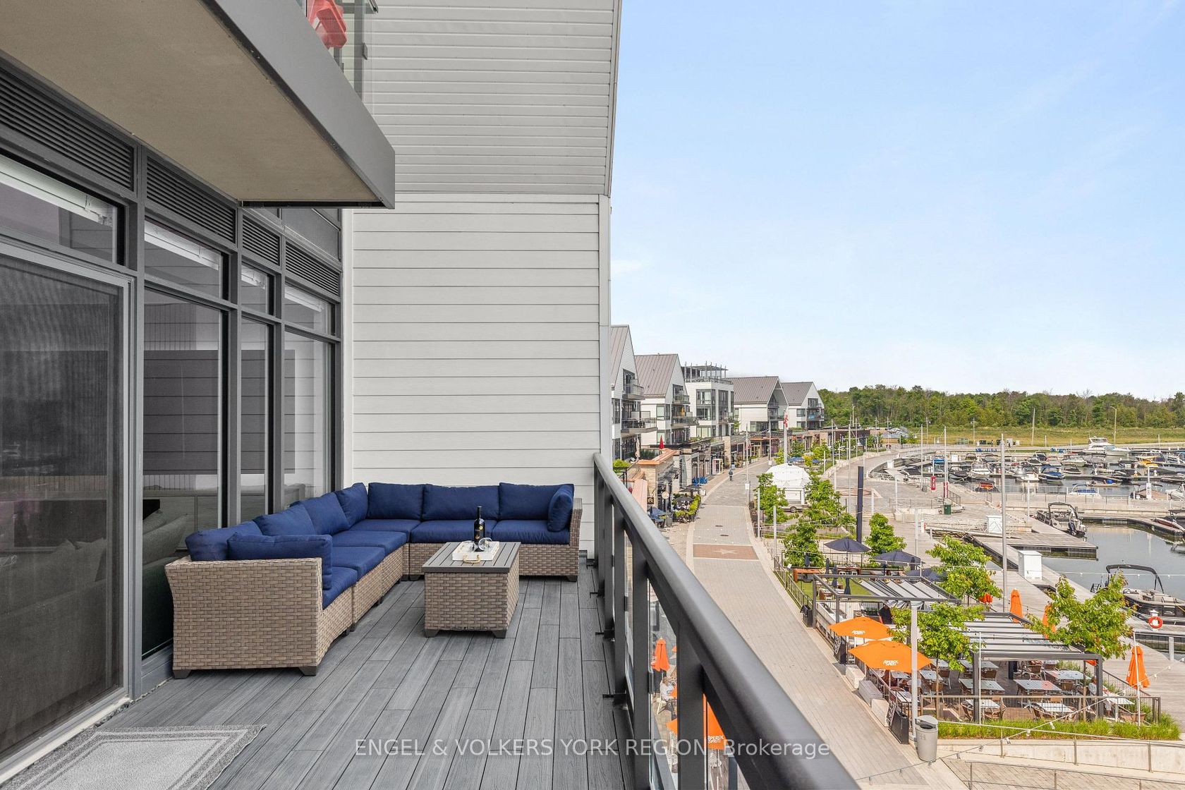 Rare Marina-Facing Residence in Friday Harbor Welcome to one of Friday Harbors most coveted waterfront residences. This exceptional and rarely available 2-storey Stacked Townhome condo is 1 of only 12 exclusive stacked townhomes in the entire resort that directly overlook the vibrant boardwalk and shimmering marina and among the select few to feature floor-to-ceiling windows, bathing the interior in natural light and showcasing breathtaking panoramic views. Elegantly upgraded with over $200,000 in premium finishes, this sophisticated home offers a thoughtfully designed open-concept layout that perfectly blends comfort and style. The main floor boasts a spacious living area, a chic dining space, and a designer kitchen all opening onto a generously sized private terrace, ideal for alfresco dining and entertaining. Upstairs, retreat to the serene primary bedroom and second bedroom, both with direct access to the upper-level balcony overlooking the marina. Two beautifully appointed bathrooms, luxurious finishes, and natural light throughout create a bright, calming, resort-like ambiance. Situated in the heart of Friday Harbors renowned waterfront community, residents enjoy unparalleled amenities including championship golf, scenic hiking trails, pristine beaches, a world-class marina, and a year-round calendar of curated events and activities. All this just a short drive from the city yet it feels a world away. An extraordinary opportunity to own a truly special residence in one of Ontario's premier lifestyle communities.