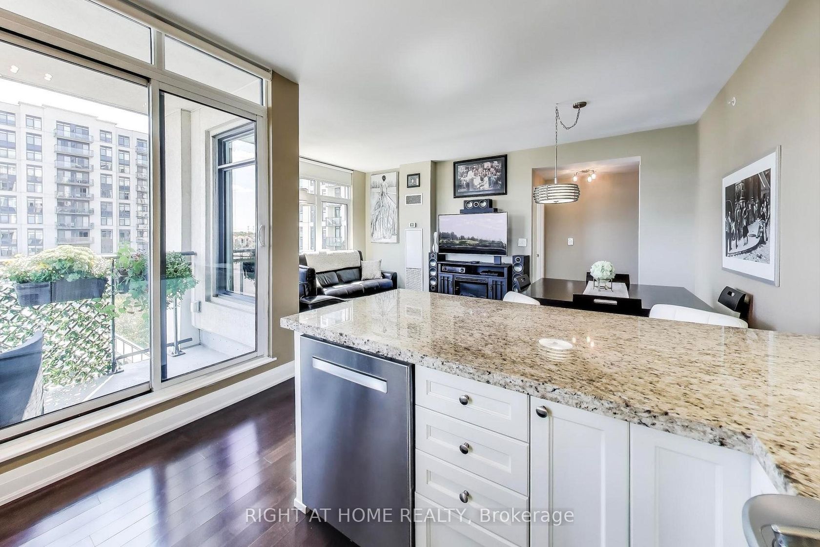 Many Builder Upgrade$ + 2 parking (rent a spot or sell it). This upgraded 2-Bed Corner suite has a Stunning Kitchen! The unit includes 1 locker, a linen/storage closet, in-suite laundry, and many upgrades. The lighting and the light switches have been upgraded to Legrand plus, high-end stainless steel appliances including a fridge with water dispenser, counter-depth stove, a spotless oven, Bosch dishwasher, and microwave. The modern kitchen is enhanced with granite countertops, a breakfast island, undermount sink with upgraded faucet, extended cabinetry with a built-in wine rack, and valence lighting. Additional features include a TV bracket, custom zebra blinds in every room... all included