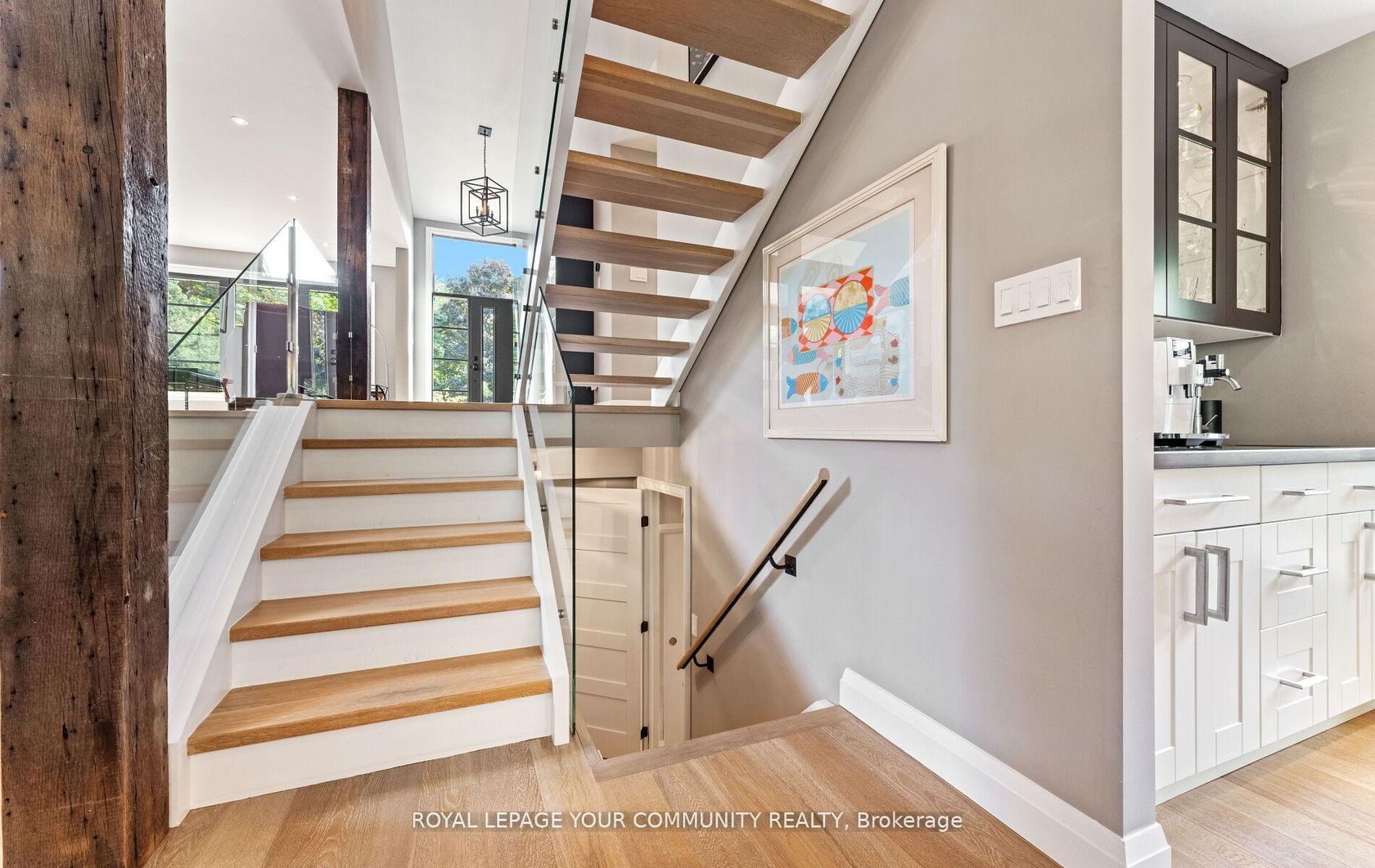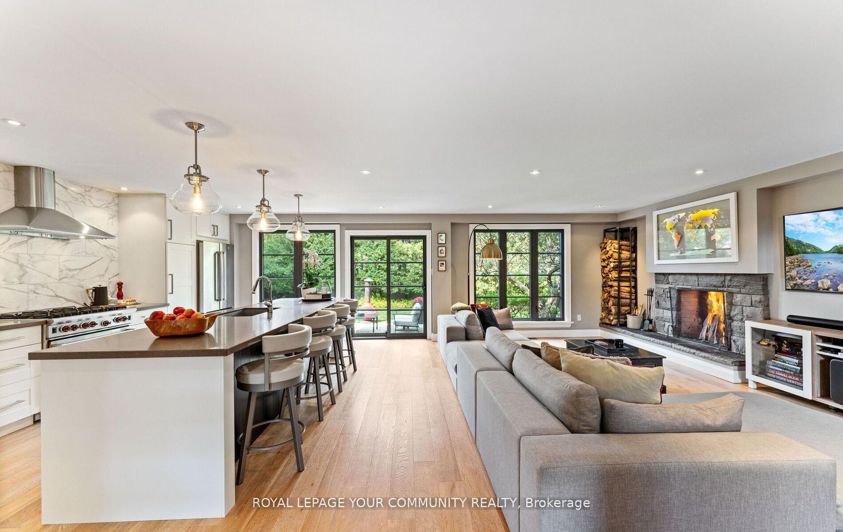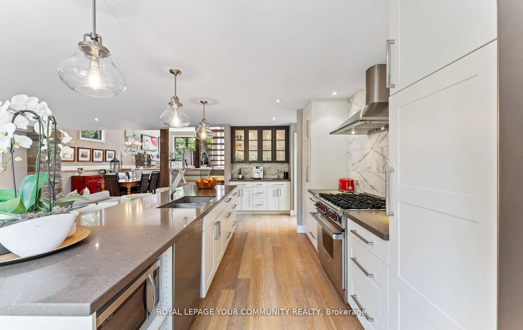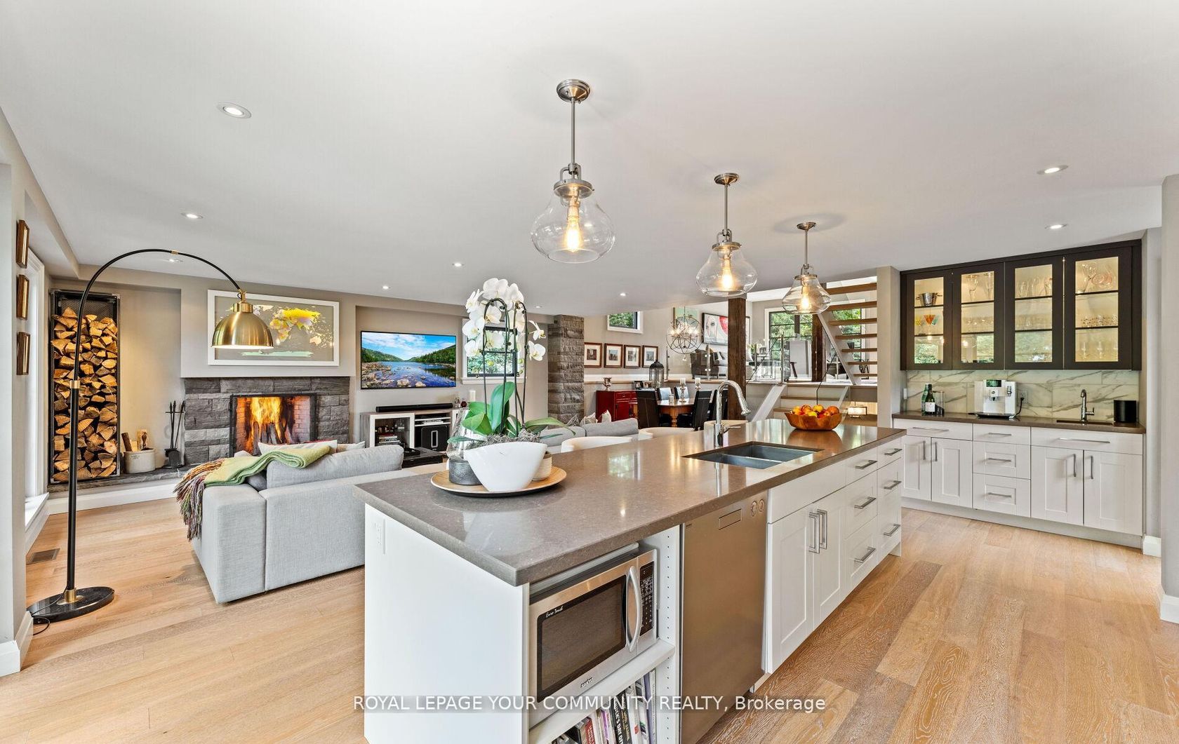 This Modern Backsplit is Tucked away on a quiet street. Thoughtfully reimagined, redesigned and rebuilt from top to bottom with the finest quality materials, the home is unassuming and blends seamlessly with its surroundings while offering a fresh modern take on living & entertaining. Step Inside to a soaring vaulted foyer and striking floating staircase that set the tone. The open-concept design flows effortlessly from the front living room with its dramatic overlook, to the… heart of the home. The chefs kitchen has an 11-foot island, marble backsplash, and top-of-the-line appliances and separate side yard access to BBQ all make cooking and entertaining a joy. The adjoining dining space easily hosts large gatherings, while the family room with its Rumford wood-burning fireplace, oversized windows, and walkout-invites you to relax or entertain against the backdrop of a completely private backyard, lush and inviting year-round. Two bedrooms sit on the upper level, including a generous primary with a large walk-in closet and ensuite. The main floor office doubles perfectly as a third bedroom or den. The home also features a second full bathroom plus two powder rooms for convenience. The lower level continues the theme of smart design with a spacious laundry, a rec room complete with built-in Murphy bed for overnight guests, and plenty of accessible storage including a large crawl space for long-term essentials. Direct access from the two-car garage adds to everyday ease. From casual living to sophisticated entertaining, this home was designed to do it all-while keeping comfort, privacy, and style front and center. Come have a look for yourself! The sellers would consider a lease back for 3-6 months at $6500/mth.
