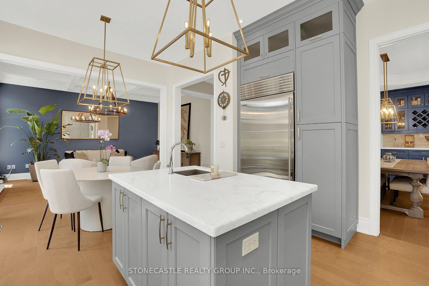 Welcome to this exquisite 4-bedroom, 5-bathroom family home, with 4000 sq feet of total living space and a heated driveway system. This home perfectly combines luxury, space, and modern convenience. Located in a highly sought-after Upper West Side neighborhood, this meticulously upgraded property offers expansive living areas, elegant finishes, and thoughtful design touches throughout. With 10-foot ceilings throughout, the chef-inspired kitchen features honed marble countert…ops, high-end Wolf and Subzero appliances, custom cabinetry, and a large center island perfect for meal prep and hosting guests. Adjacent to the kitchen, the dining room features a custom wet bar with built-in mini fridge and matching marble countertops, making it the ideal space for entertaining in style. Coffered ceilings in both the family room and dining room with built in Sonos speaker system for entertaining. The private home office features 14-foot ceilings with custom drapery and wall paneling. The four generously sized bedrooms each come with their own en-suite bathroom and custom closets. The luxurious master suite is a private retreat, complete with a spa-like bathroom featuring dual vanities, a soaking tub, a walk-in shower, and a spacious custom walk-in closet. The fully finished basement, with 9-foot ceilings, provides additional living space, including a custom gym room with its own steam shower, a full custom kitchen with stainless steel fridge, dishwasher and range, a large rec area with custom book shelving, and a walkout to the beautifully landscaped backyard. This lower level is perfect for family fun, game days, or hosting guests in style. Outside, the home truly shines with professional landscaping at both the front and back of the property.