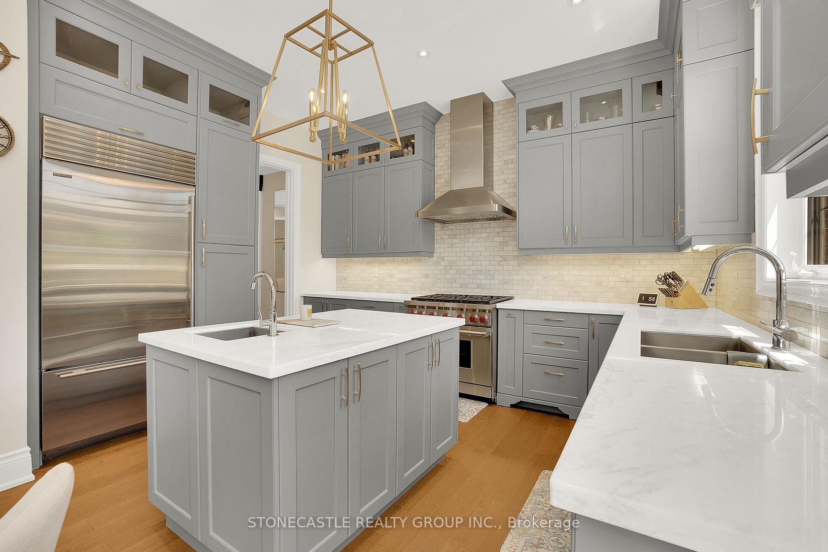 Welcome to this exquisite 4-bedroom, 5-bathroom family home, with 4000 sq feet of total living space and a heated driveway system. This home perfectly combines luxury, space, and modern convenience. Located in a highly sought-after Upper West Side neighborhood, this meticulously upgraded property offers expansive living areas, elegant finishes, and thoughtful design touches throughout. With 10-foot ceilings throughout, the chef-inspired kitchen features honed marble countertops, high-end Wolf and Subzero appliances, custom cabinetry, and a large center island perfect for meal prep and hosting guests. Adjacent to the kitchen, the dining room features a custom wet bar with built-in mini fridge and matching marble countertops, making it the ideal space for entertaining in style. Coffered ceilings in both the family room and dining room with built in Sonos speaker system for entertaining. The private home office features 14-foot ceilings with custom drapery and wall paneling. The four generously sized bedrooms each come with their own en-suite bathroom and custom closets. The luxurious master suite is a private retreat, complete with a spa-like bathroom featuring dual vanities, a soaking tub, a walk-in shower, and a spacious custom walk-in closet. The fully finished basement, with 9-foot ceilings, provides additional living space, including a custom gym room with its own steam shower, a full custom kitchen with stainless steel fridge, dishwasher and range, a large rec area with custom book shelving, and a walkout to the beautifully landscaped backyard. This lower level is perfect for family fun, game days, or hosting guests in style. Outside, the home truly shines with professional landscaping at both the front and back of the property.
