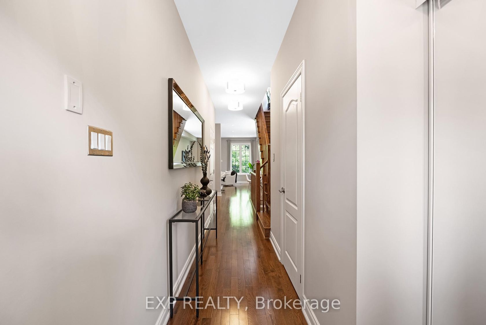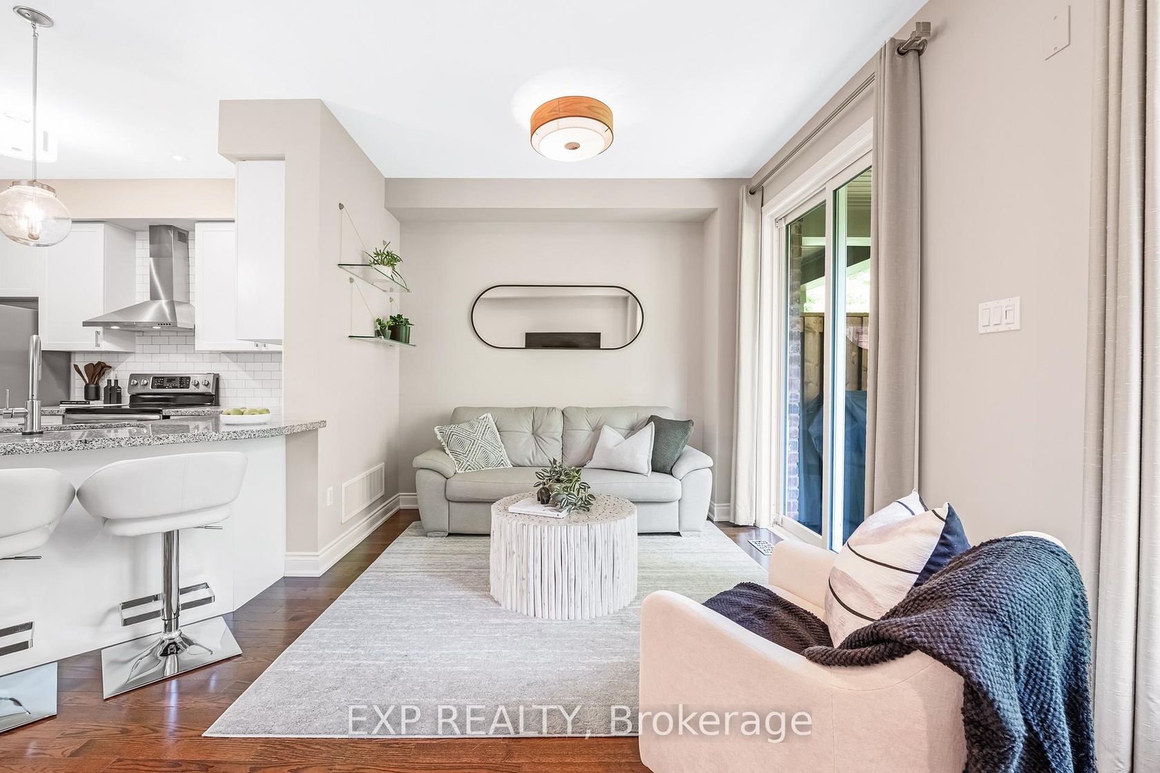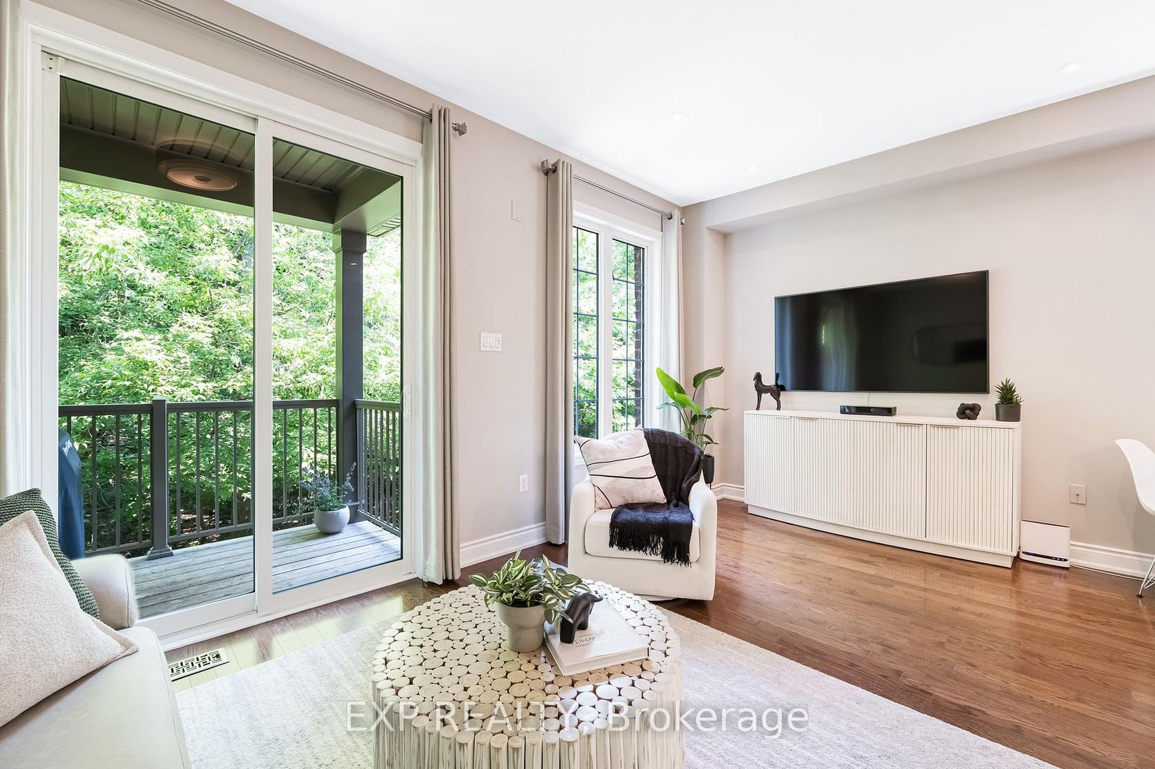 Discover a rare blend of size, privacy, and elegance in this impeccably maintained executive end-unit townhome by Daniels.Tucked within a quiet enclave of the prestigious Stonehaven neighbourhood, this residence offers a serene retreat backing onto protected forest. Nearly 2,000 sq. ft. of finished living space across three levels features smooth 9-ft ceilings and rich hardwood floors throughout, creating a warm, open feel.The gourmet kitchen shines with stainless steel appli…ances, granite counters, and a large centre island with breakfast bar-ideal for entertaining. Step from the living area onto your private covered balcony to enjoy stunning four-season forest views.Upstairs, the luxurious primary suite features a custom walk-in closet and 4-piece ensuite with marble counter and deep soaker tub. The professionally finished walk-out basement extends your living space with a family/fitness area, full bath, and renovated laundry room with built-ins. Sliding doors open to a private patio and landscaped yard, blending indoor and outdoor living.Upgrades include: custom closets, quartz vanities, new antimicrobial cork-underlay flooring (2024), freshly painted interiors (June 2025), gas BBQ hookup, upgraded lighting, decor vents, interlock brick walkway and patio, and a unique rock garden exclusive to this unit.Enjoy low-maintenance living with modest condo fees, direct garage access, and proximity to St. Andrews Valley Golf Club. This exceptional home combines modern comfort with natural tranquility-an absolute must-see.